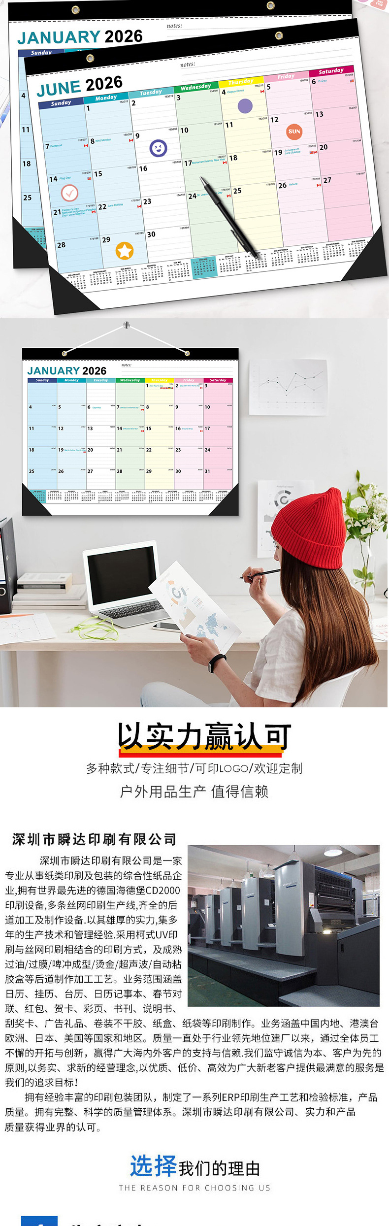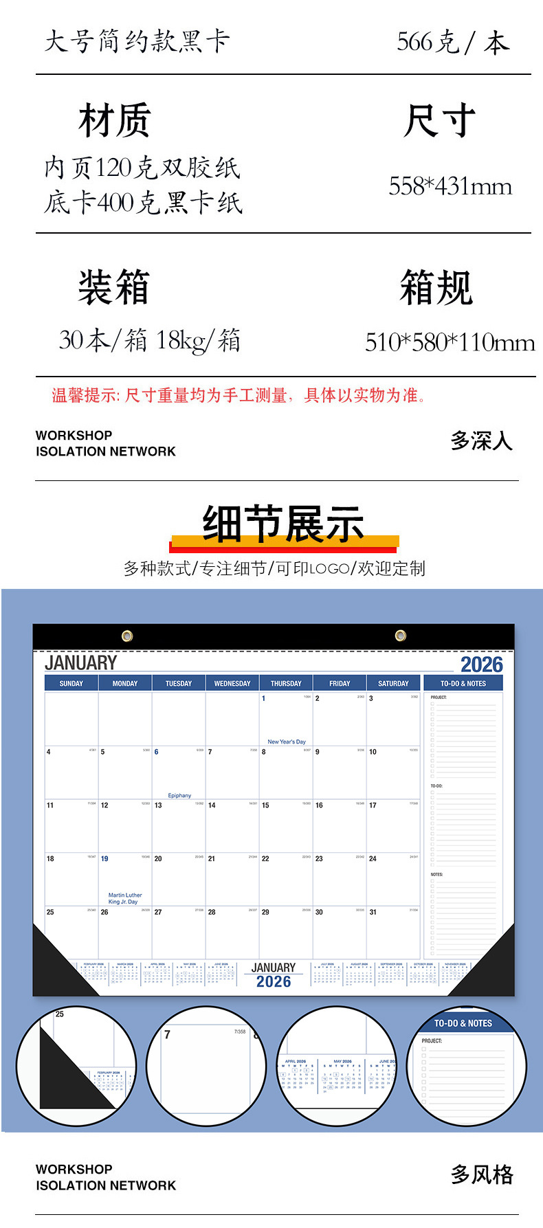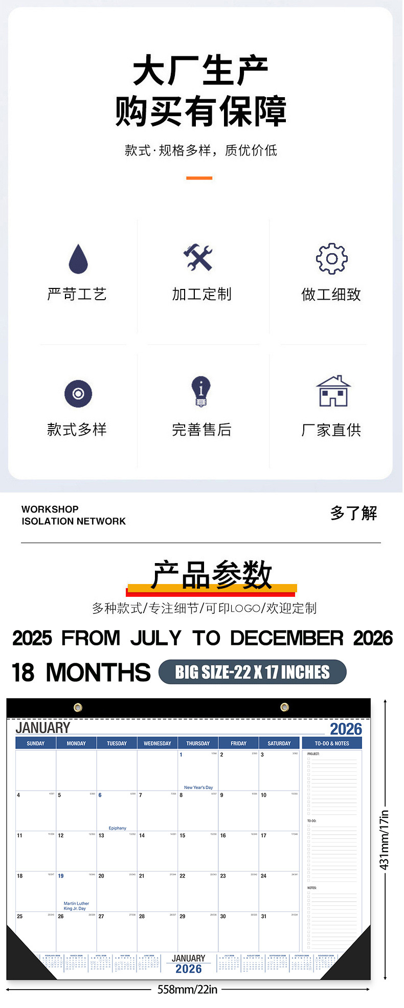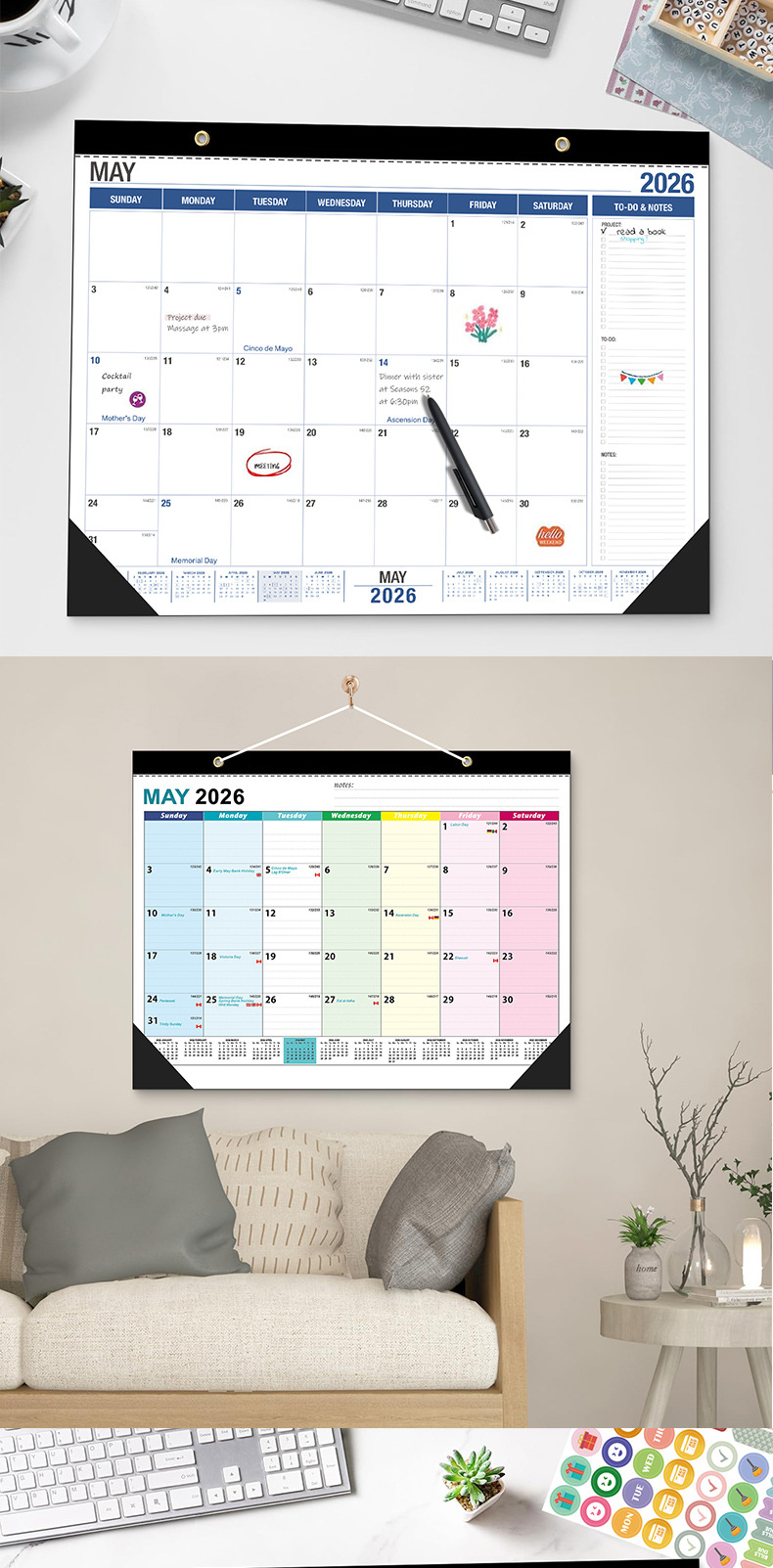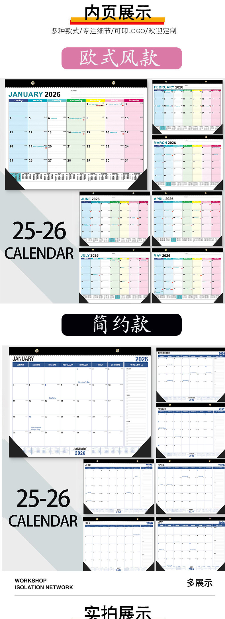 超大号英文版挂历亚马逊爆款简约高颜值26-27年日历倒计时桌面台
