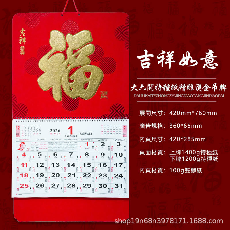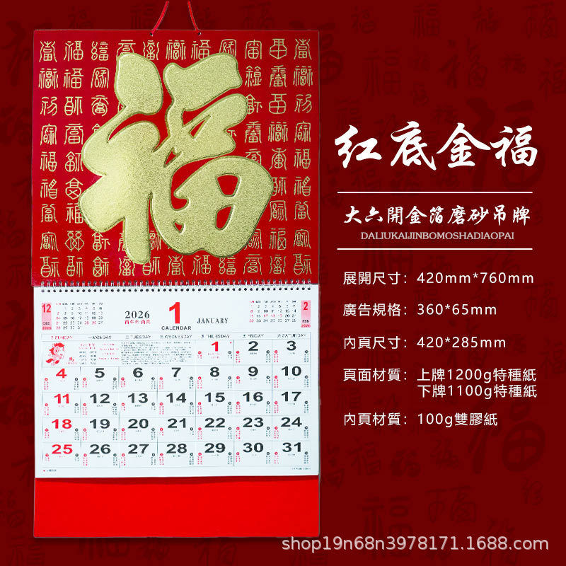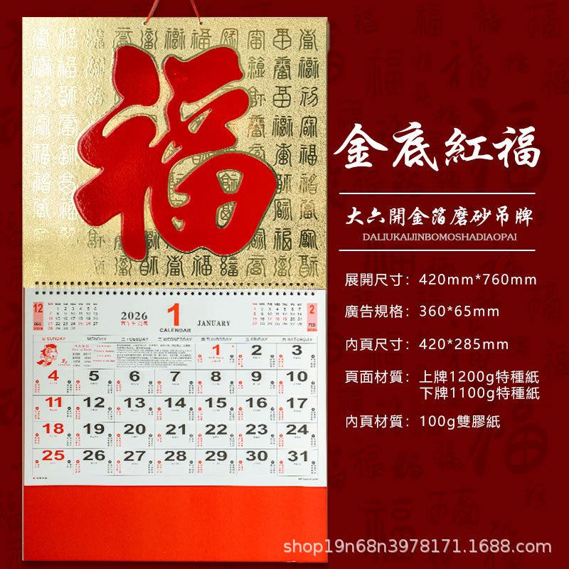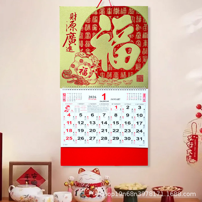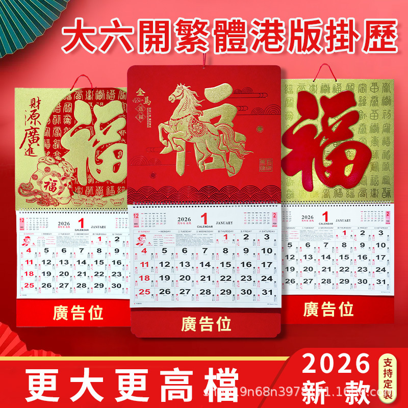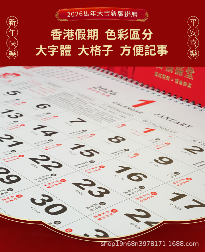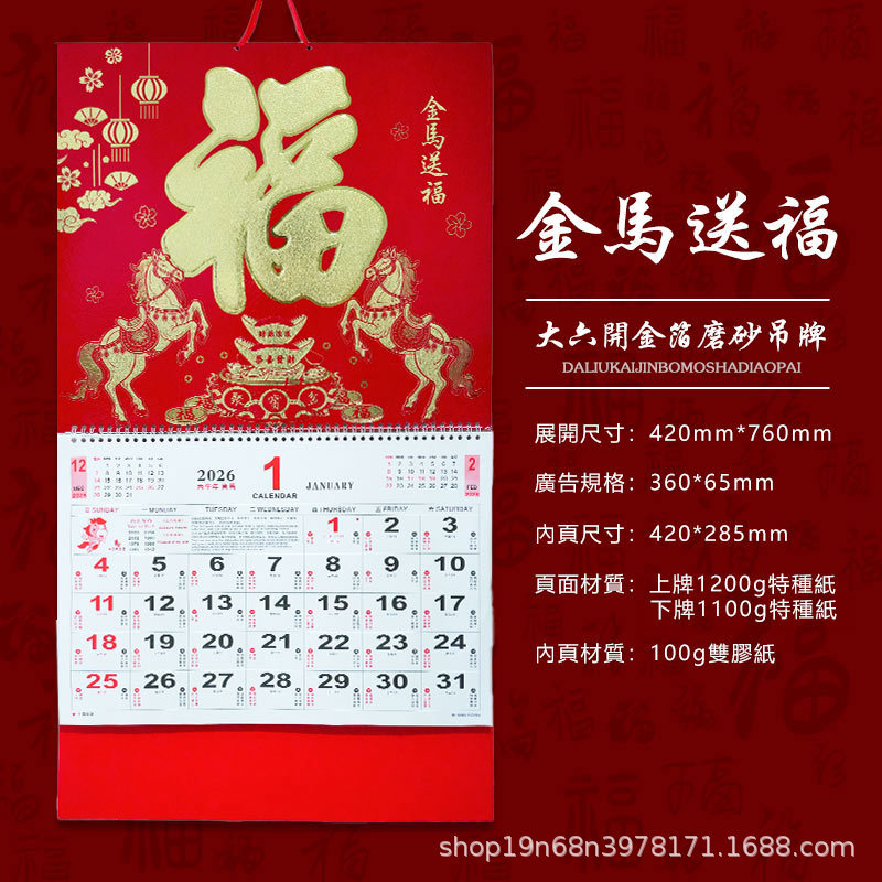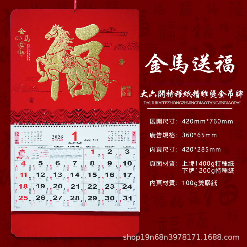 挂历2026马年新款创意英文日历国际美国香港假期挂墙挂历跨境月历