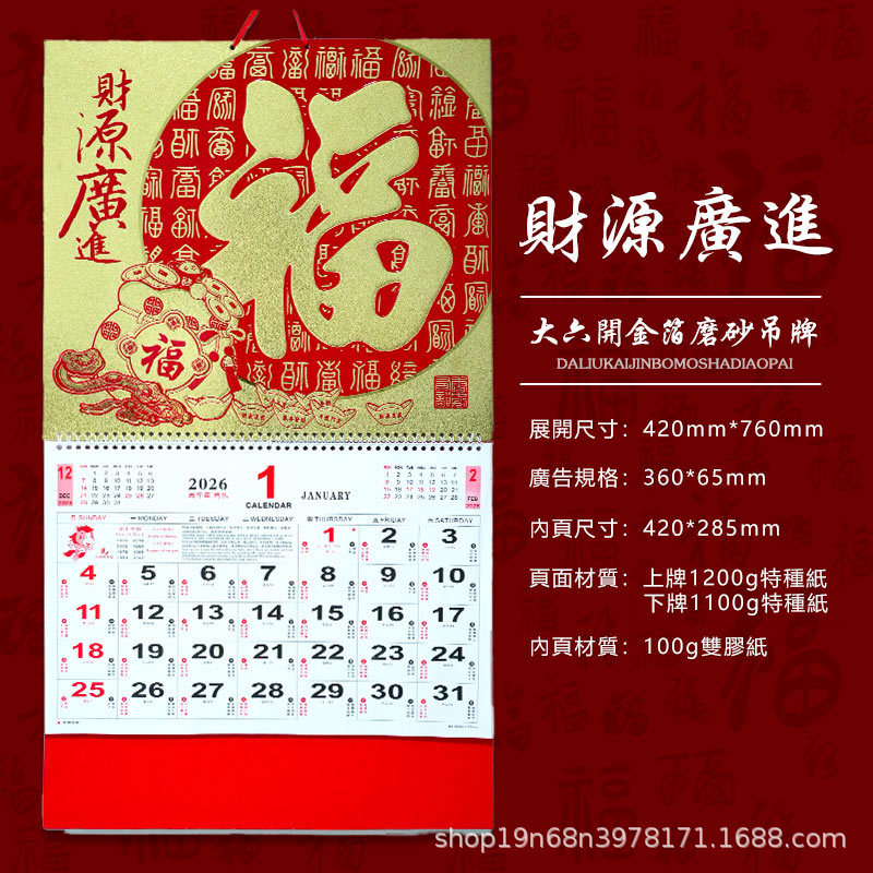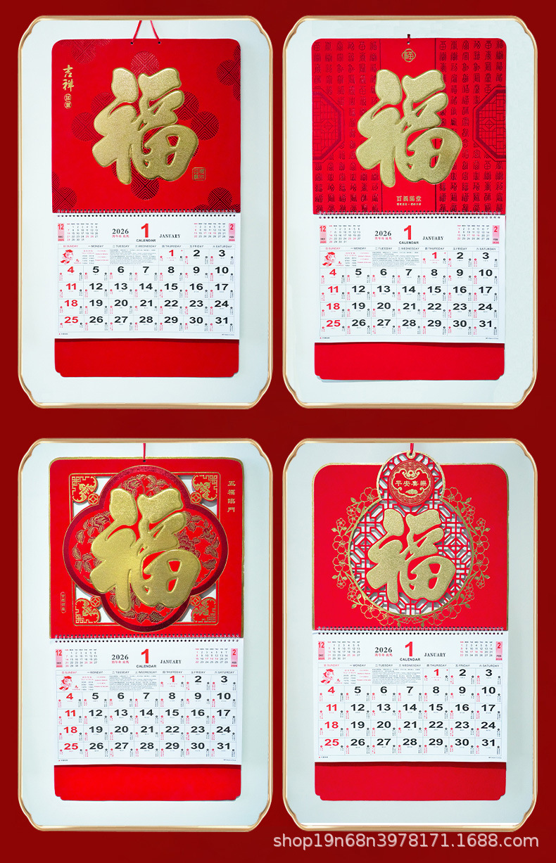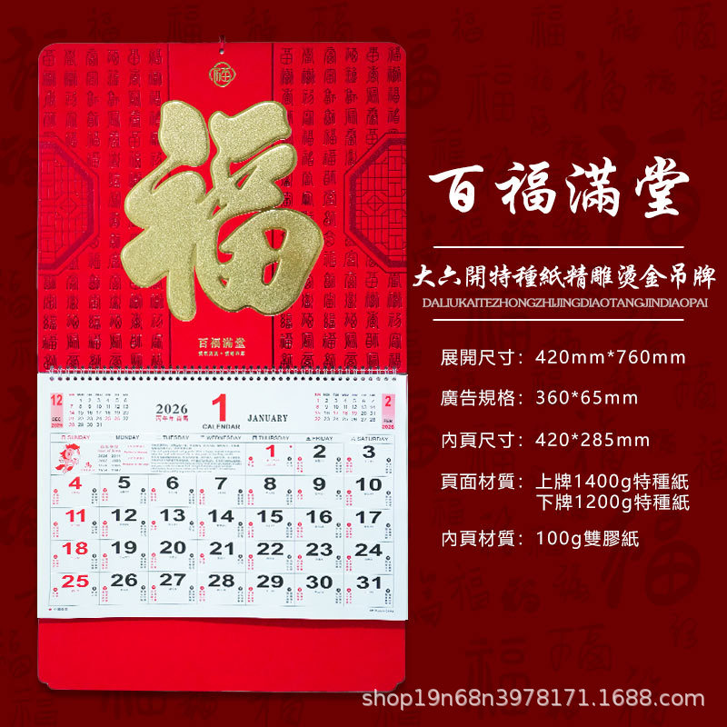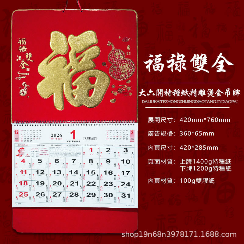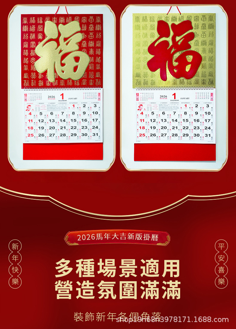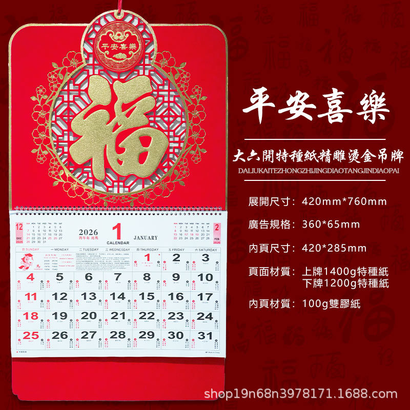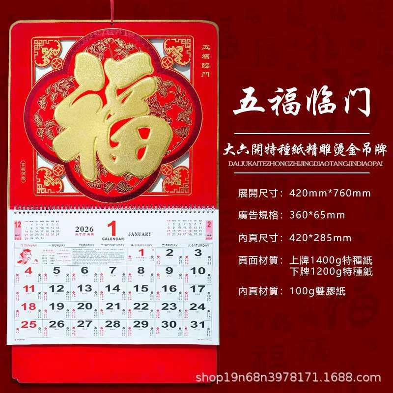 挂历2026马年新款创意英文日历国际美国香港假期挂墙挂历跨境月历