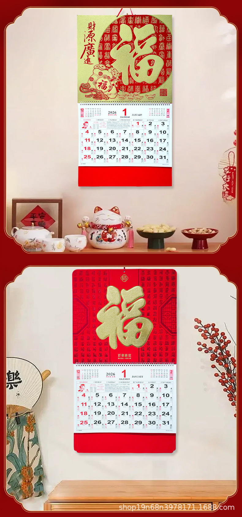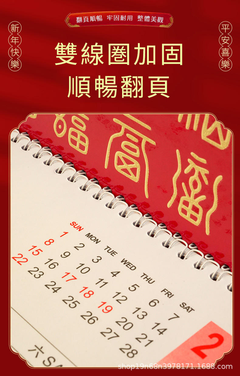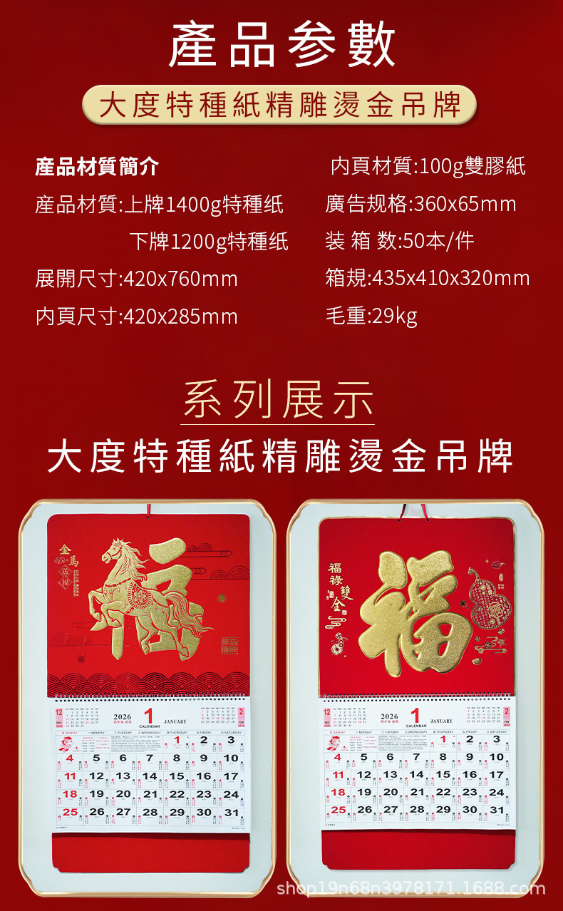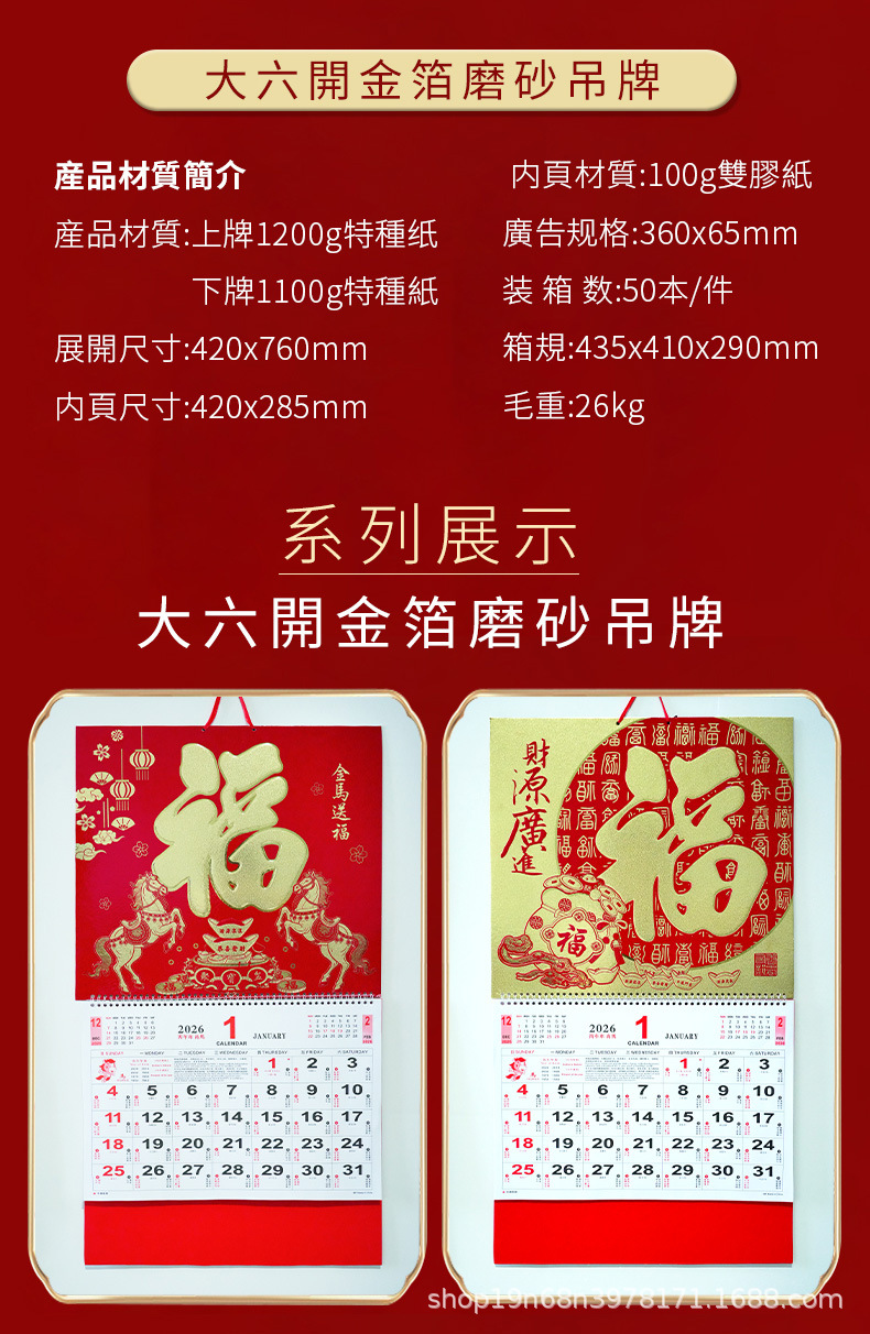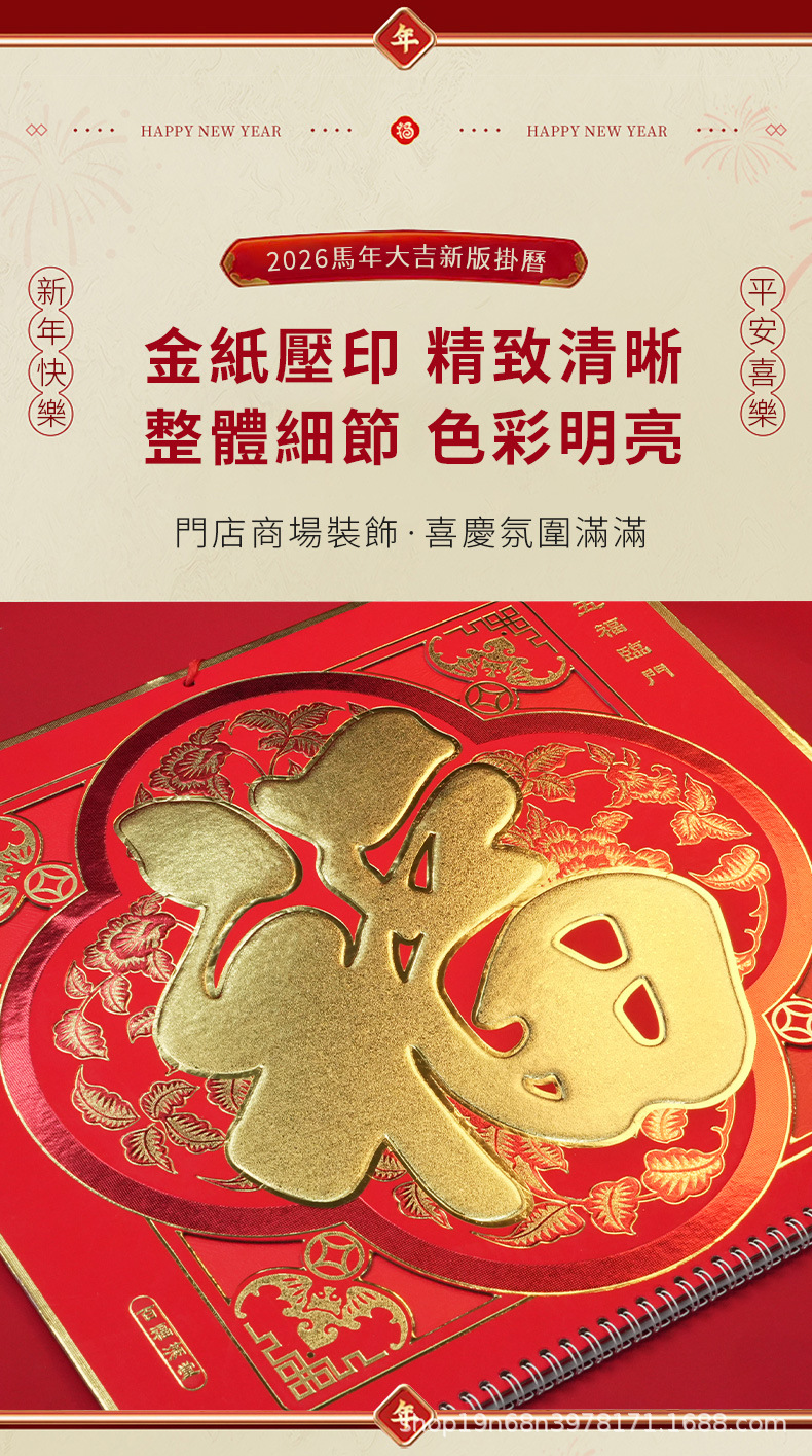 挂历2026马年新款创意英文日历国际美国香港假期挂墙挂历跨境月历