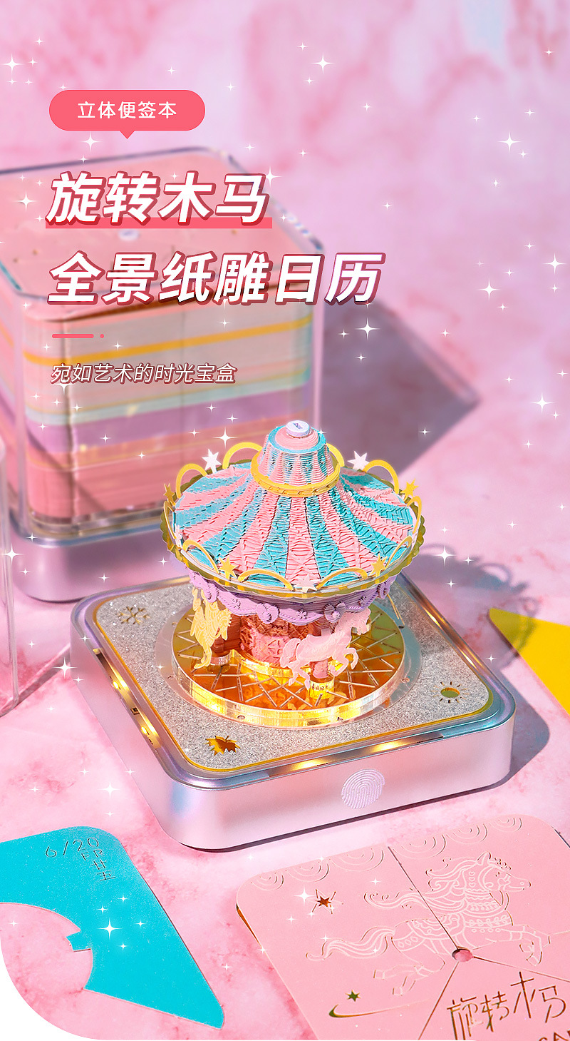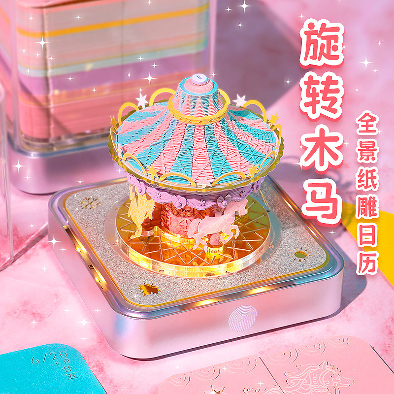 定制2025新年台历文创伴手礼旋转木马3D立体便签纸雕摆件地球日历