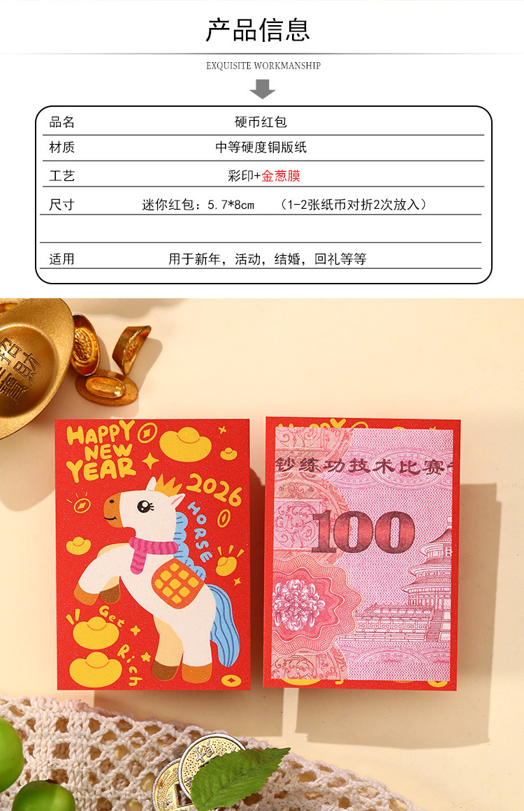 可爱卡通迷你红包小号利是封批发个性创意2026马年新款1元2元5元