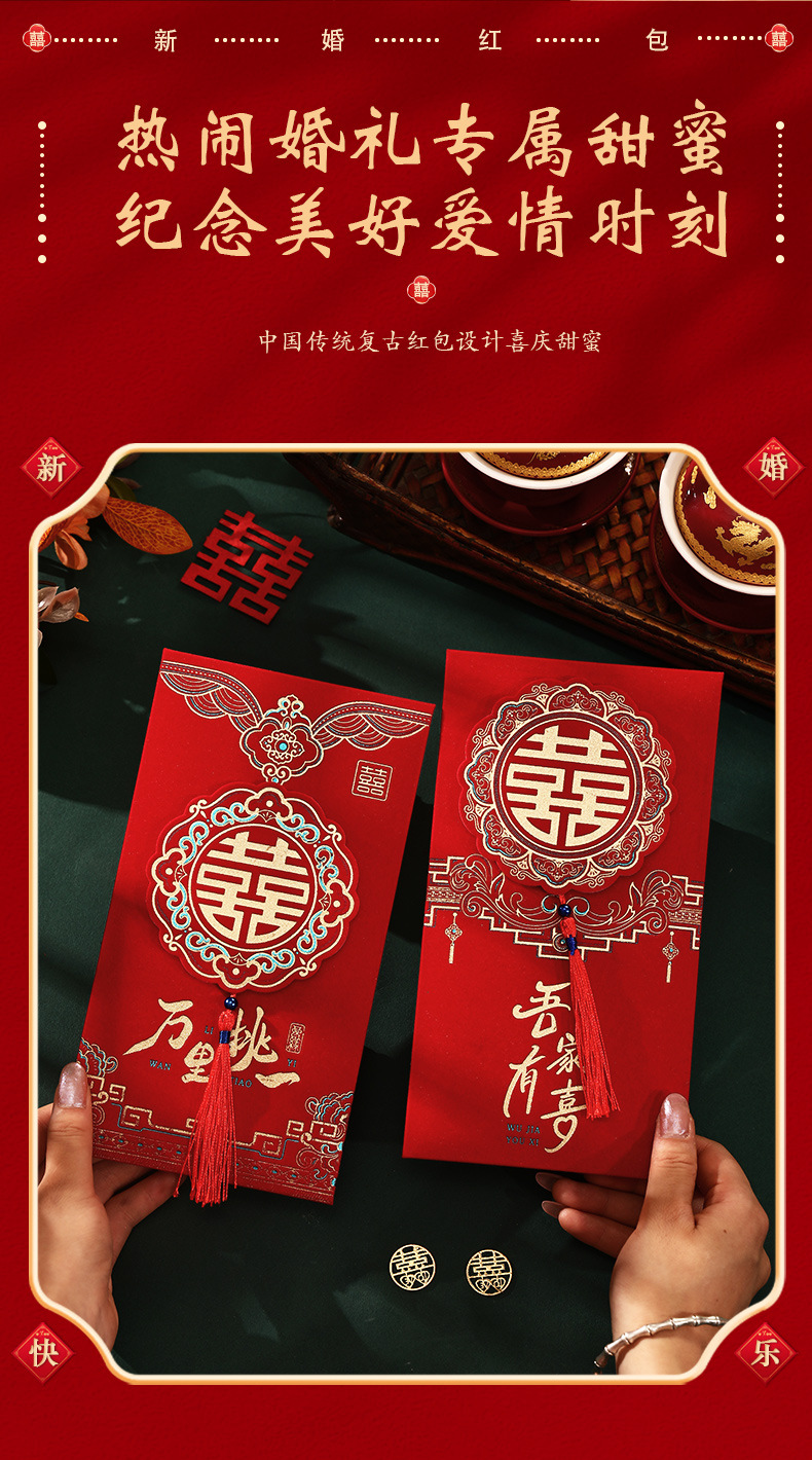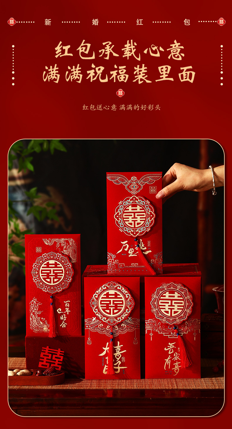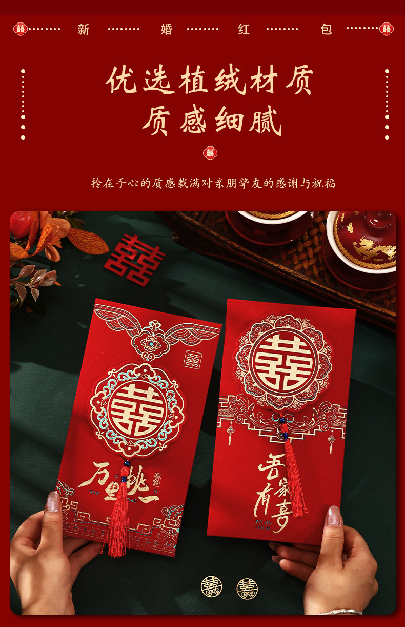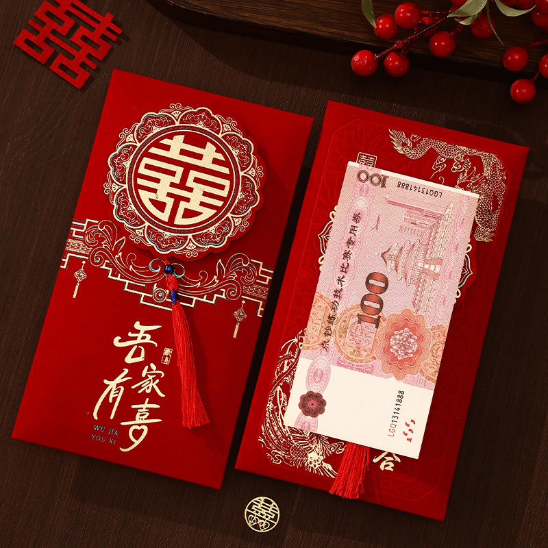 结婚2025新款绒面加厚万元立体流苏喜字婚礼改口利是封喜事红包袋
