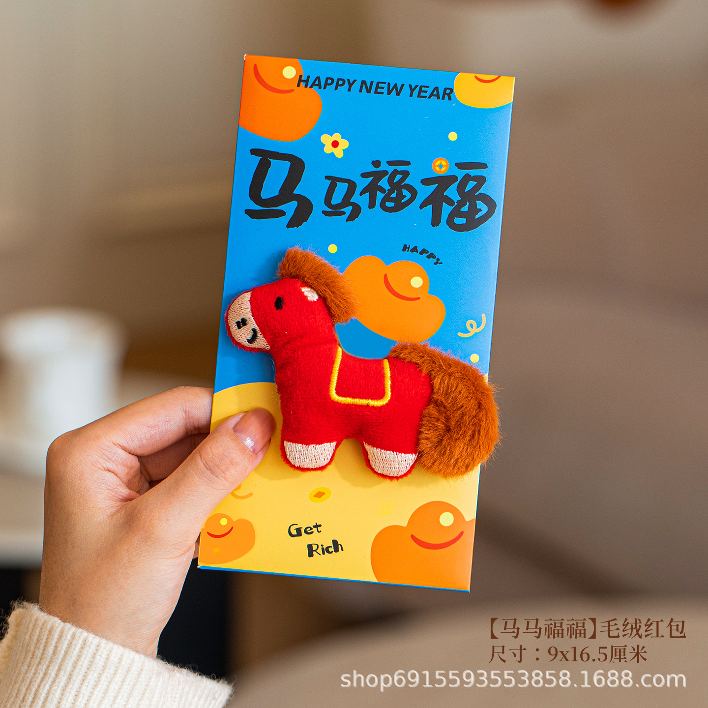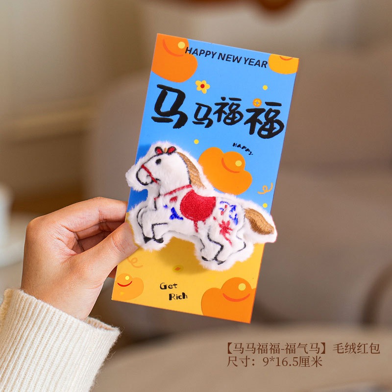 马年立体刺绣毛绒红包生日新年惊喜红包喜庆马年新年春节卡通红包