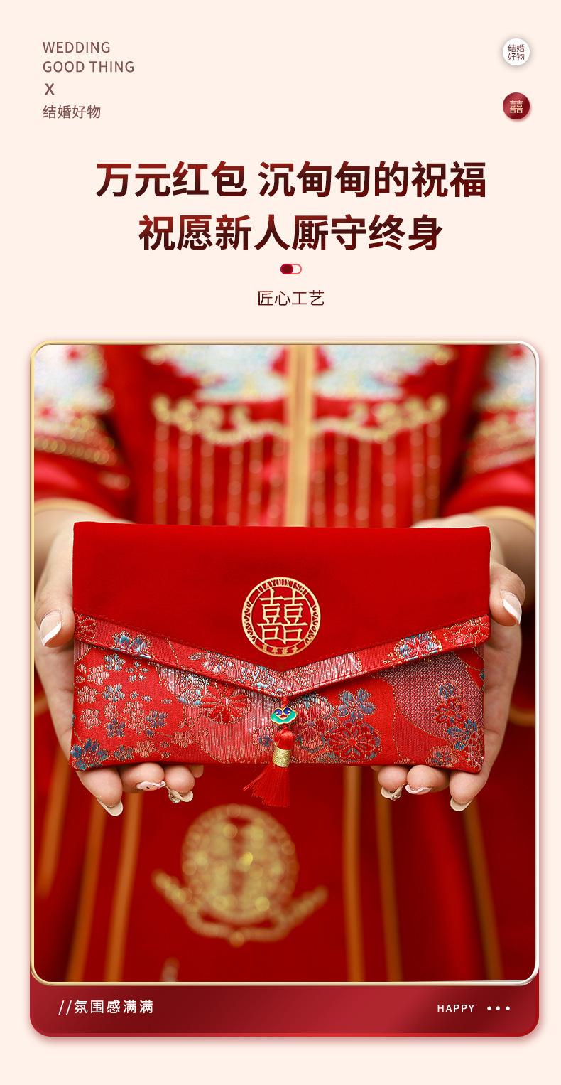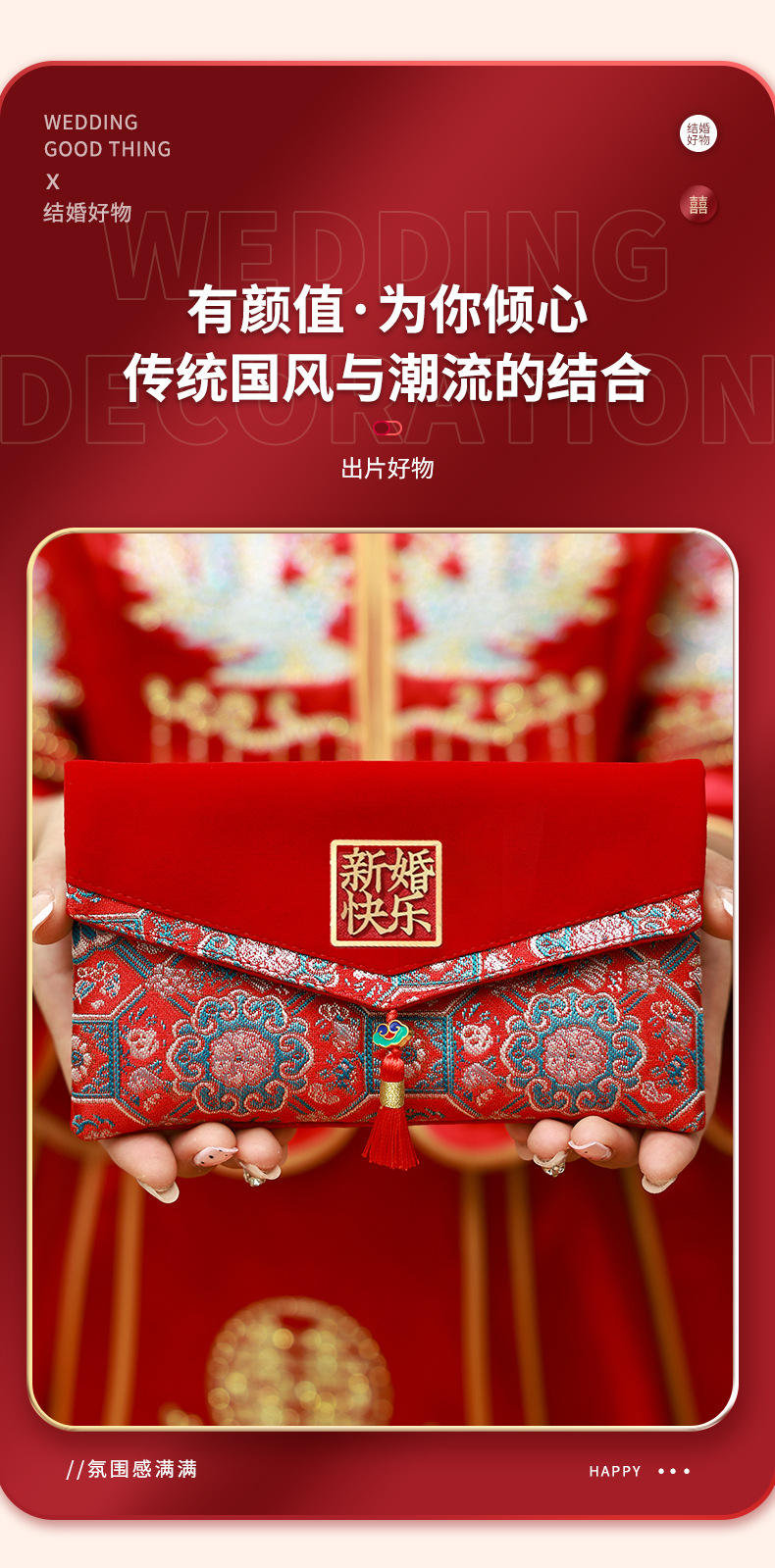 国潮红包万元红包布艺满月改口大红包结婚中式利是红封国风随份子