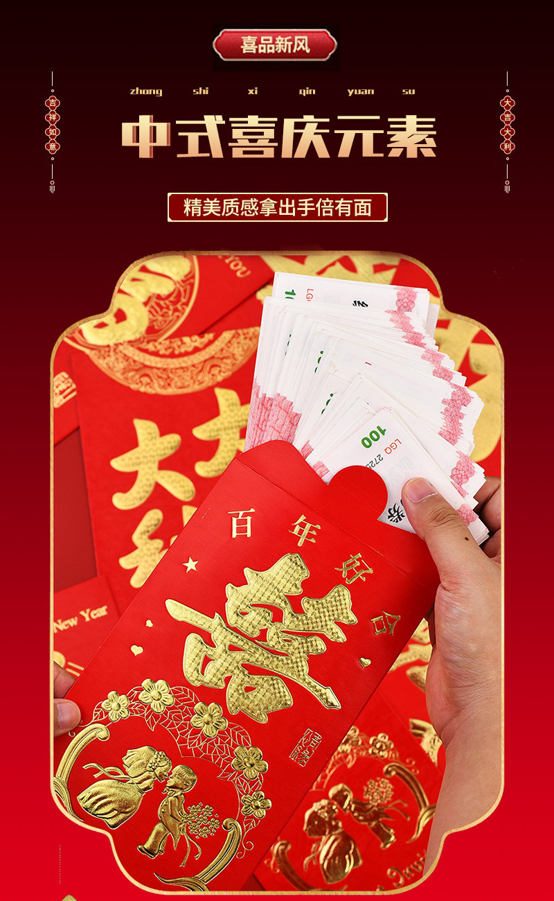 结婚新年大吉大利通用红包龙年喜字婚礼堵门改口万元利是封袋批发