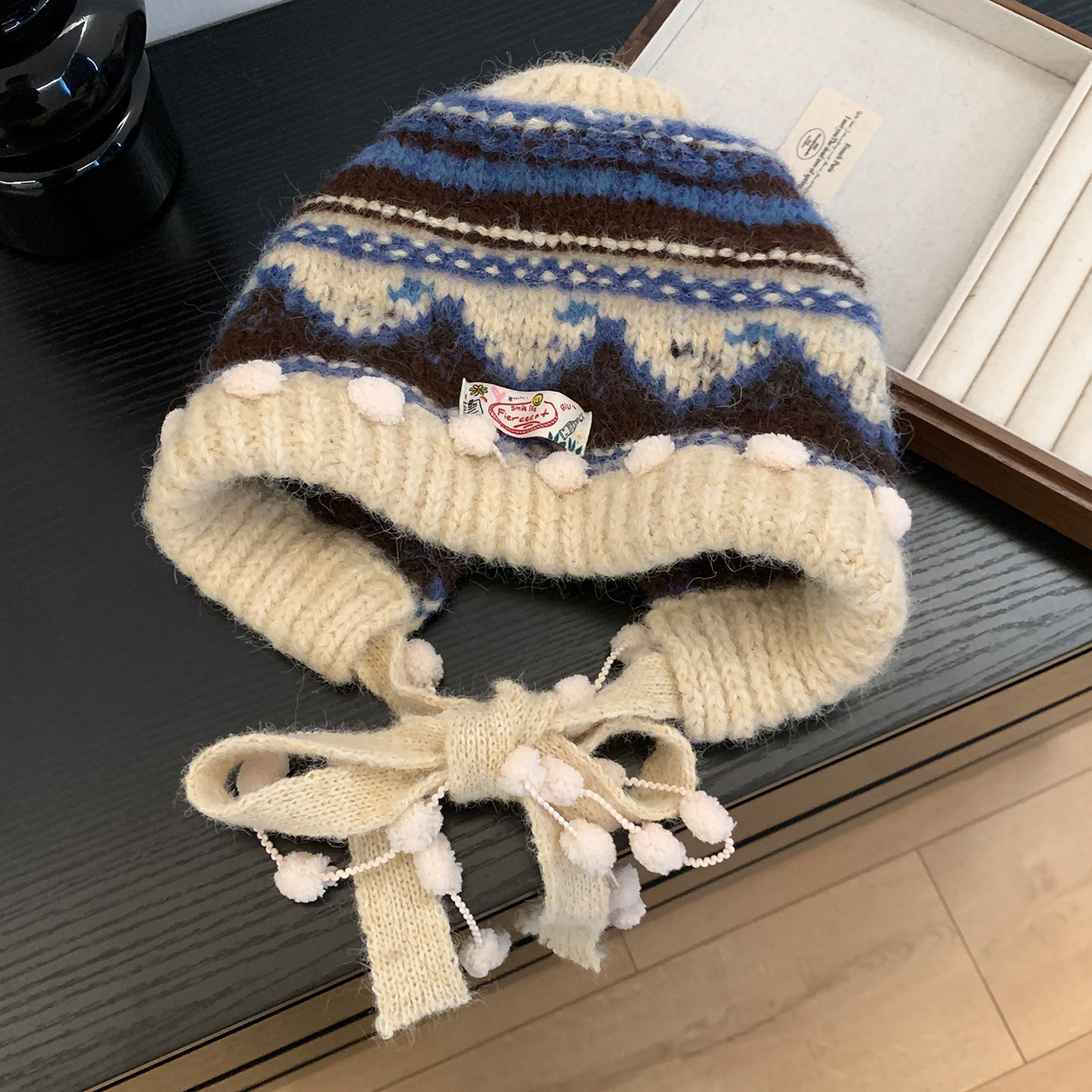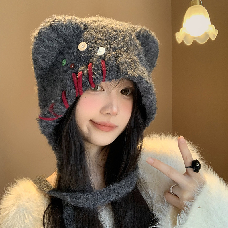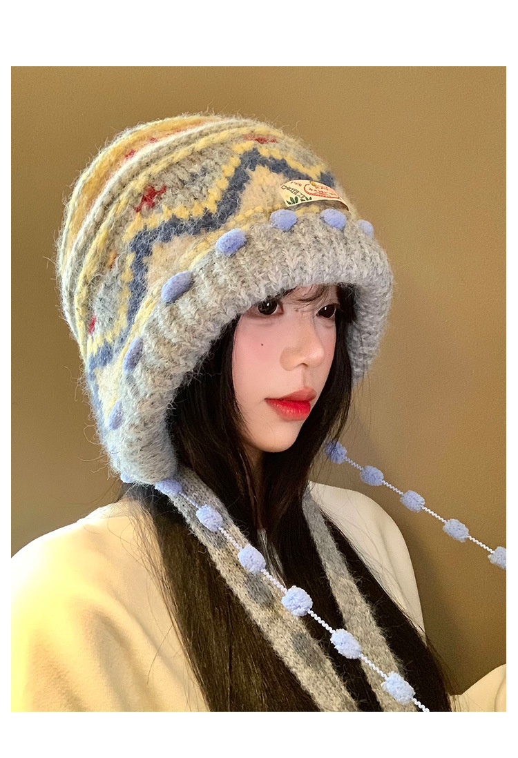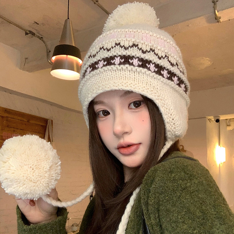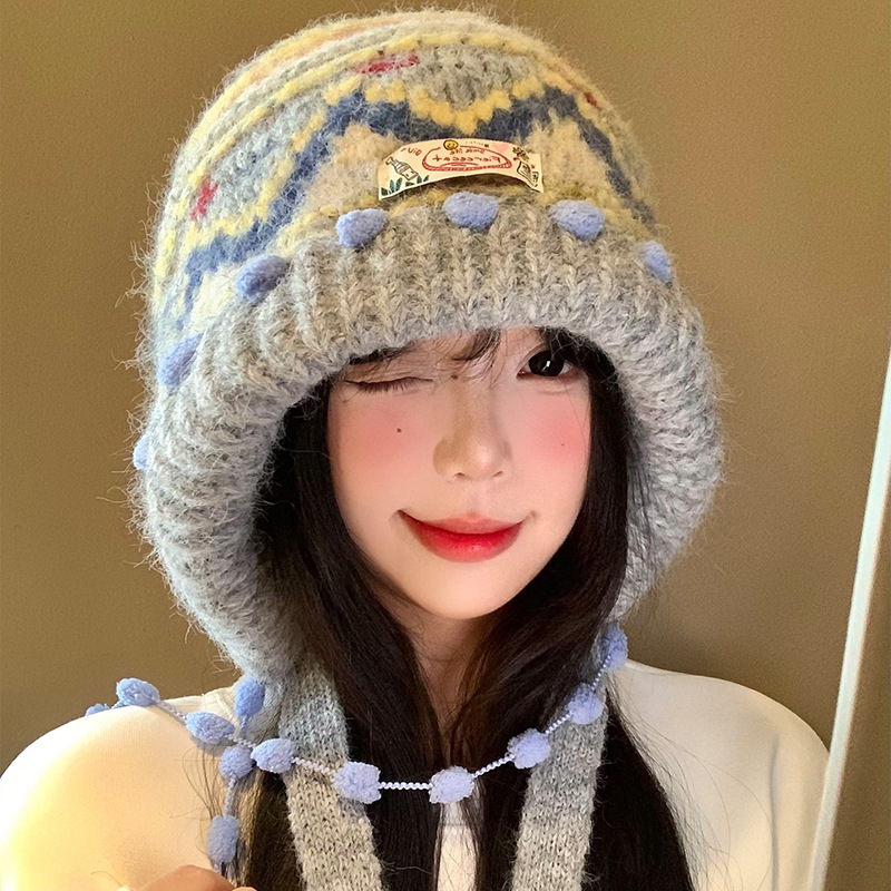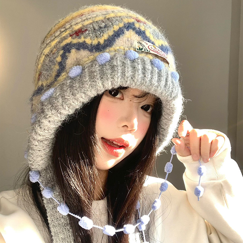 费尔岛复古针织巴拉克拉法帽女秋冬显脸小包头加厚保暖护耳毛线帽
