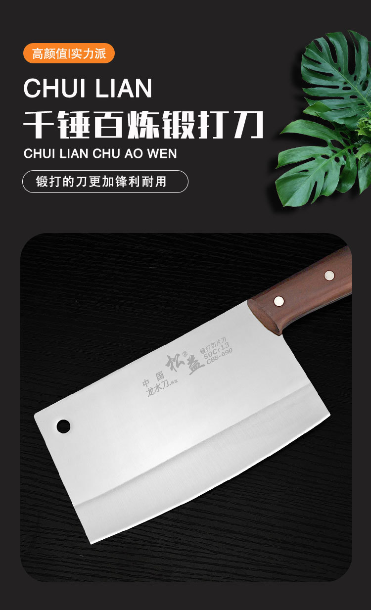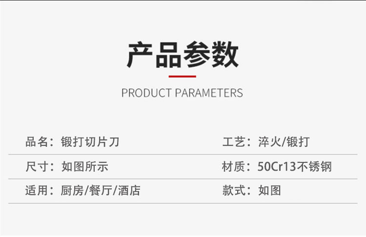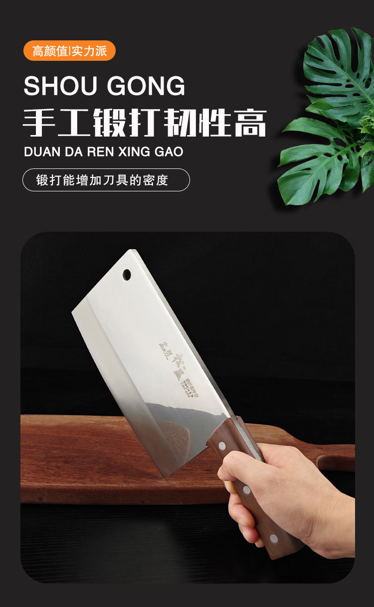 锻打切片刀家用跑江湖菜刀锋利切刀50Cr15不锈钢厨刀厨师专用菜刀