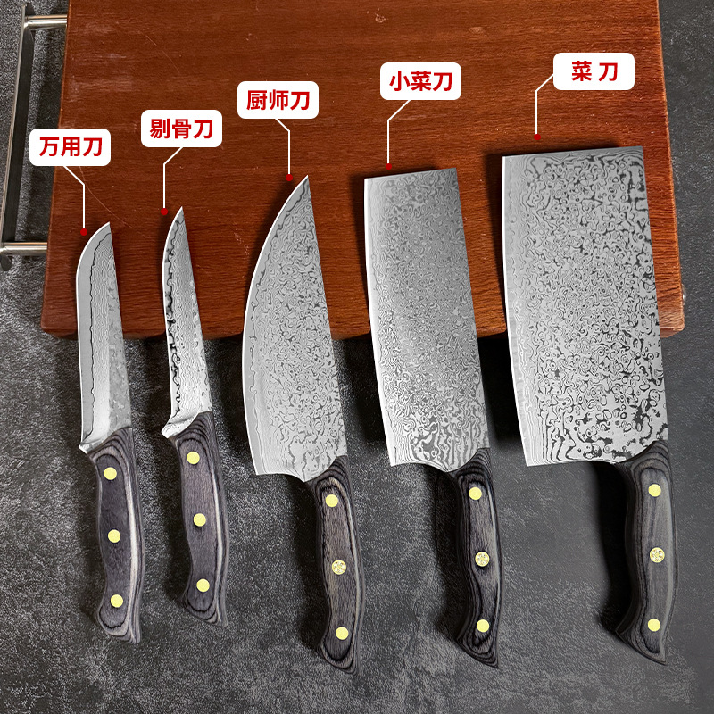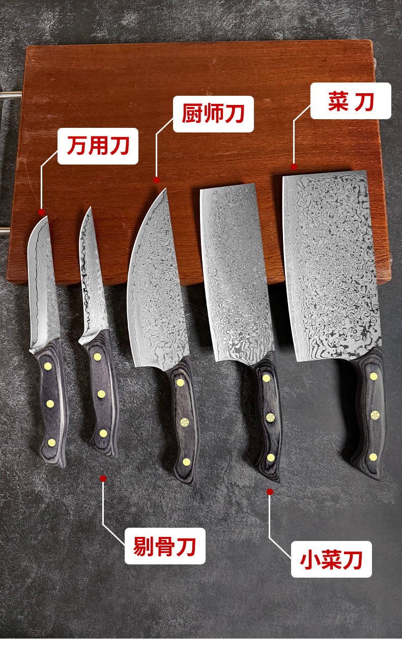 9CR18大马士革菜刀切片刀厨师刀小菜刀剔骨刀万用刀杀鱼刀