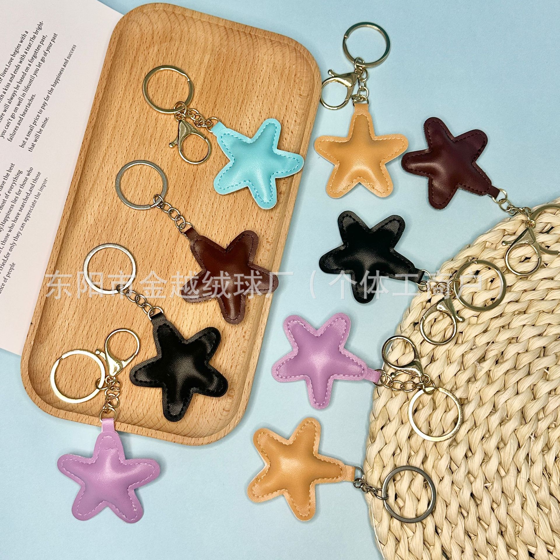 爆款创意星星五角星pu皮革充棉DIY包包挂饰挂件汽车钥匙扣批发