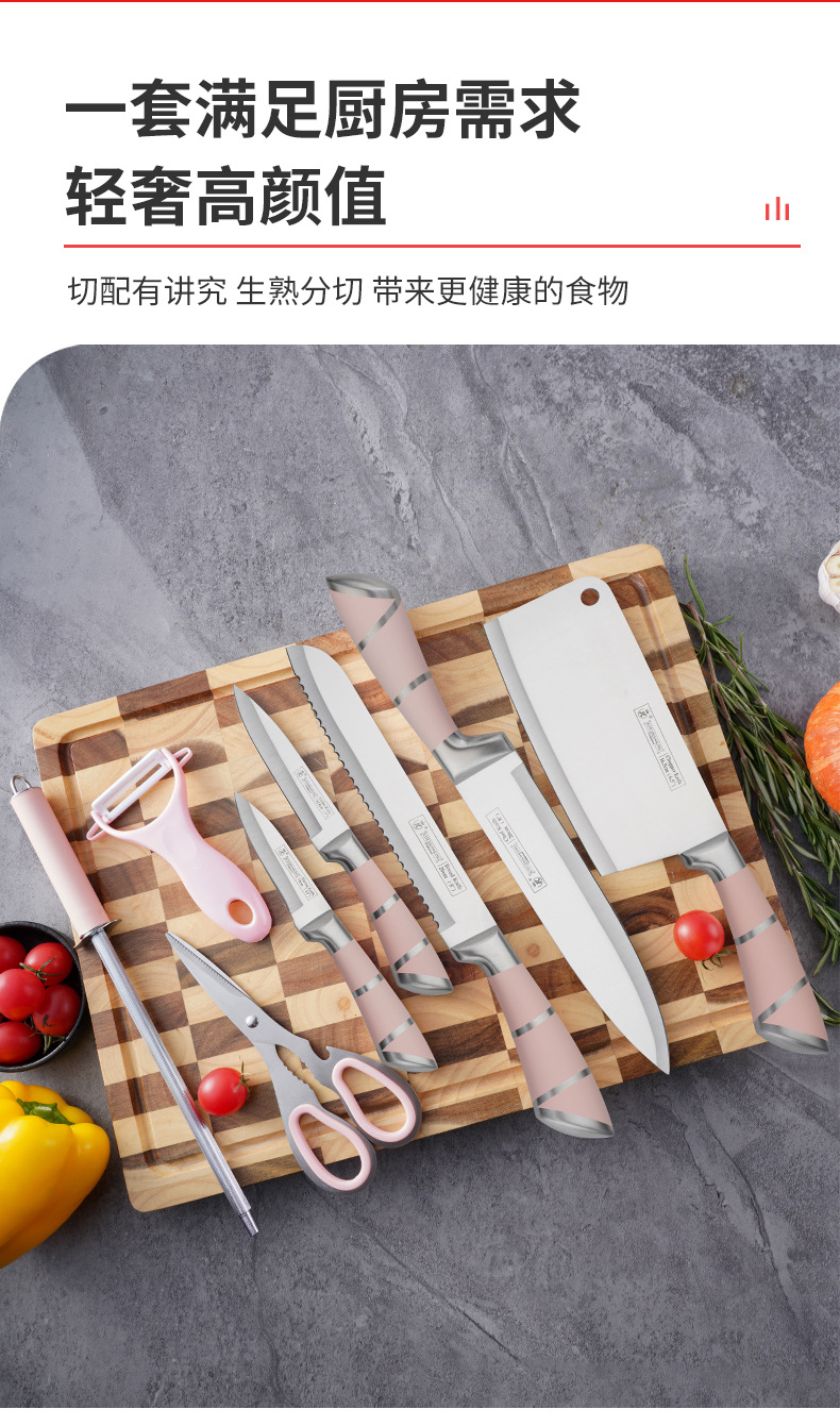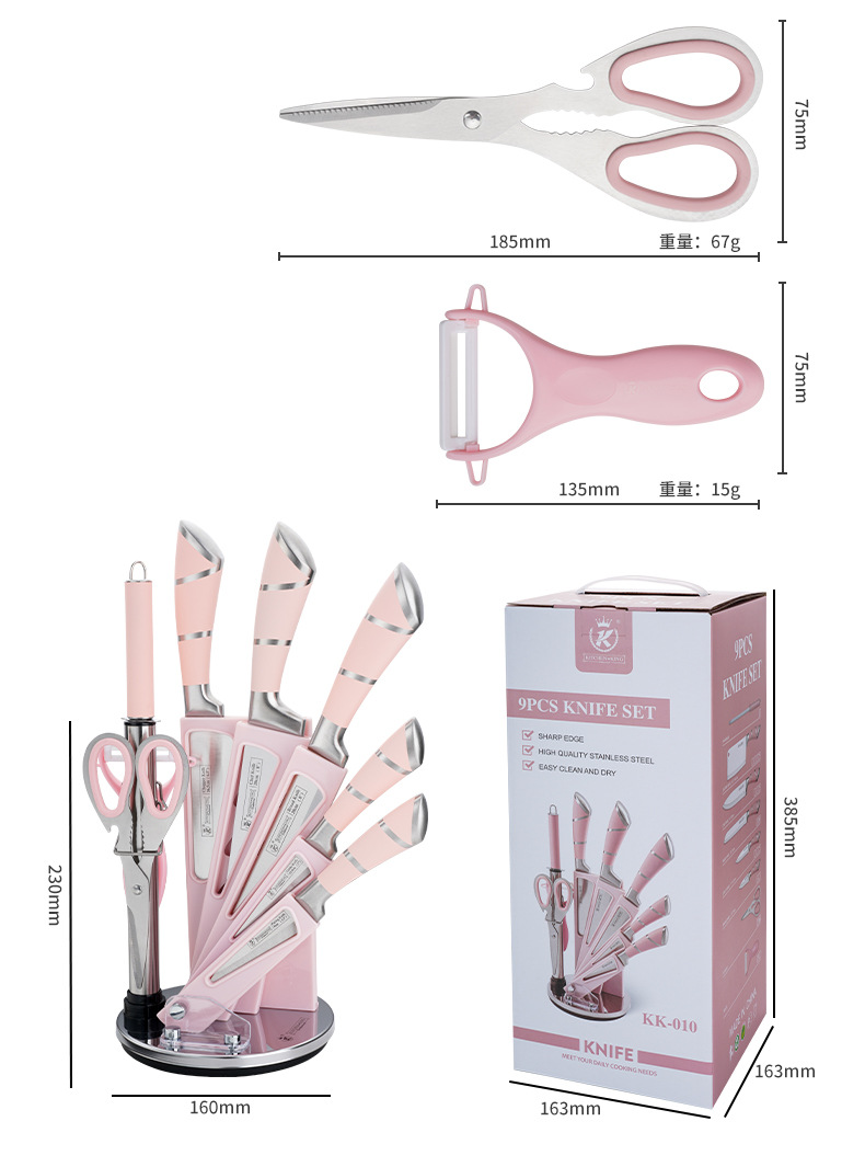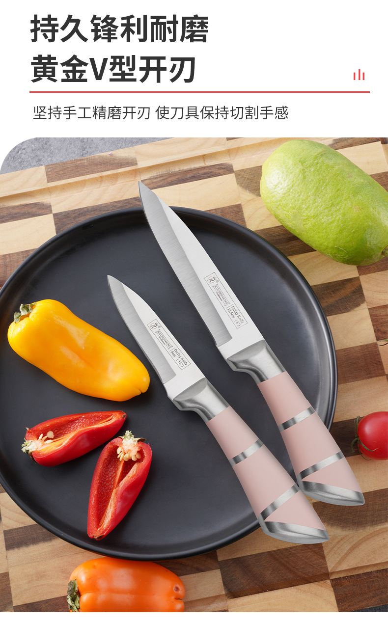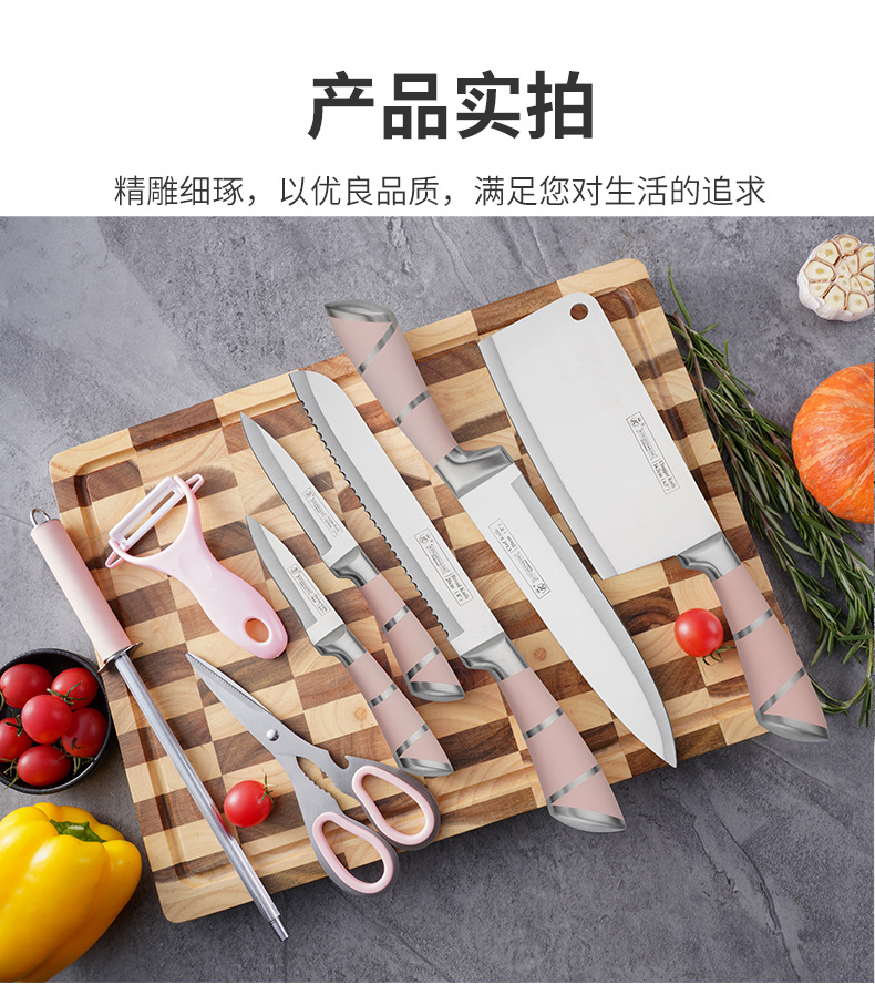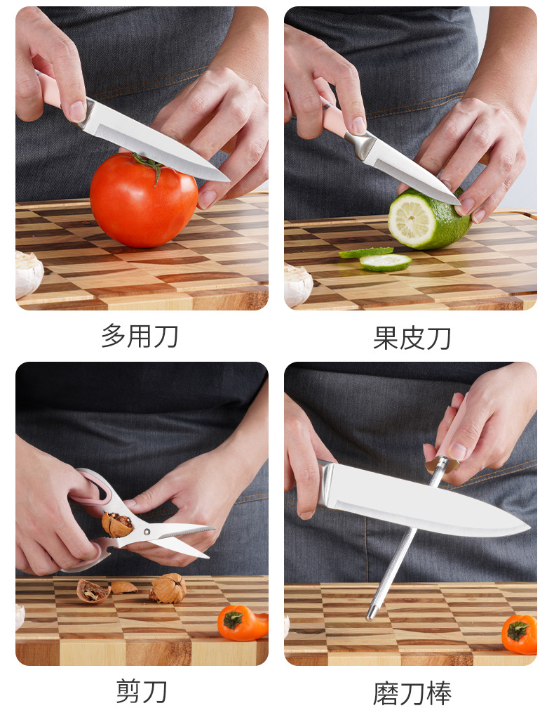 家美康外贸刀具套装厨房不锈钢刀具套装空心柄套刀组合粉色刀现货