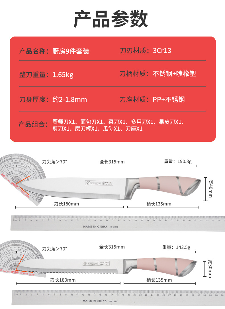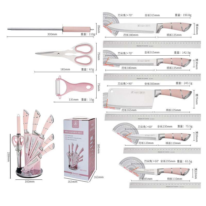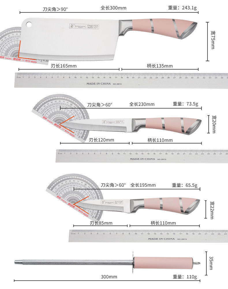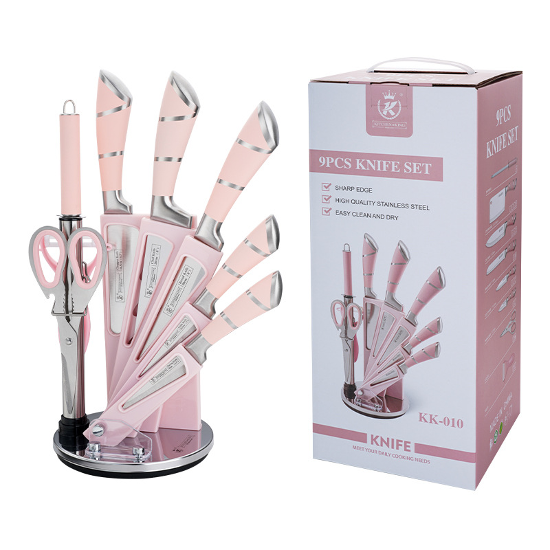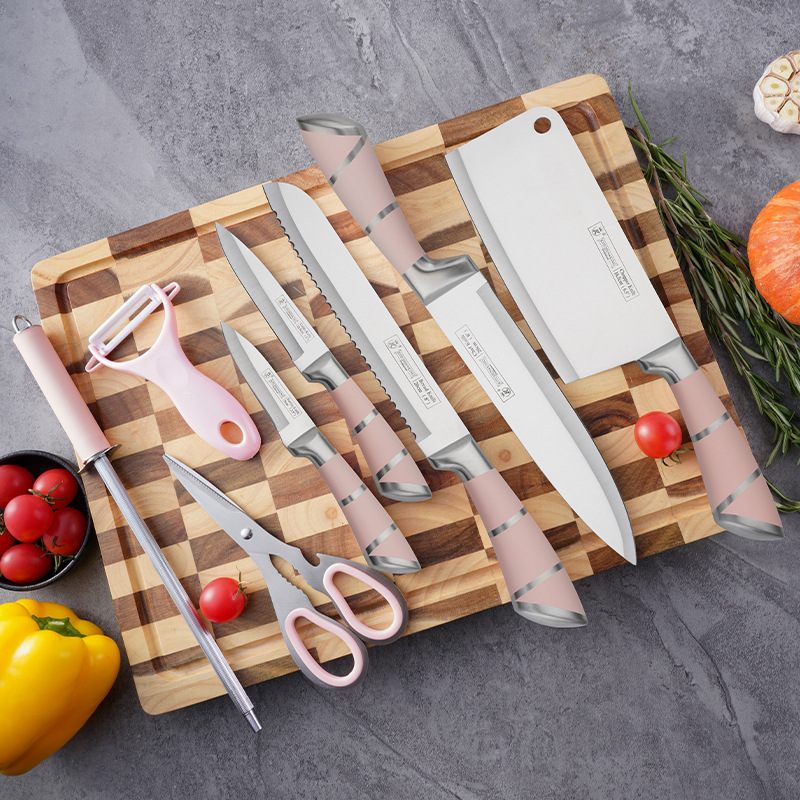 家美康外贸刀具套装厨房不锈钢刀具套装空心柄套刀组合粉色刀现货