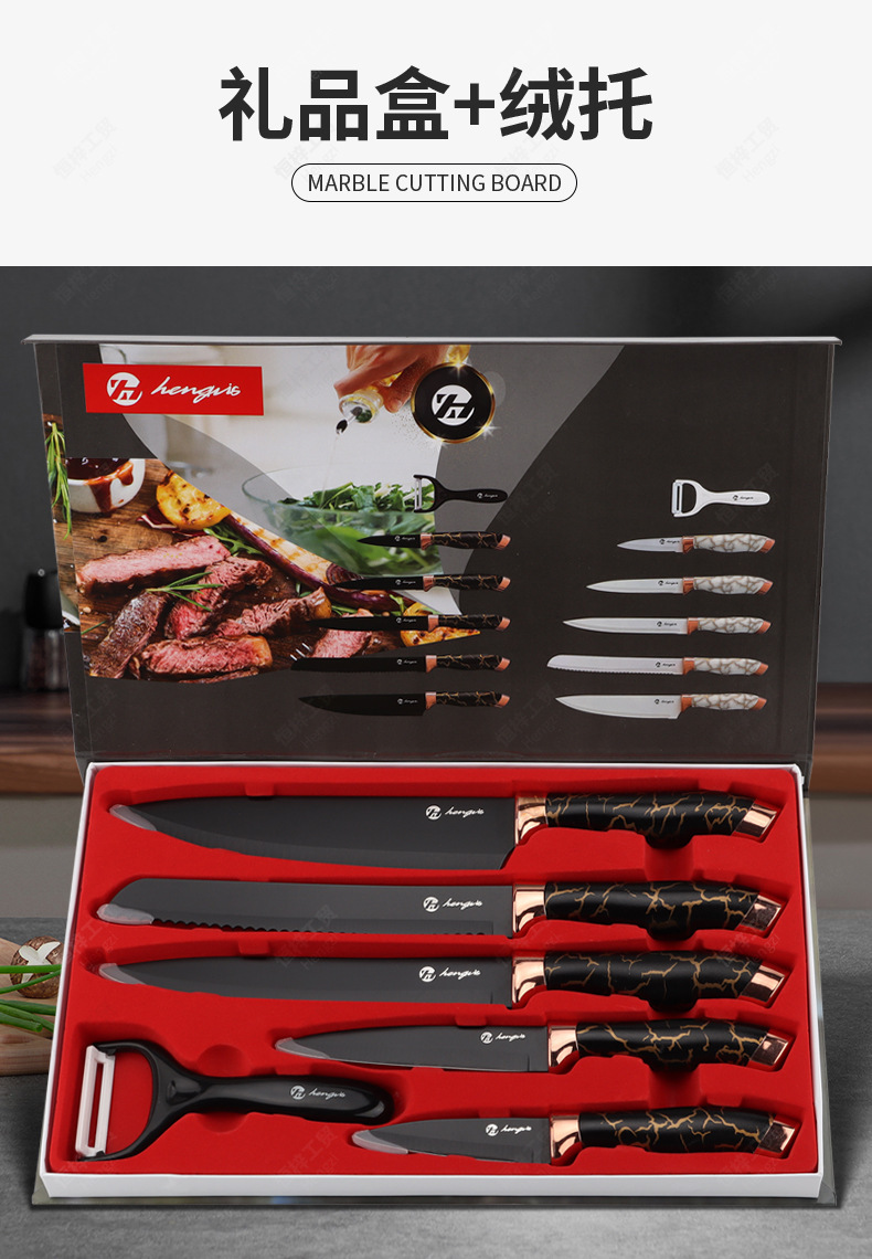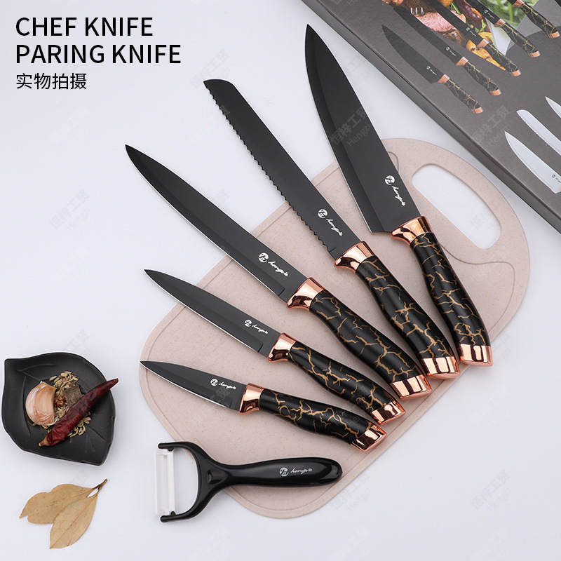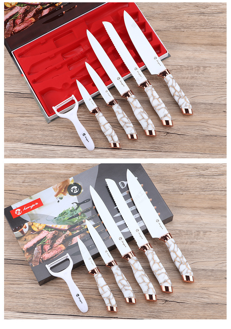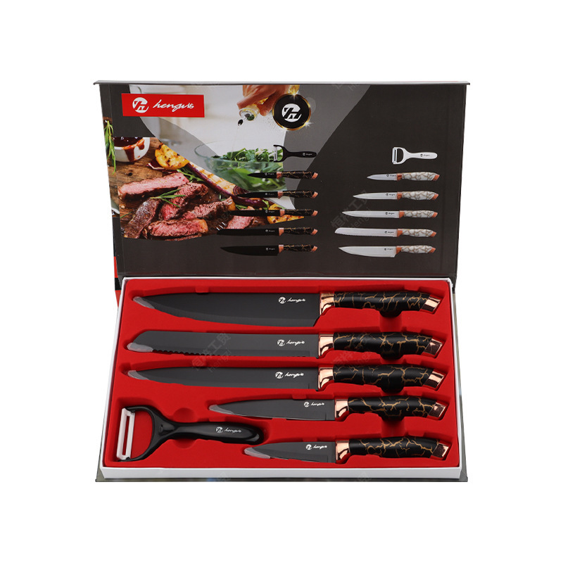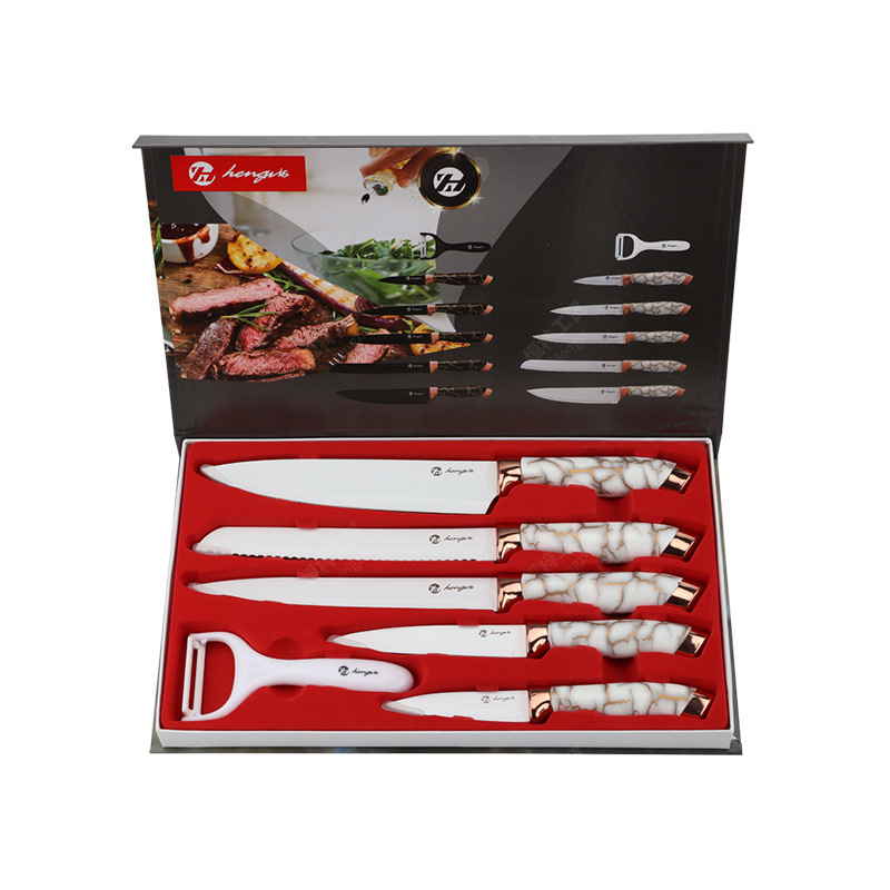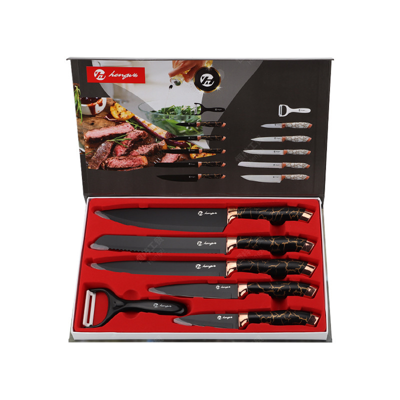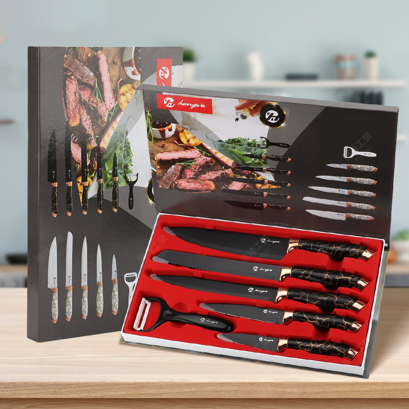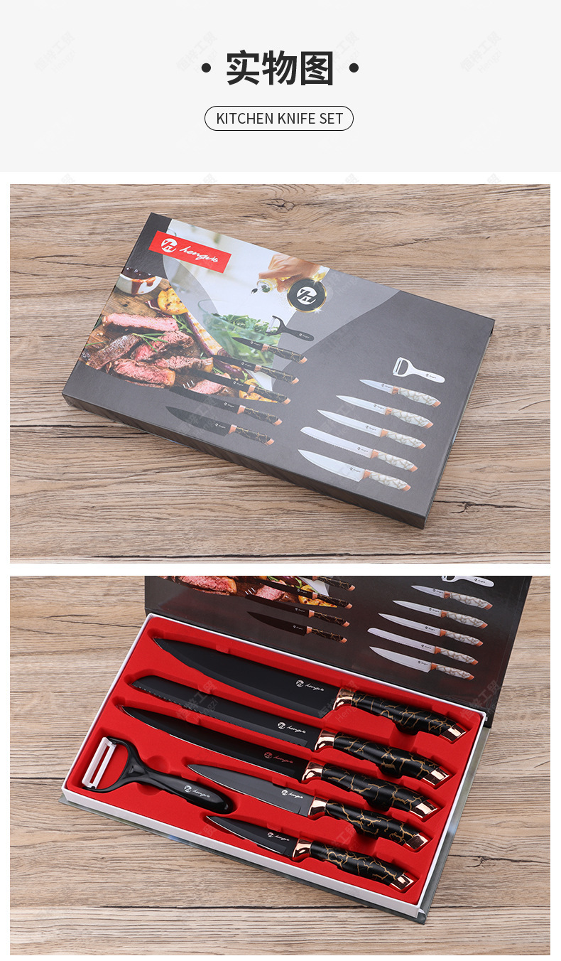 刀具套装菜刀大理石纹不锈钢六件套厨师刀跨境盒装