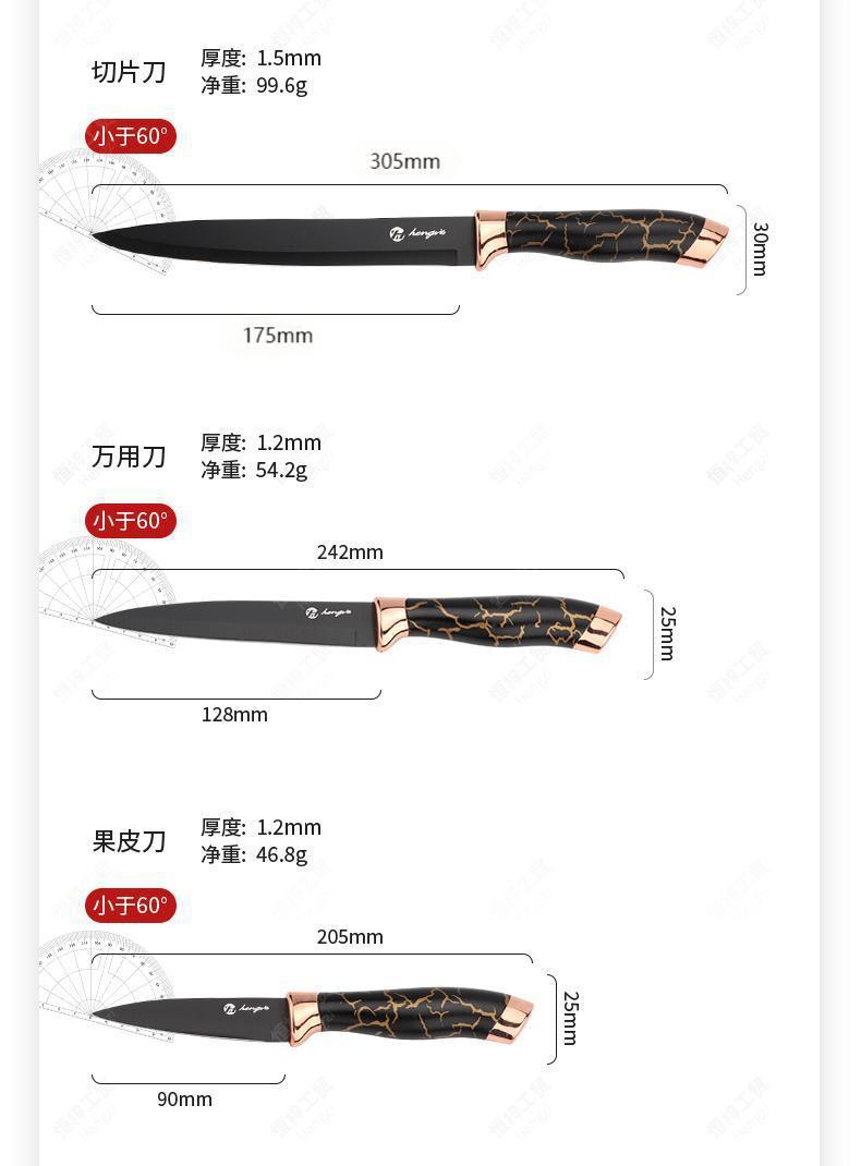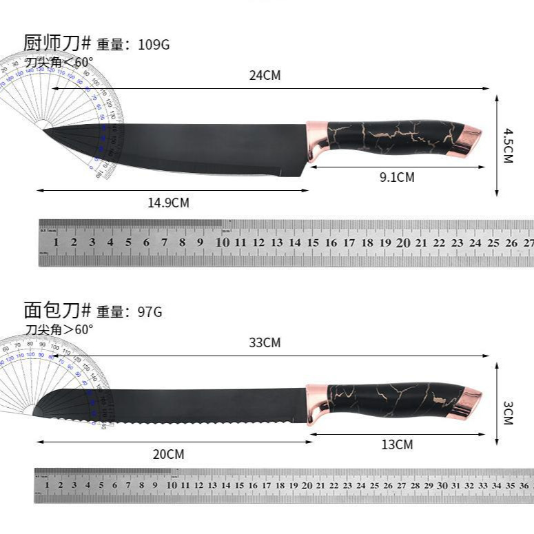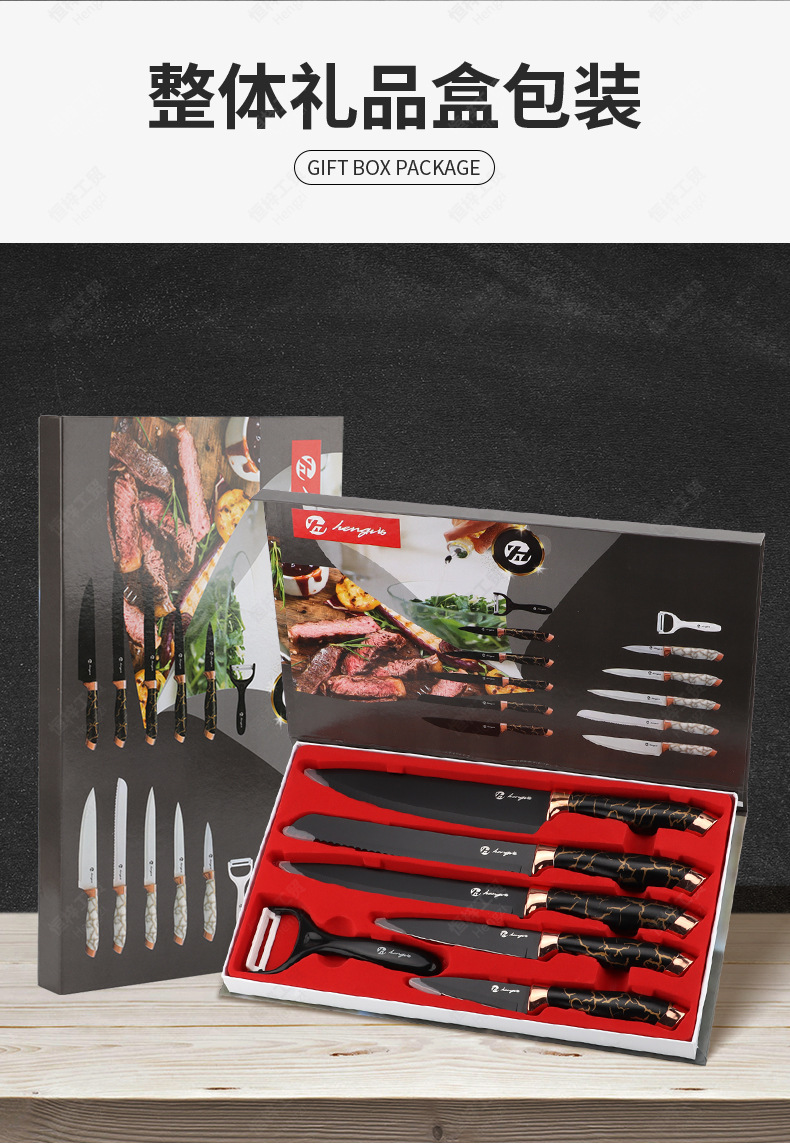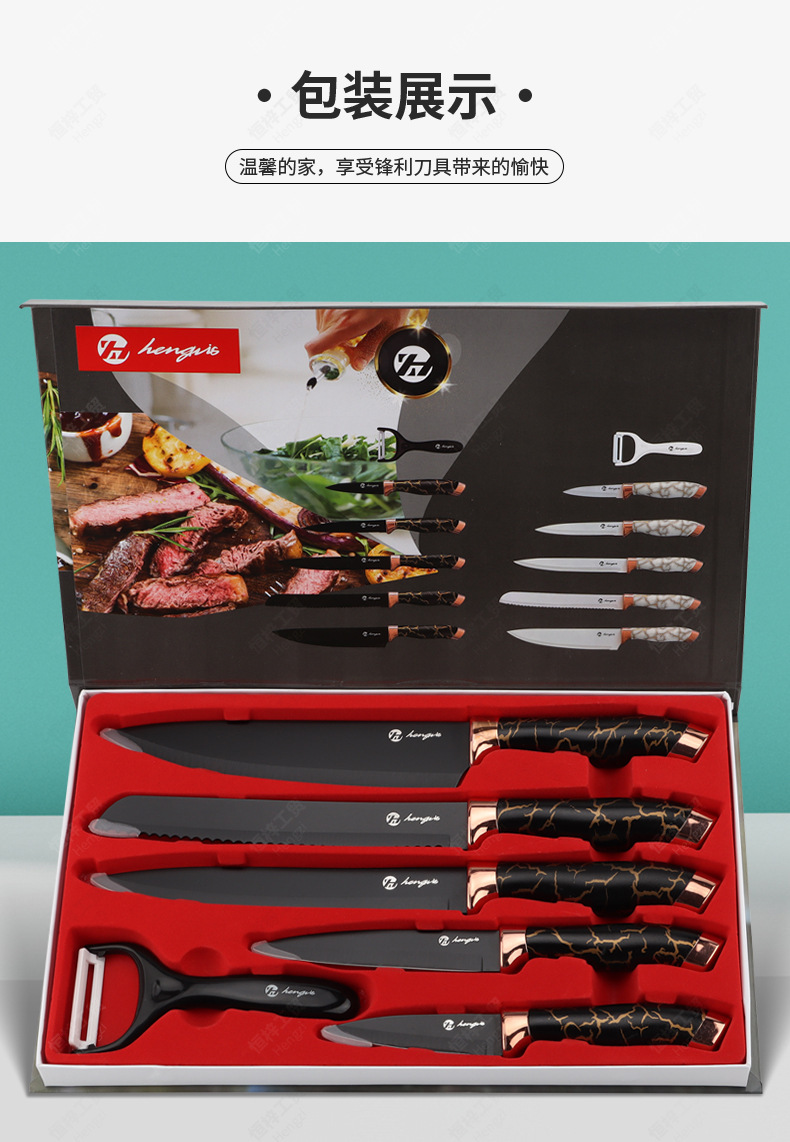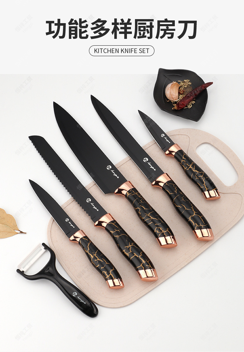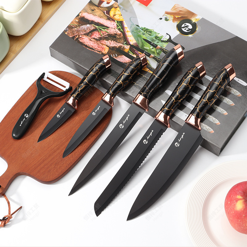 刀具套装菜刀大理石纹不锈钢六件套厨师刀跨境盒装