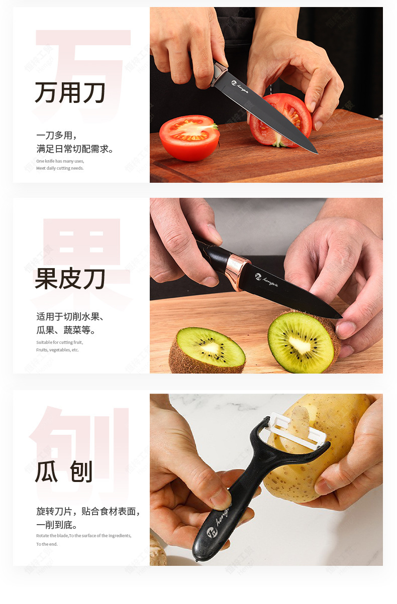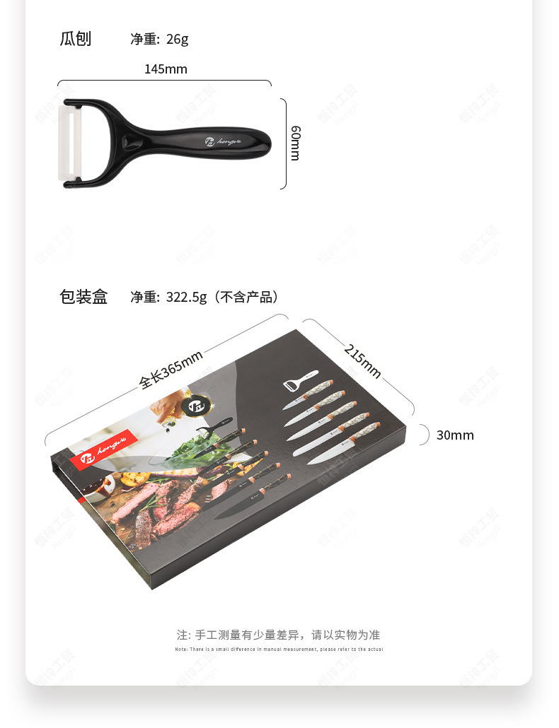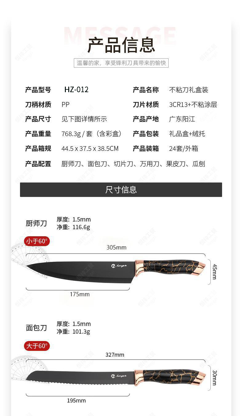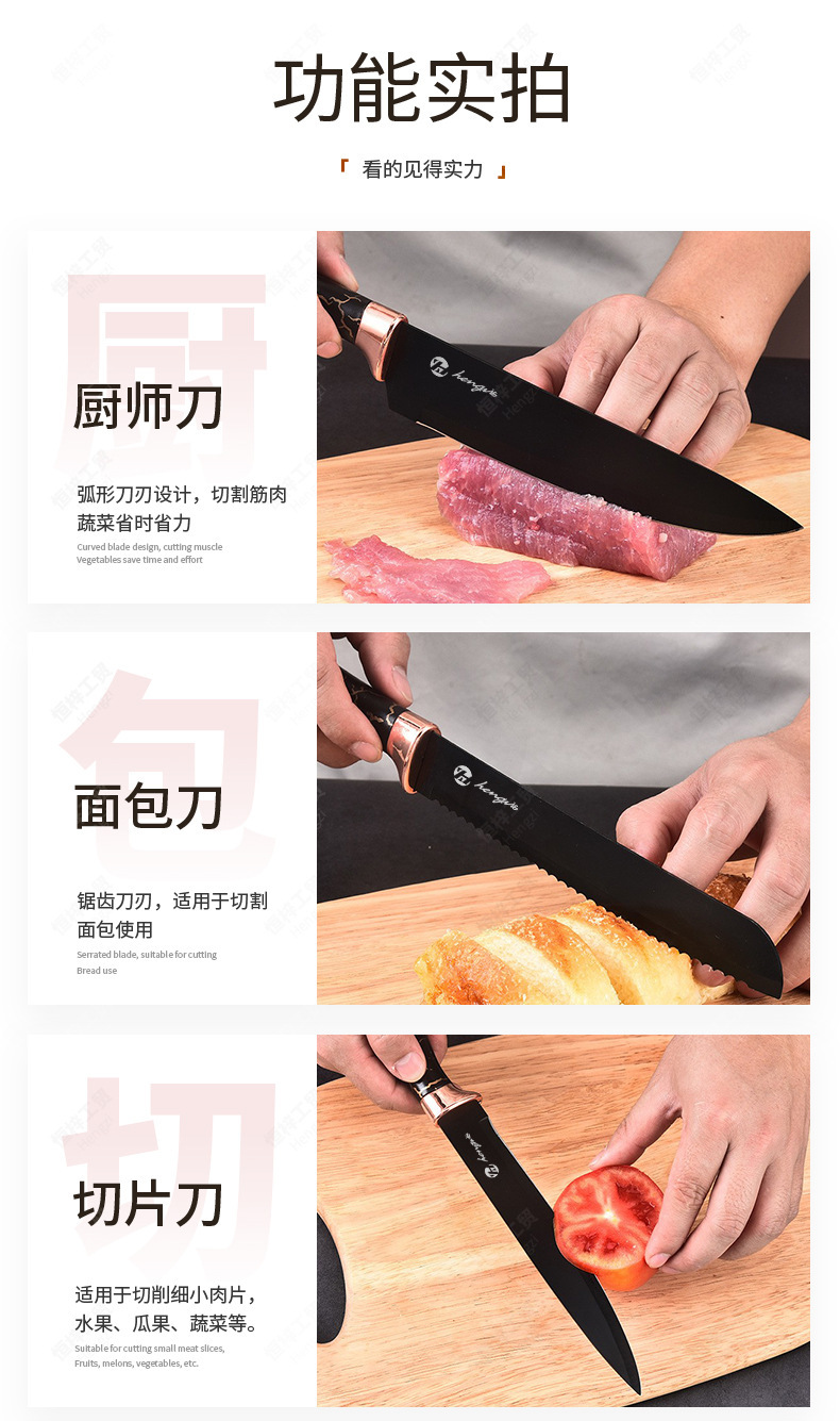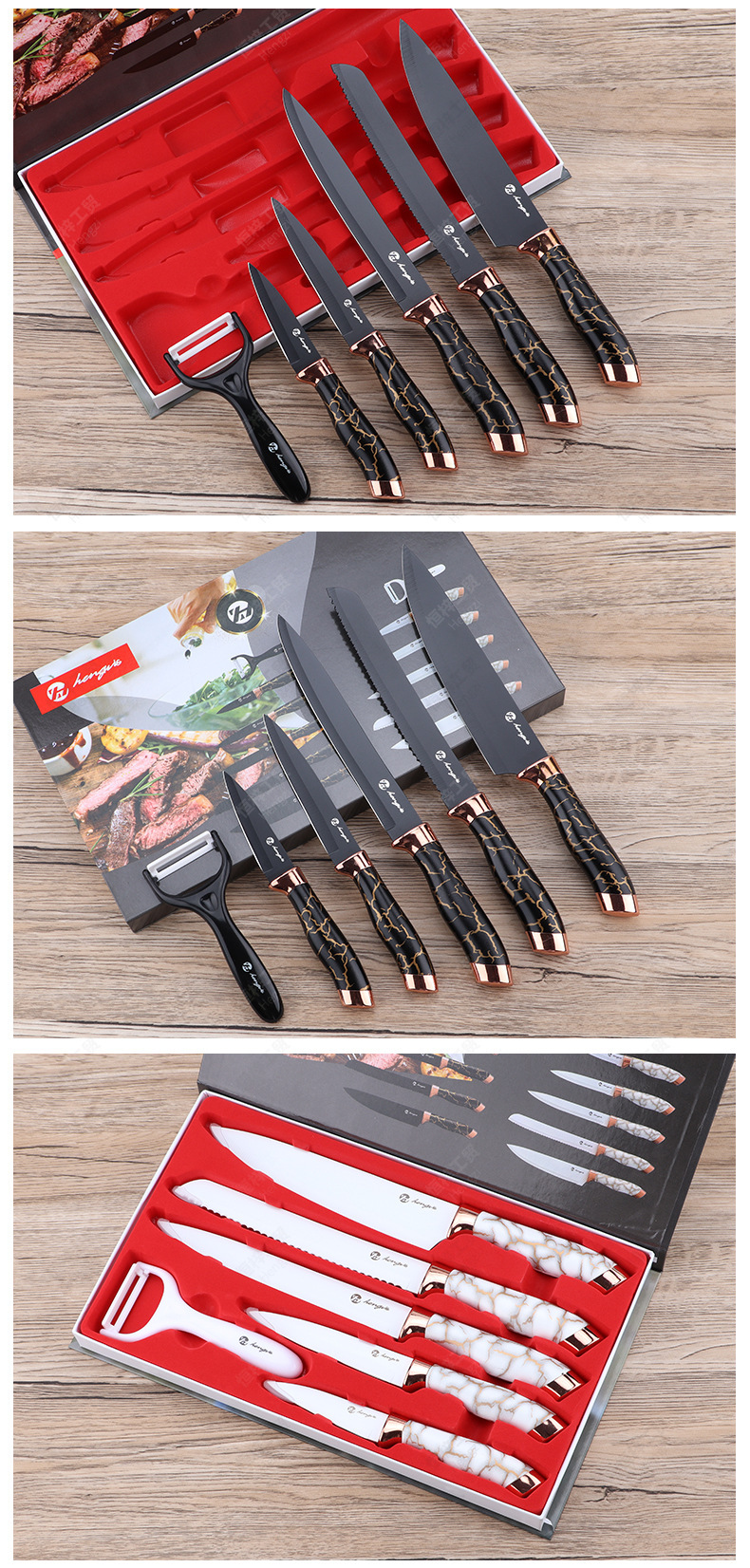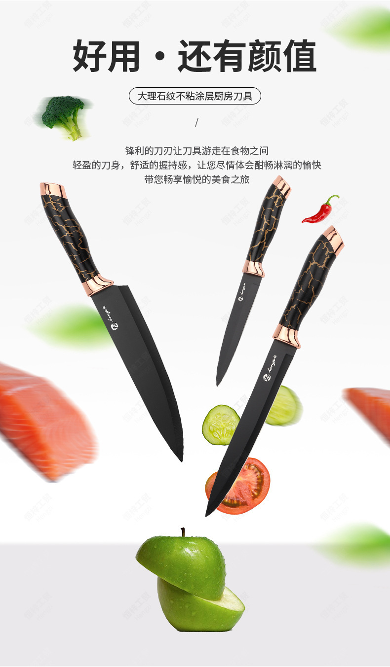 刀具套装菜刀大理石纹不锈钢六件套厨师刀跨境盒装