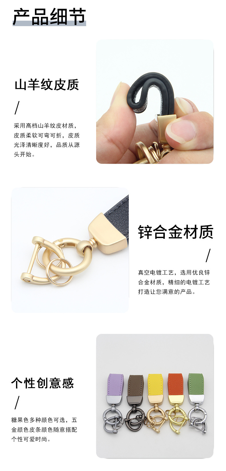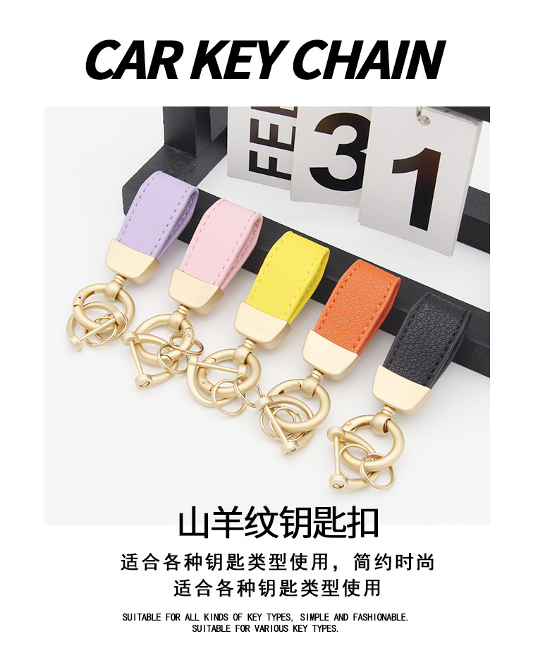 法式小羊皮汽车钥匙扣高档山羊纹彩色皮革钥匙链可爱女款礼品批发