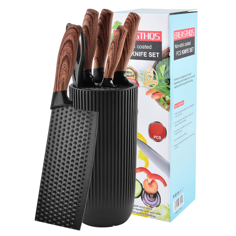 厨房不锈钢刀具套装肥仔柄披覆六件套不沾厨师刀菜刀跨境菜刀套装