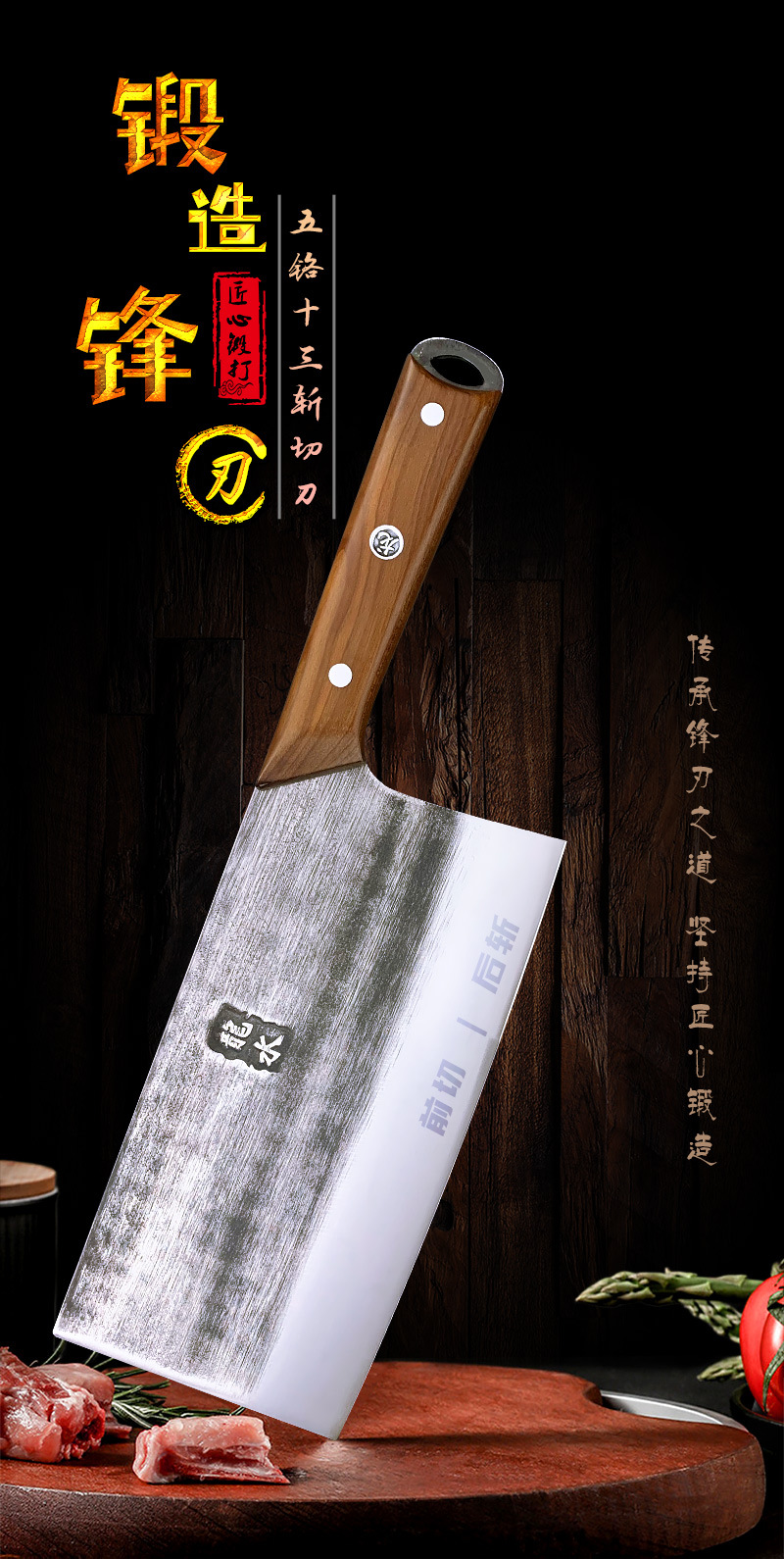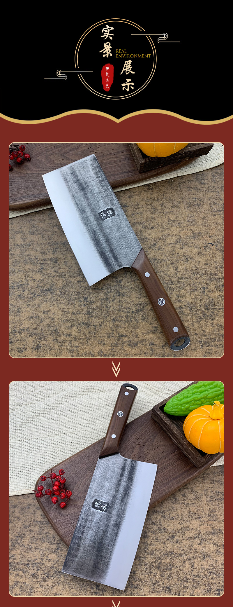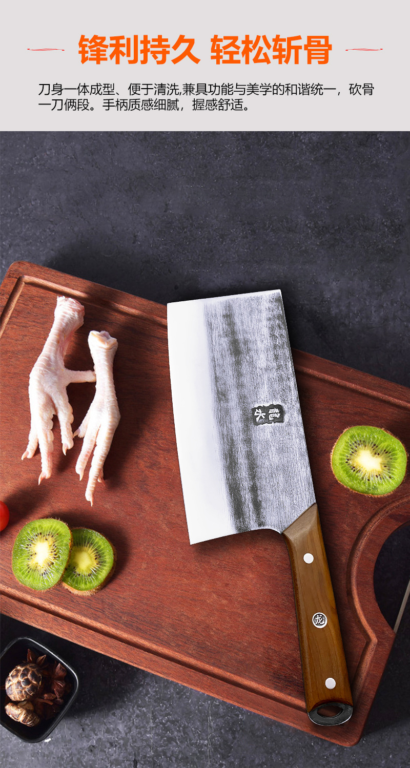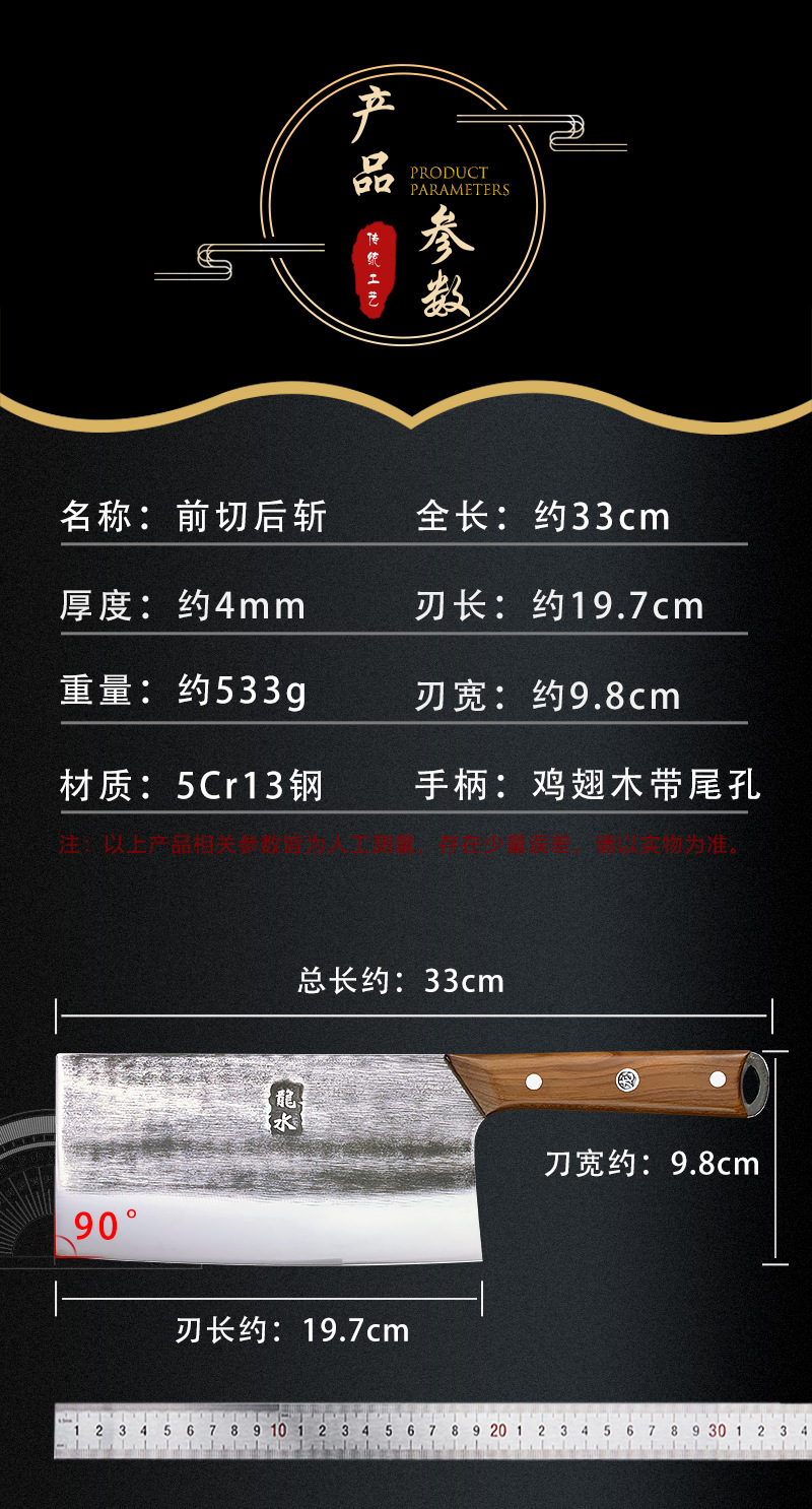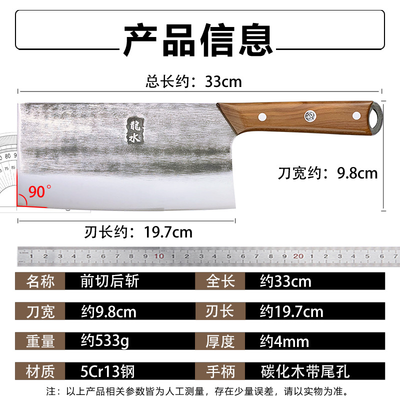 龙水锻打斩切两用刀古龙手工锻打家用厨房厨师专用锋利切菜切片刀