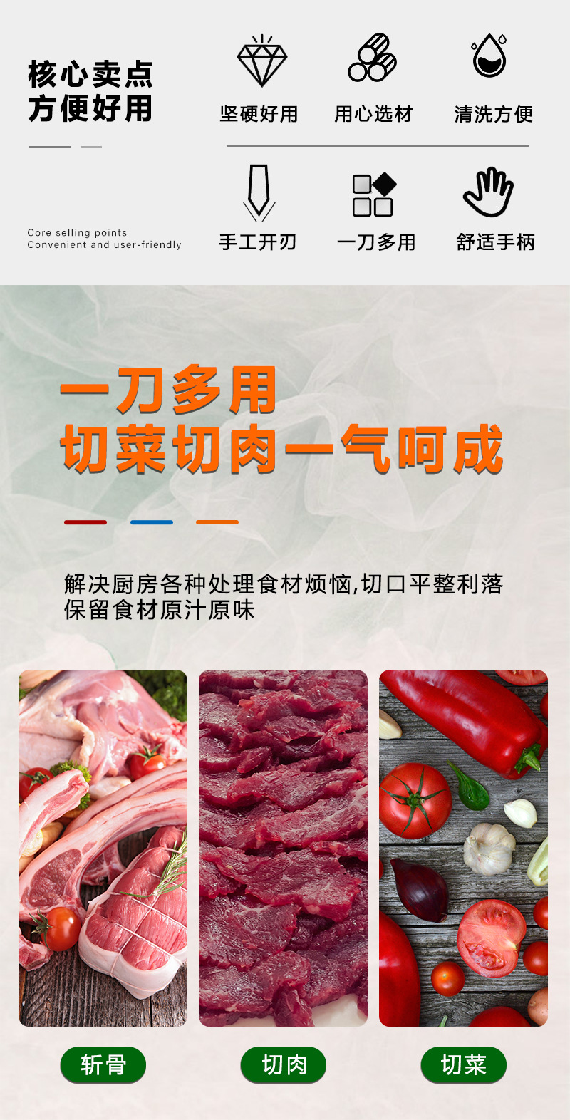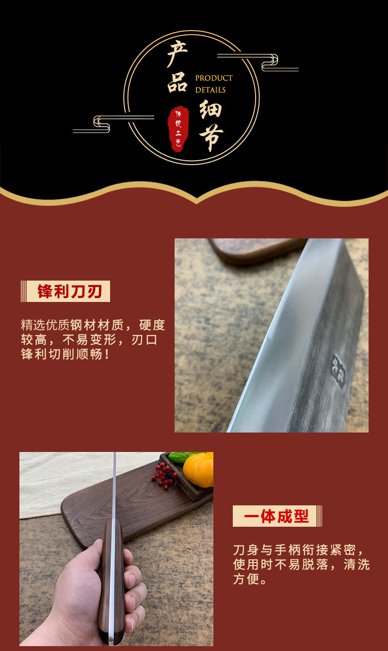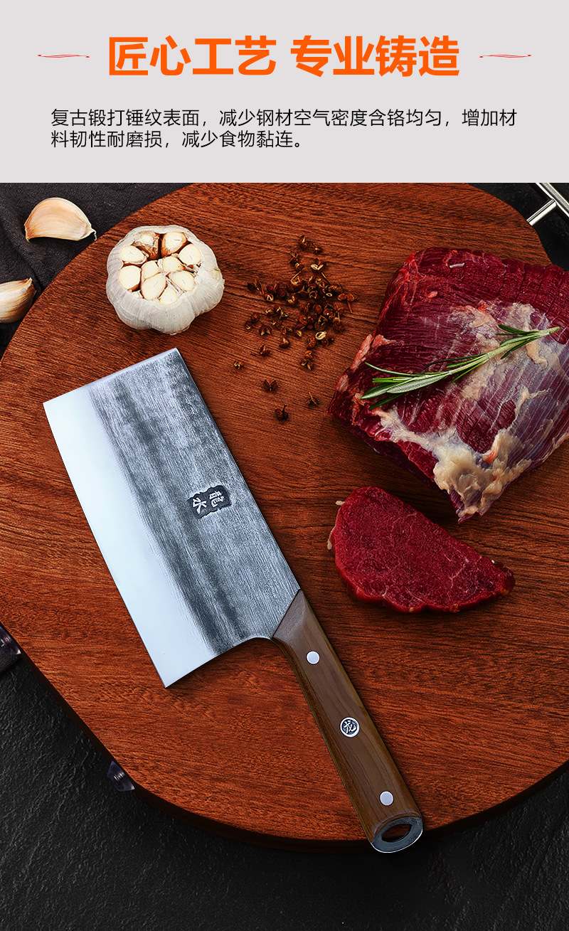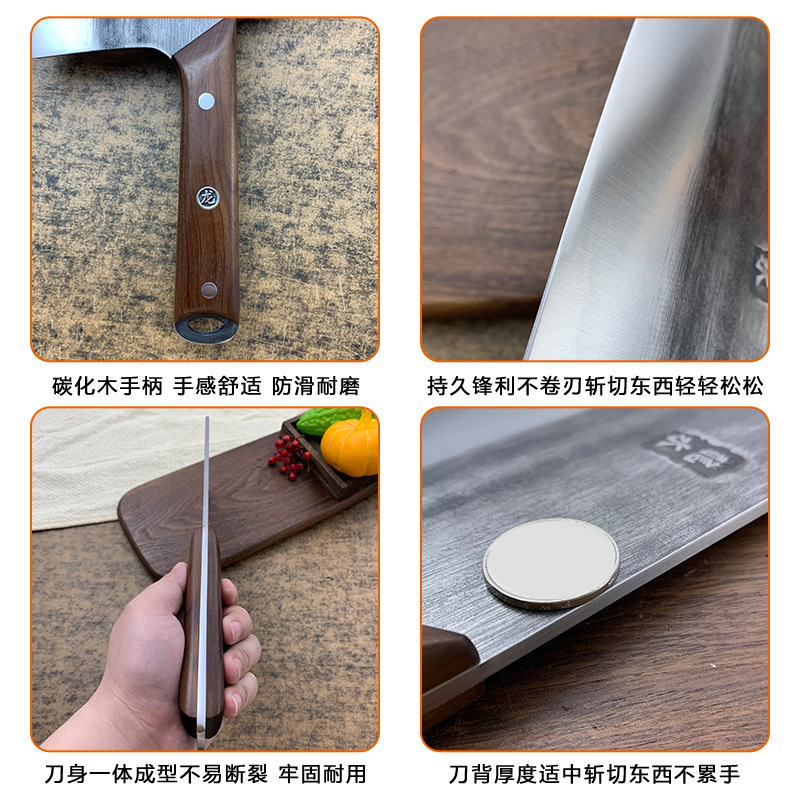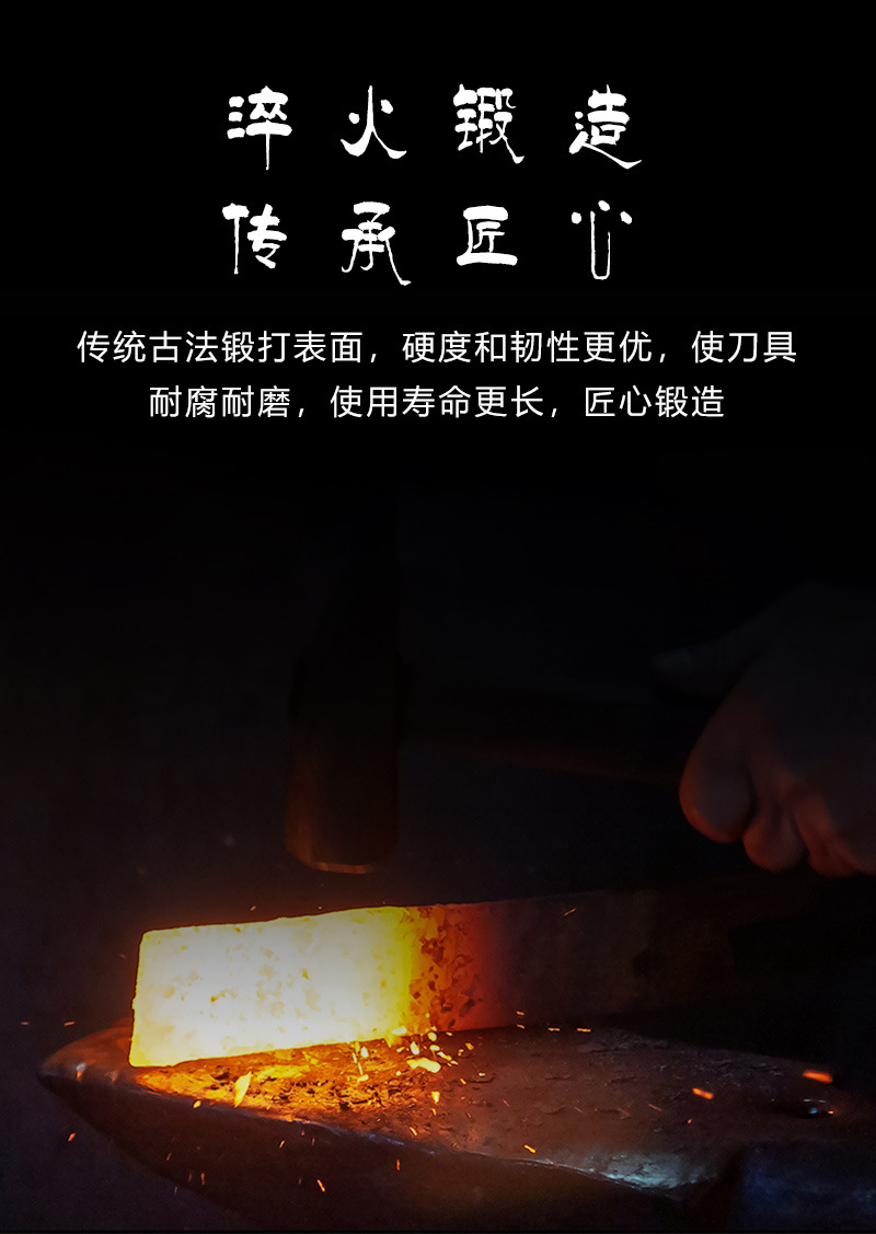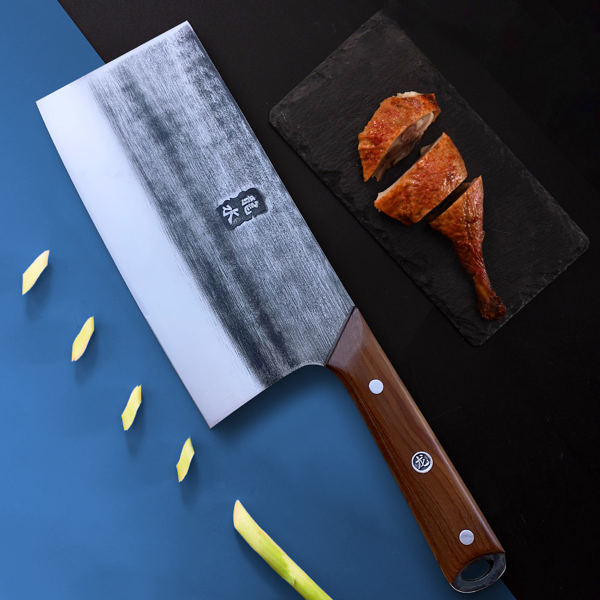 龙水锻打斩切两用刀古龙手工锻打家用厨房厨师专用锋利切菜切片刀