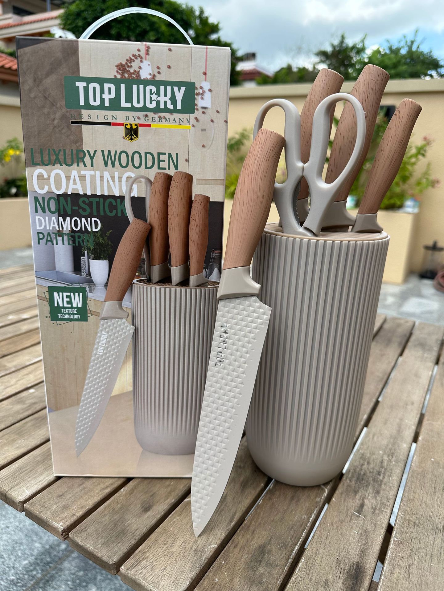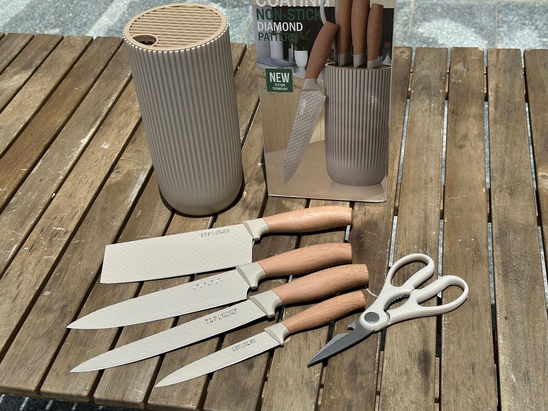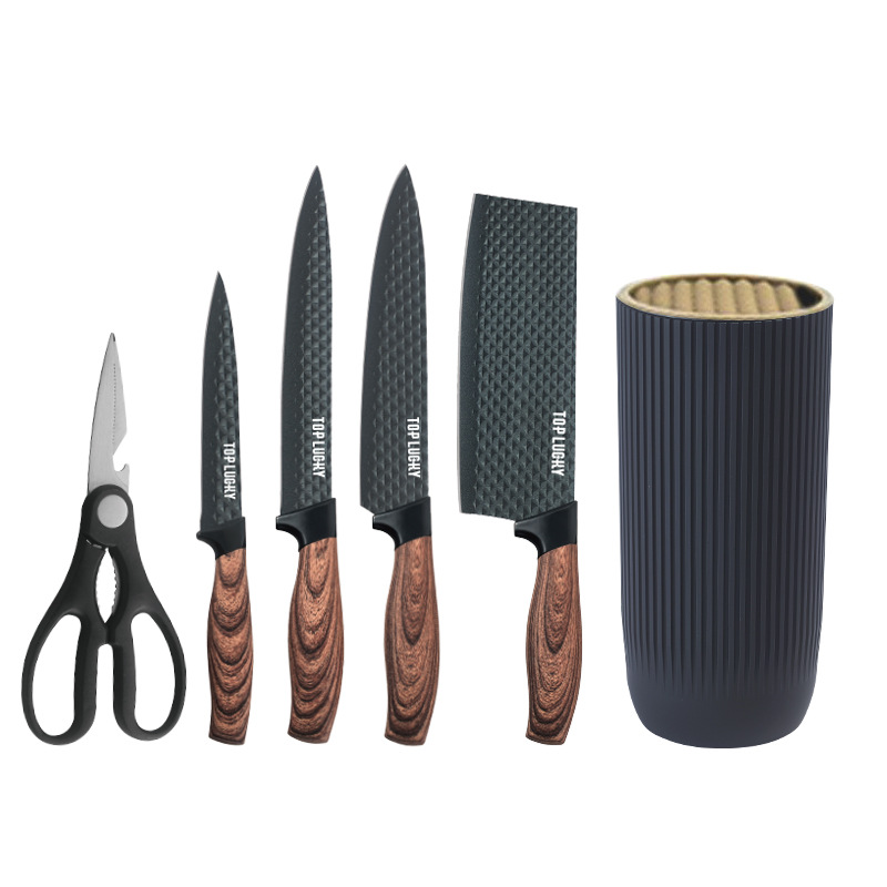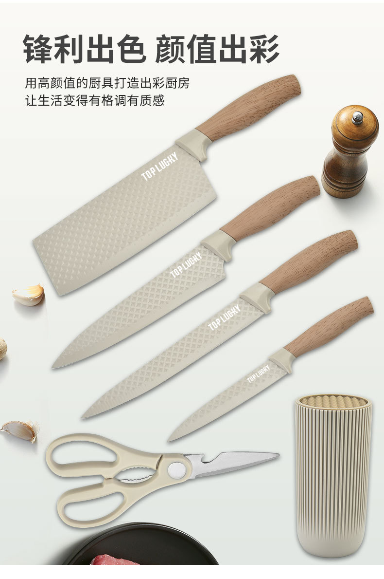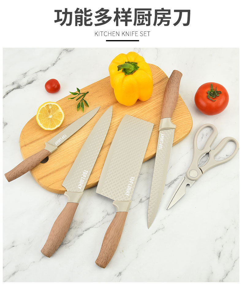 刀具套装厨房刀具套装外贸不锈钢菜刀套刀礼盒刀剪五件套带收纳桶
