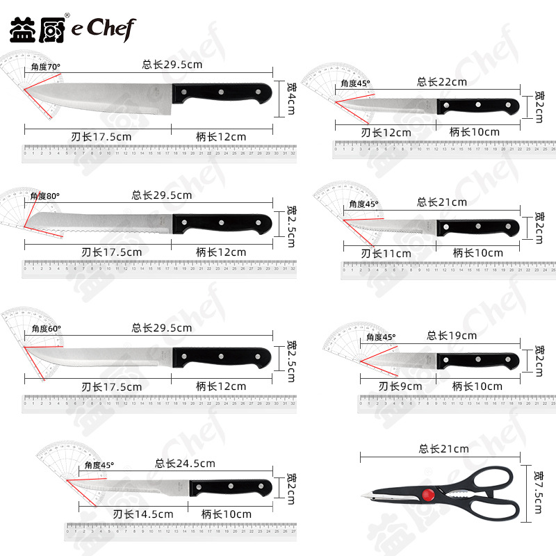 阳江菜刀实木座15件套刀具套装家用厨房全套刀塑料手柄多功能刀具