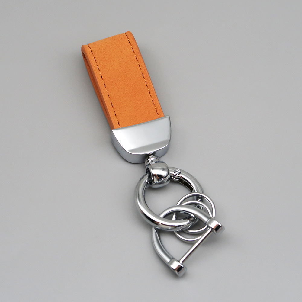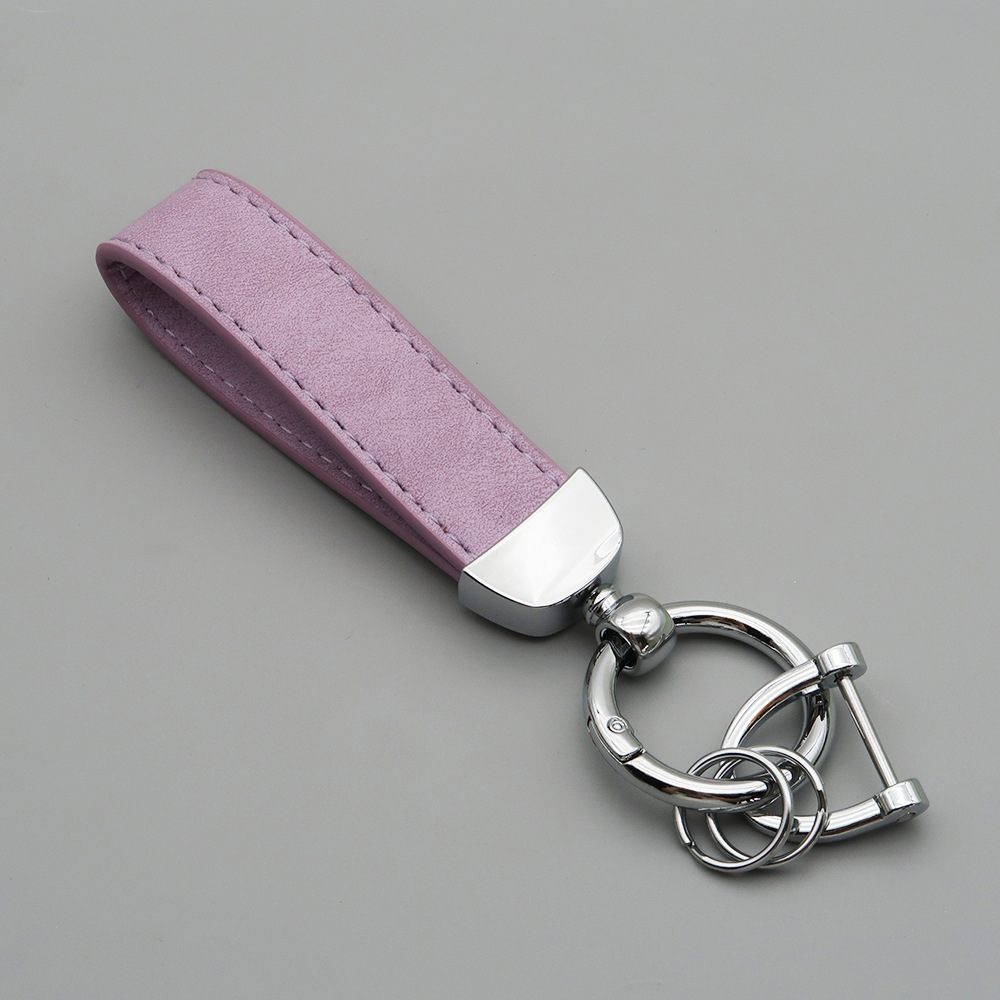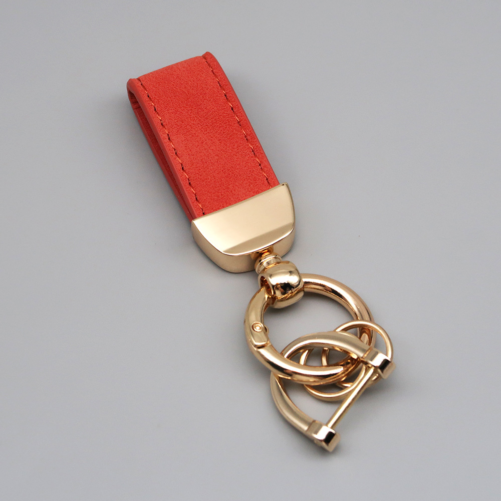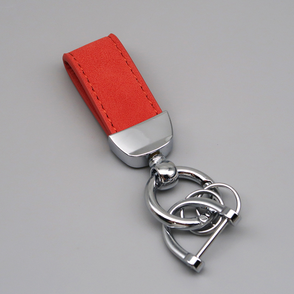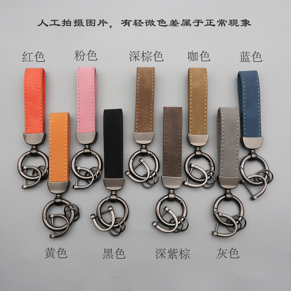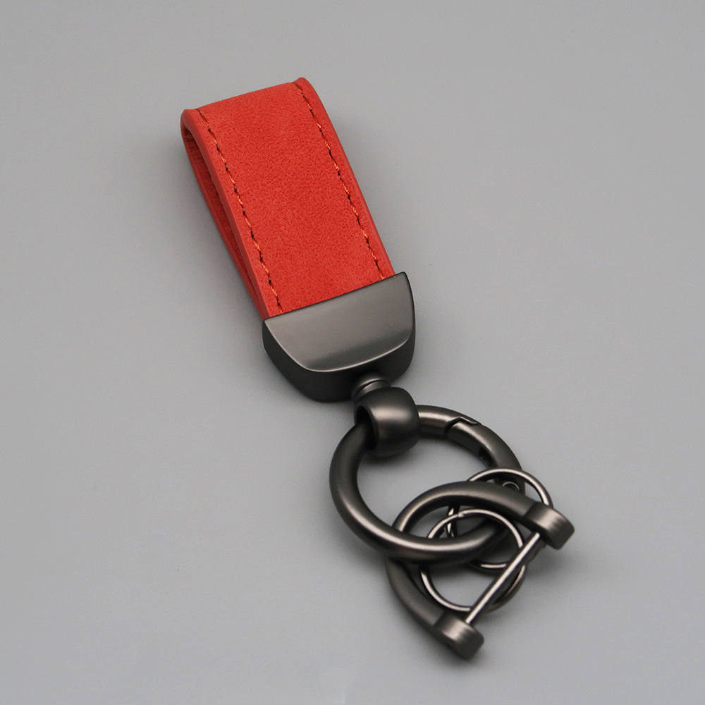 新款翻毛皮汽车钥匙扣五金防丢钥匙圈环可压印logo皮质钥匙链批发