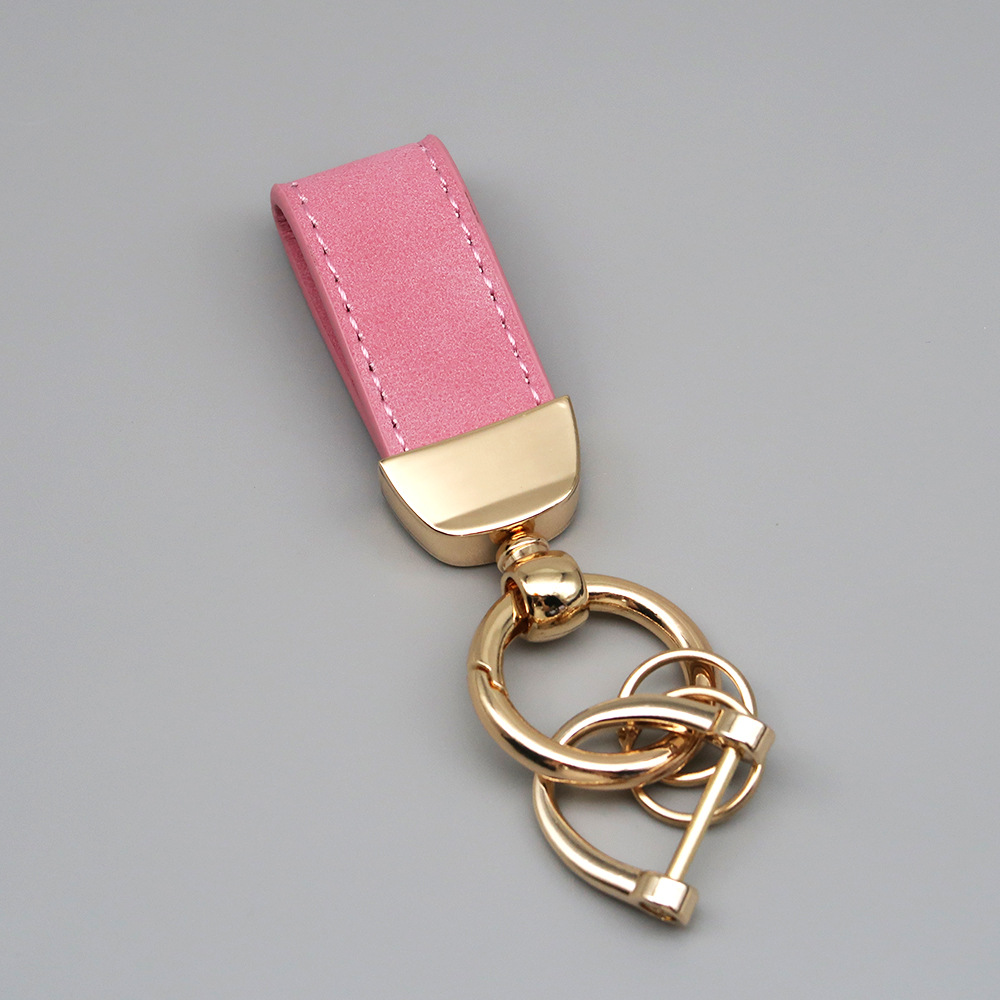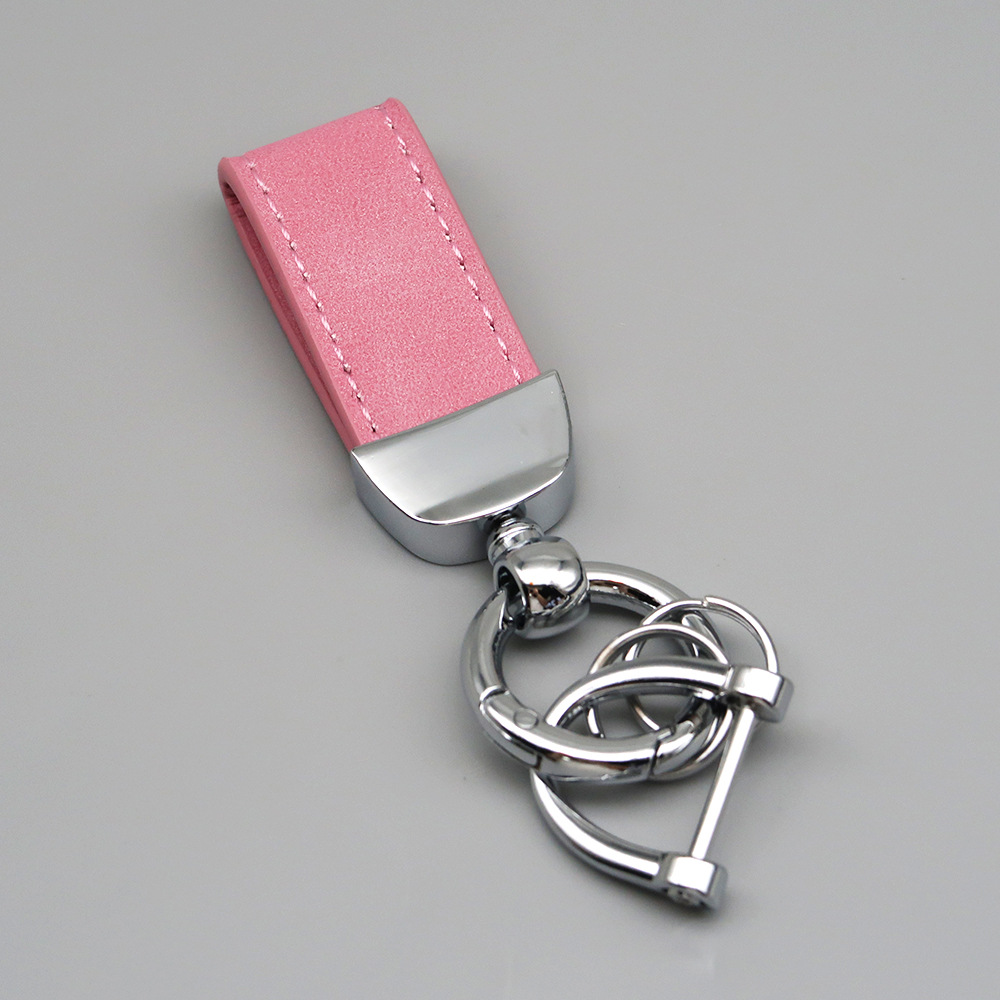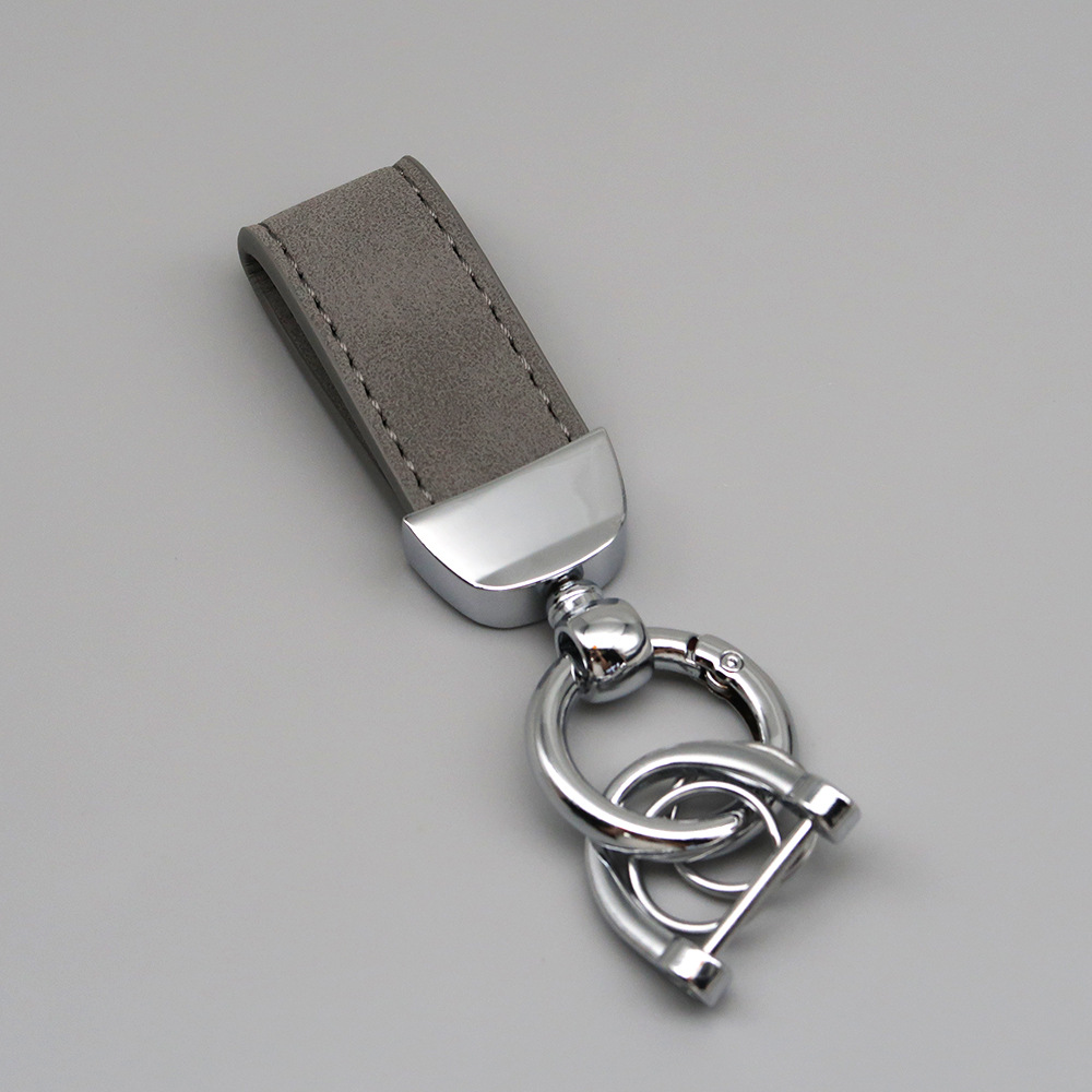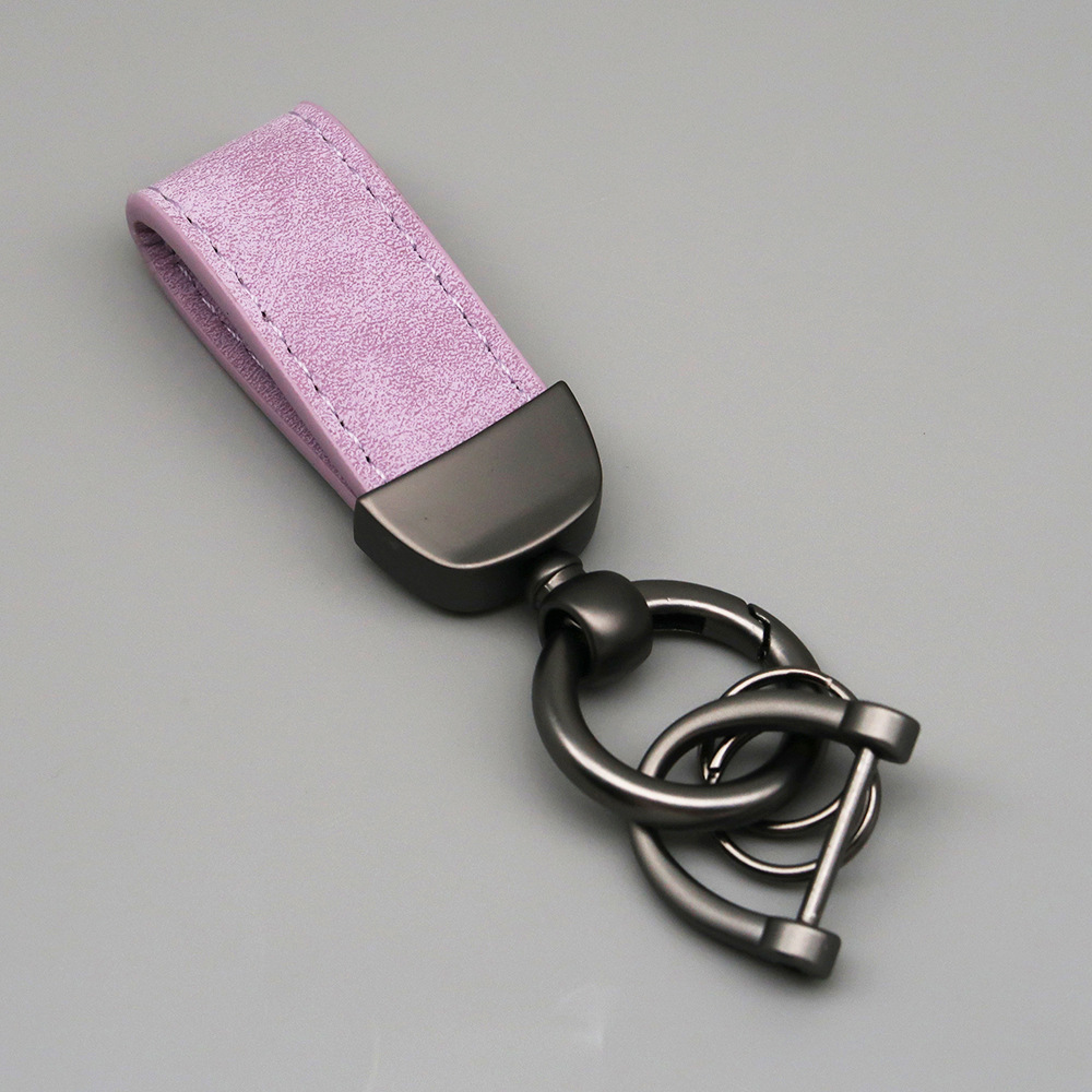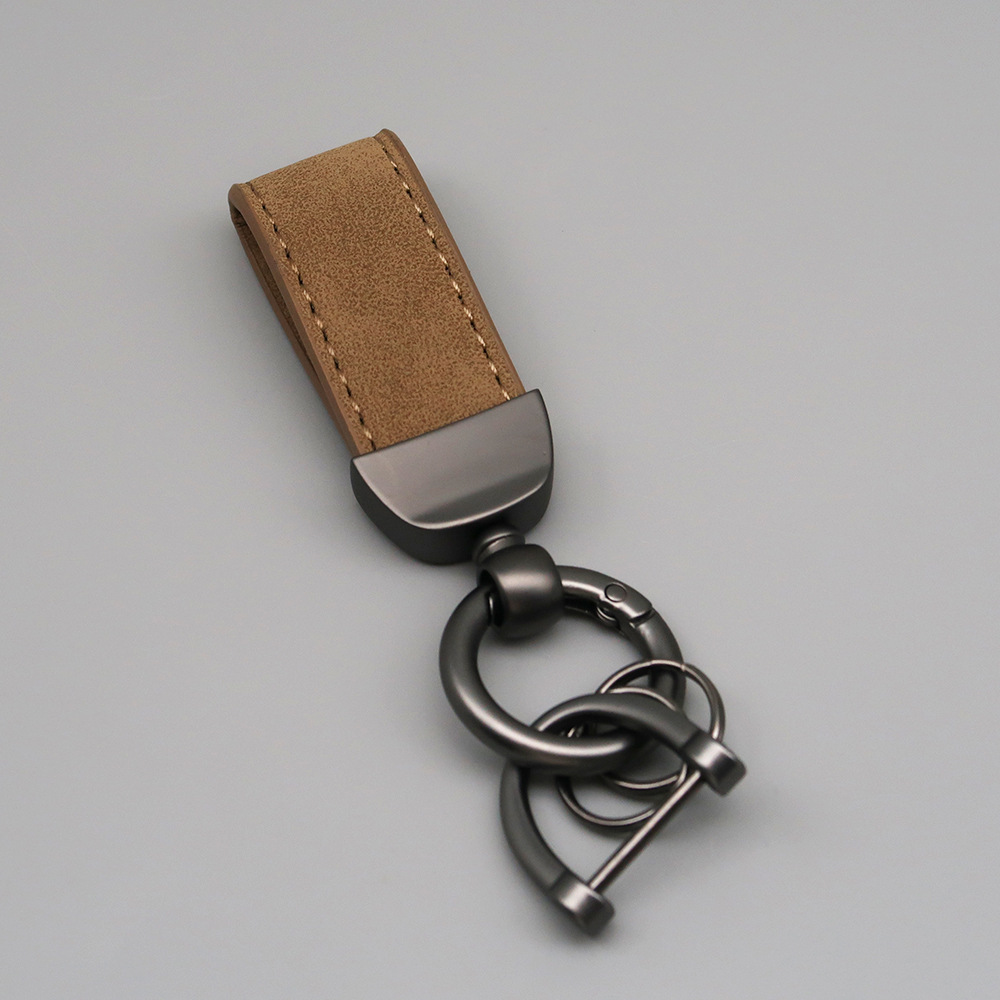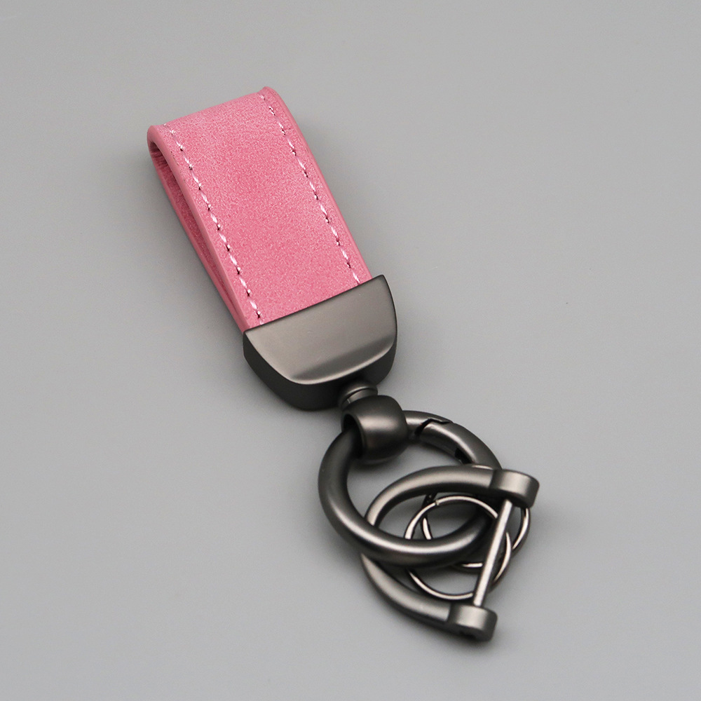 新款翻毛皮汽车钥匙扣五金防丢钥匙圈环可压印logo皮质钥匙链批发