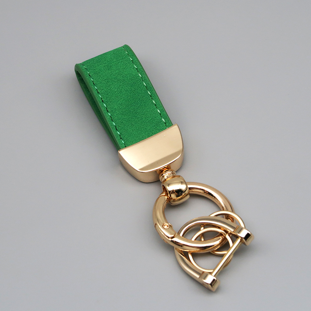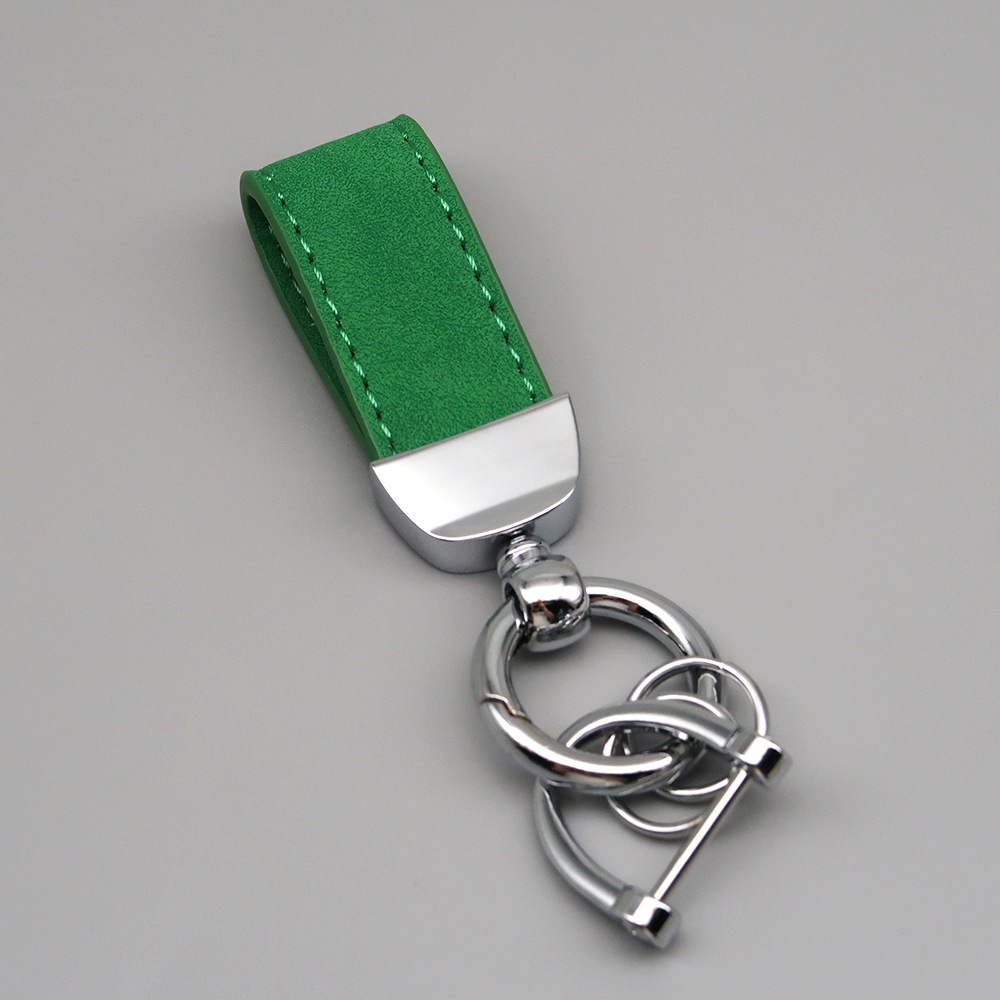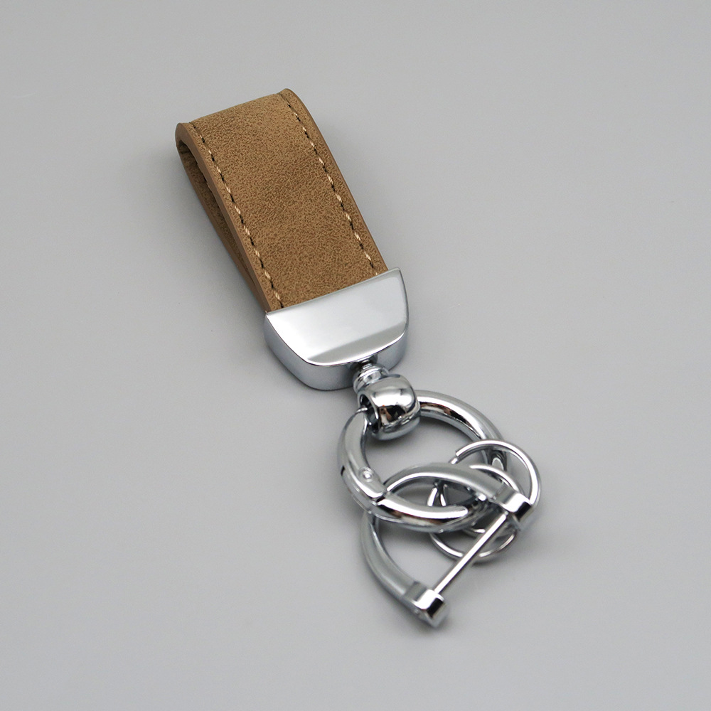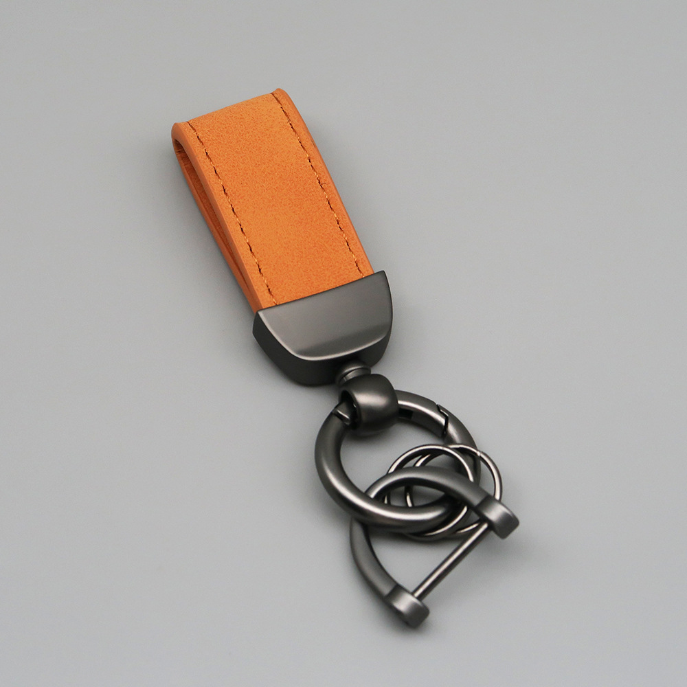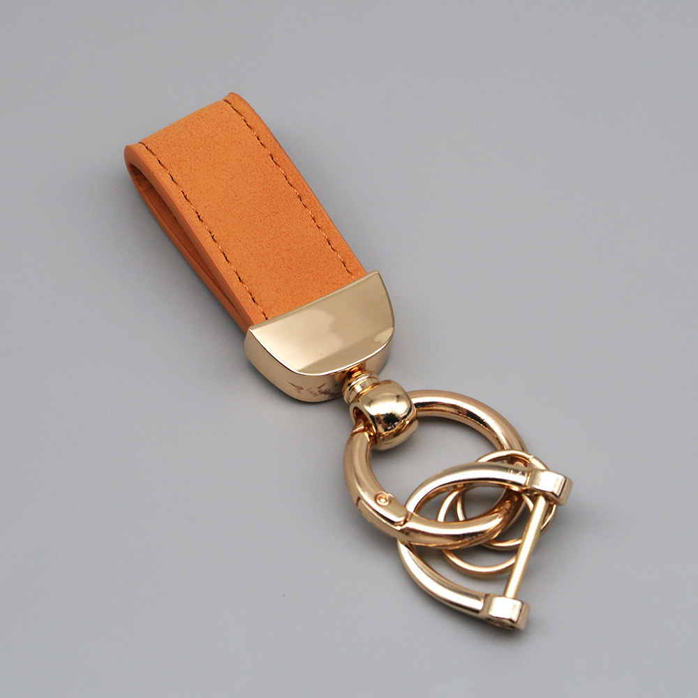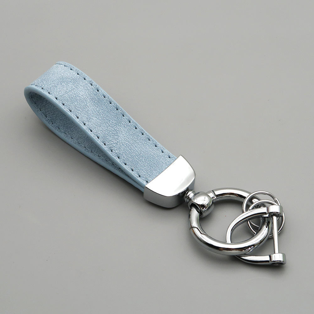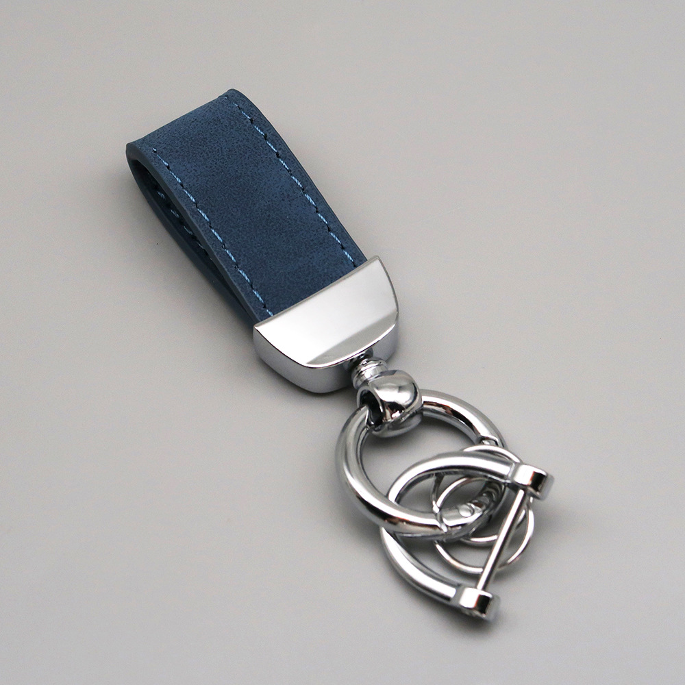 新款翻毛皮汽车钥匙扣五金防丢钥匙圈环可压印logo皮质钥匙链批发