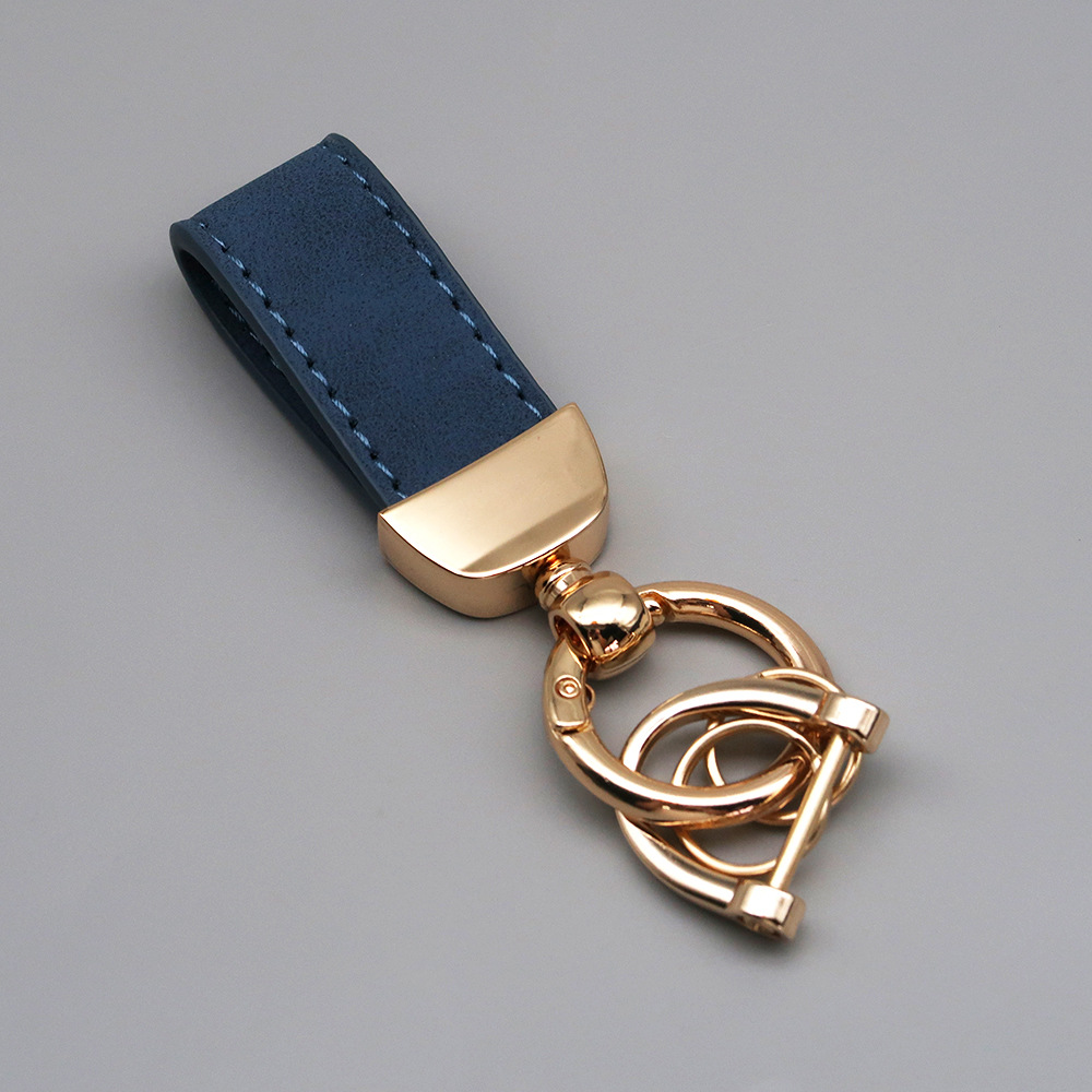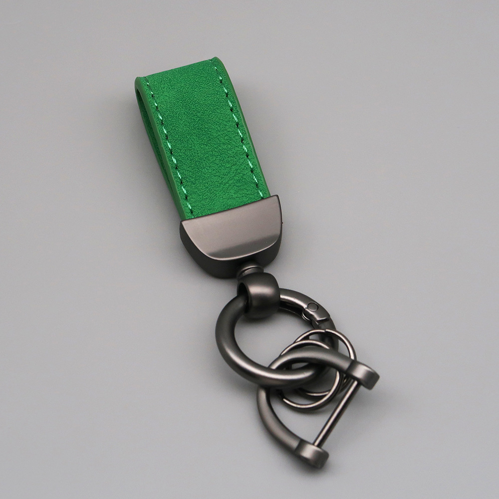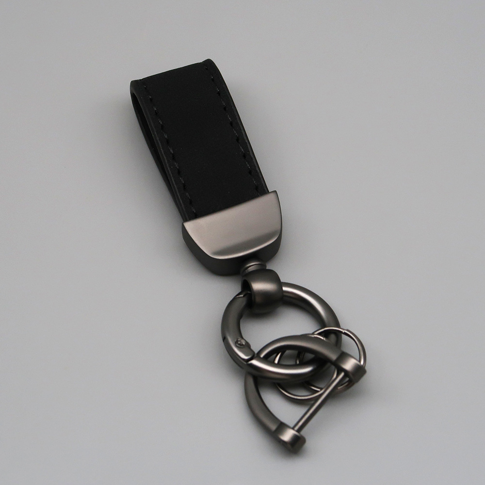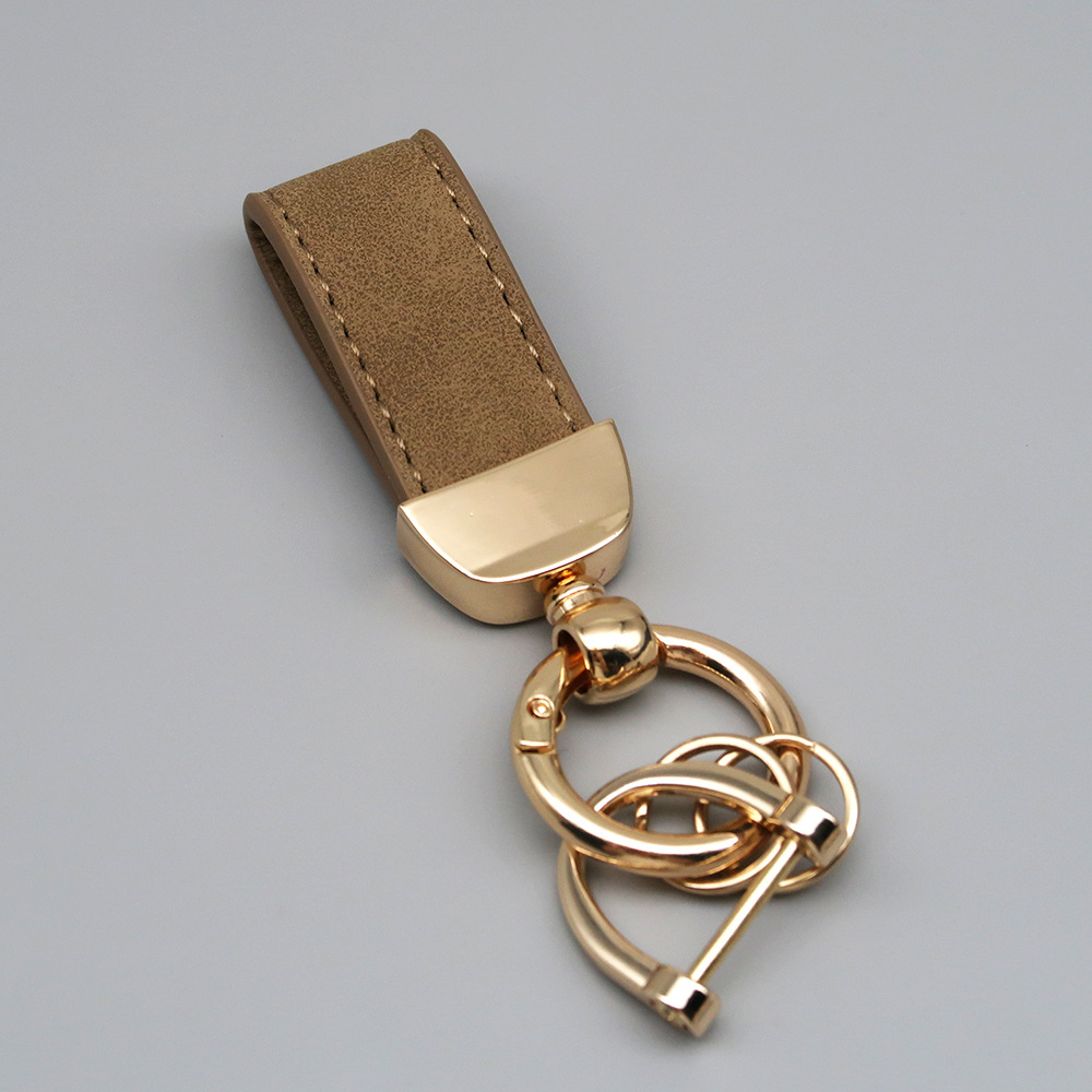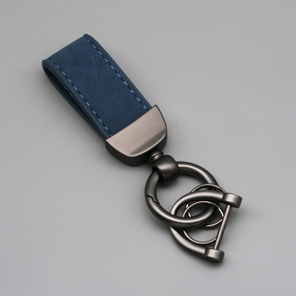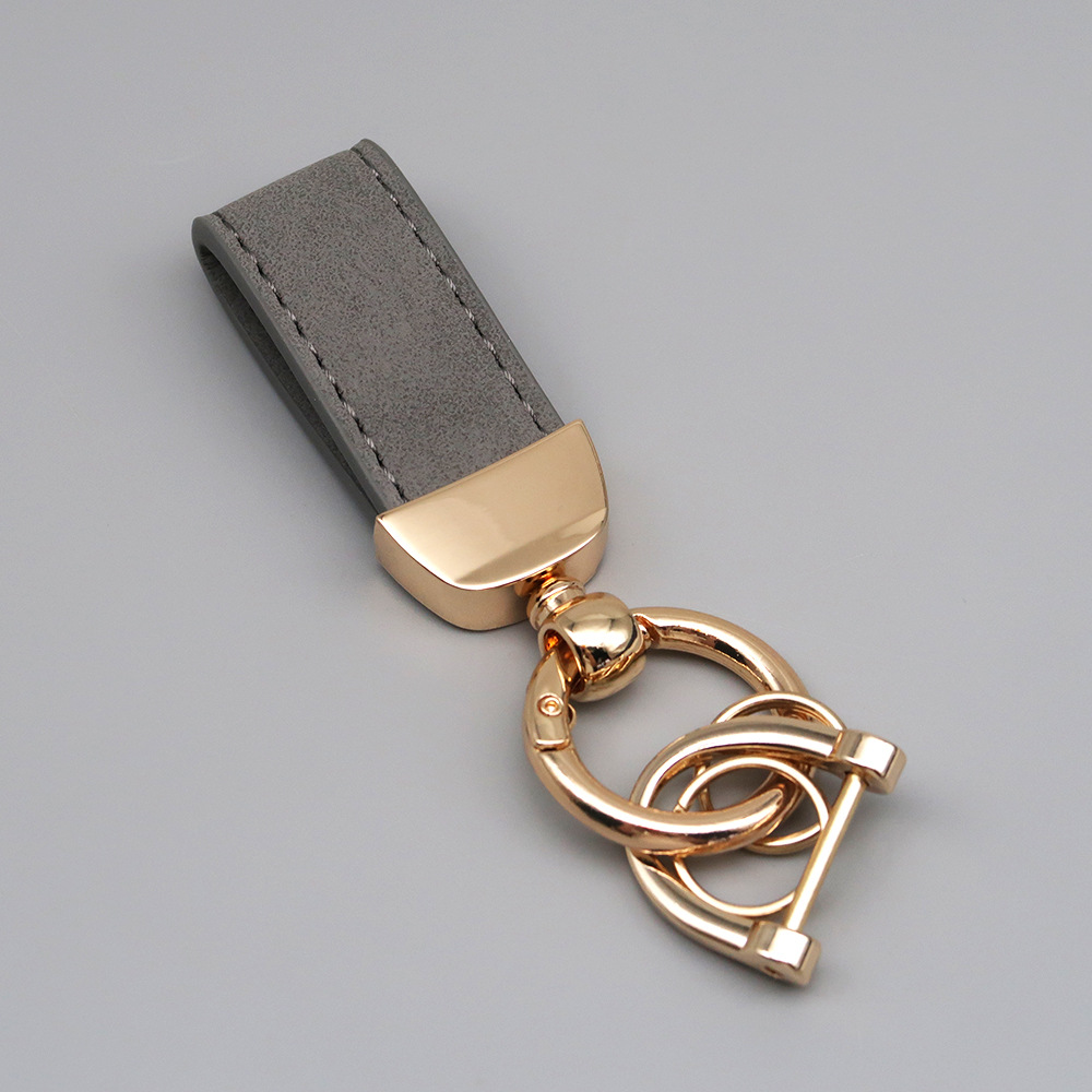 新款翻毛皮汽车钥匙扣五金防丢钥匙圈环可压印logo皮质钥匙链批发
