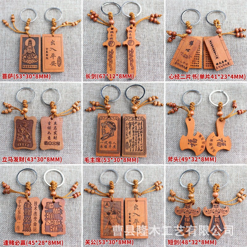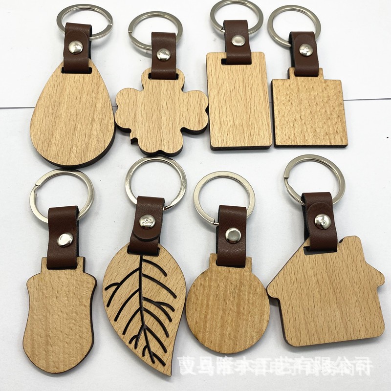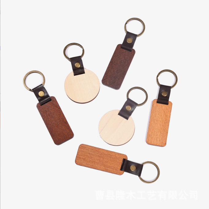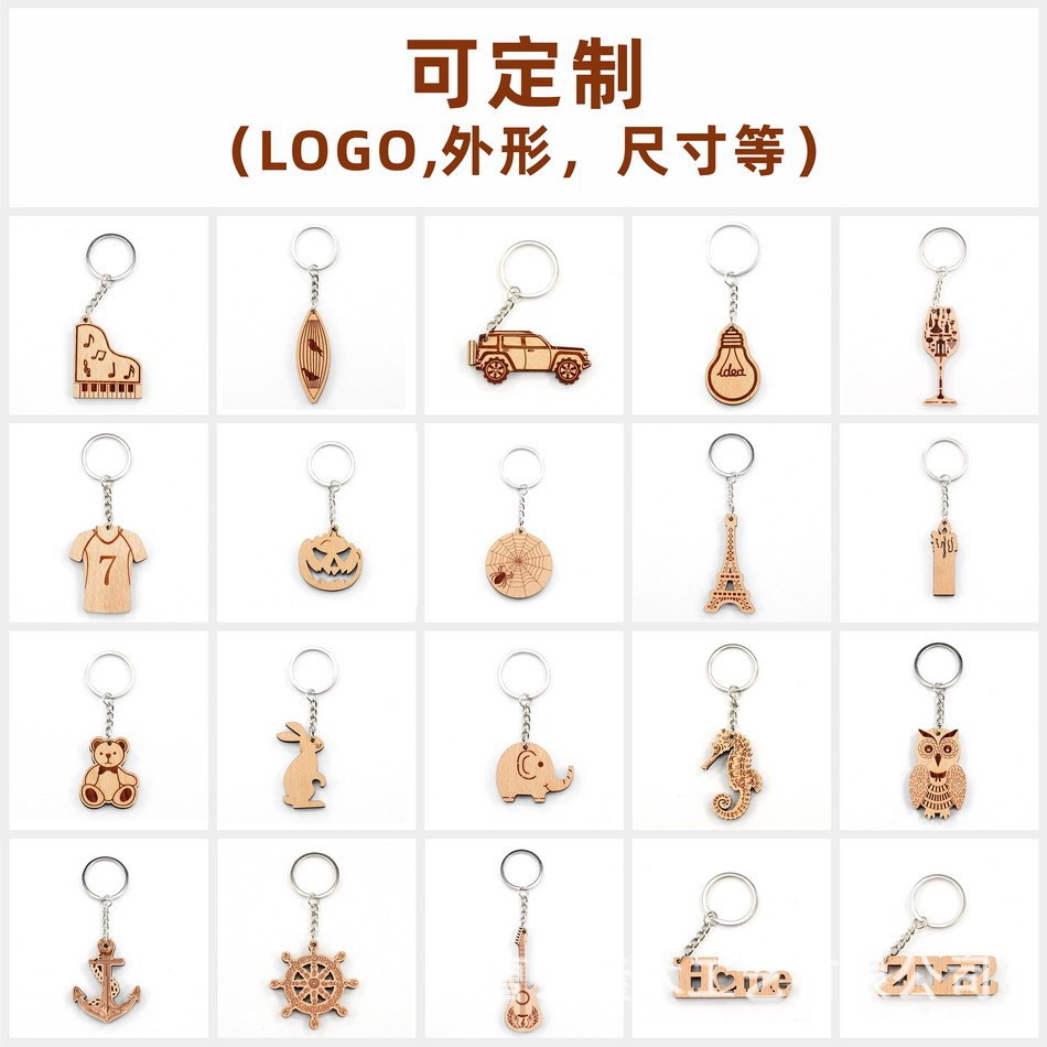 木制钥匙扣金属圈激光雕刻图案皮革木质扣实木创意挂件木吊坠配饰