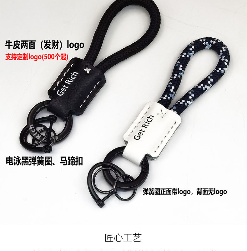 手工编织牛皮钥匙扣挂件真皮可压印logo高品质挂绳防丢汽车钥匙扣