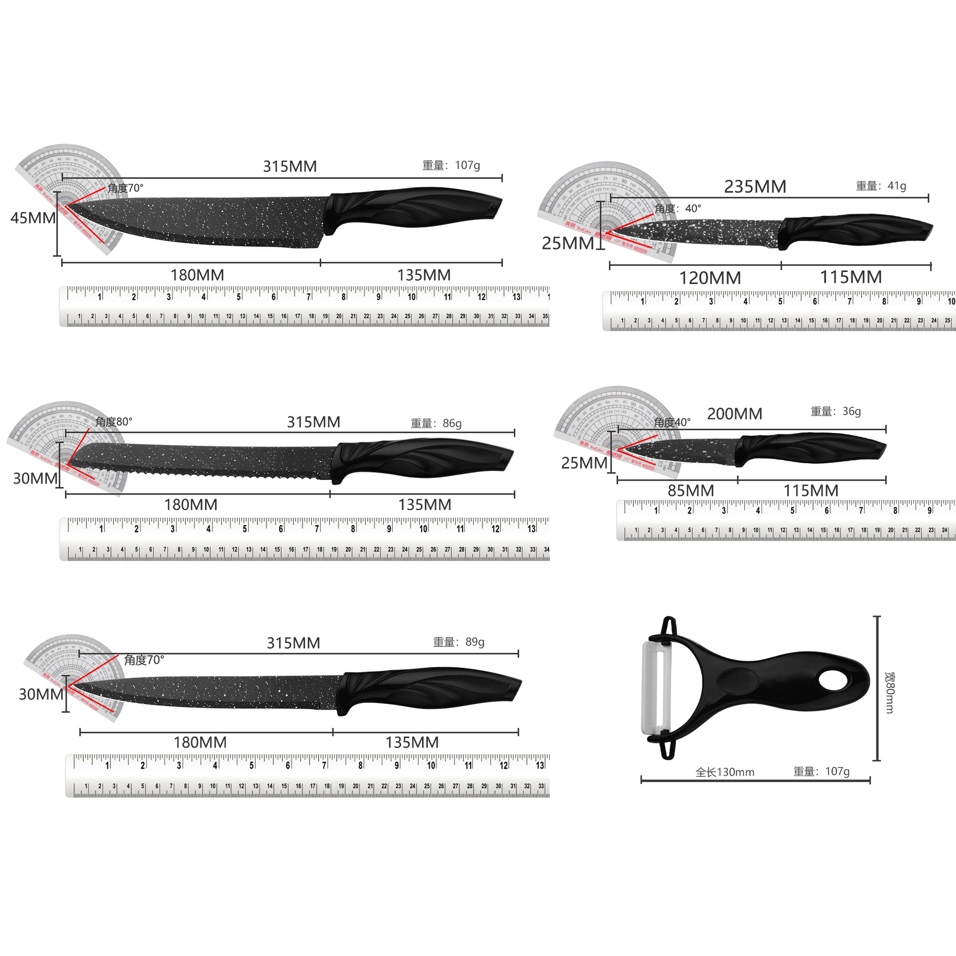 亚马逊全套刀具套装不锈钢家用厨房厨师刀六件套组合礼品套刀批发