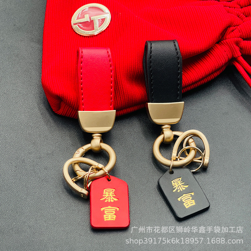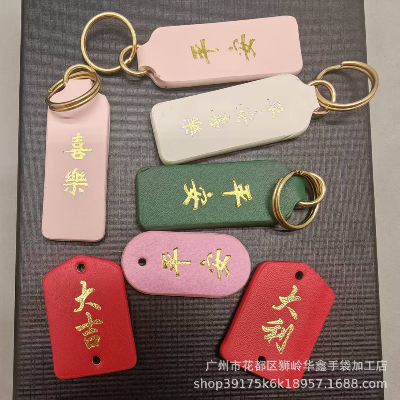 国潮汽车钥匙扣挂件皮质烫金平安暴富喜乐喜庆礼品小配饰批发
