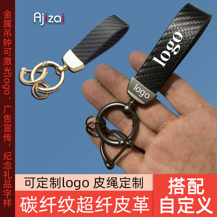碳纤纹皮革金属汽车钥匙扣摩托车钥匙扣链印标logo礼品外贸