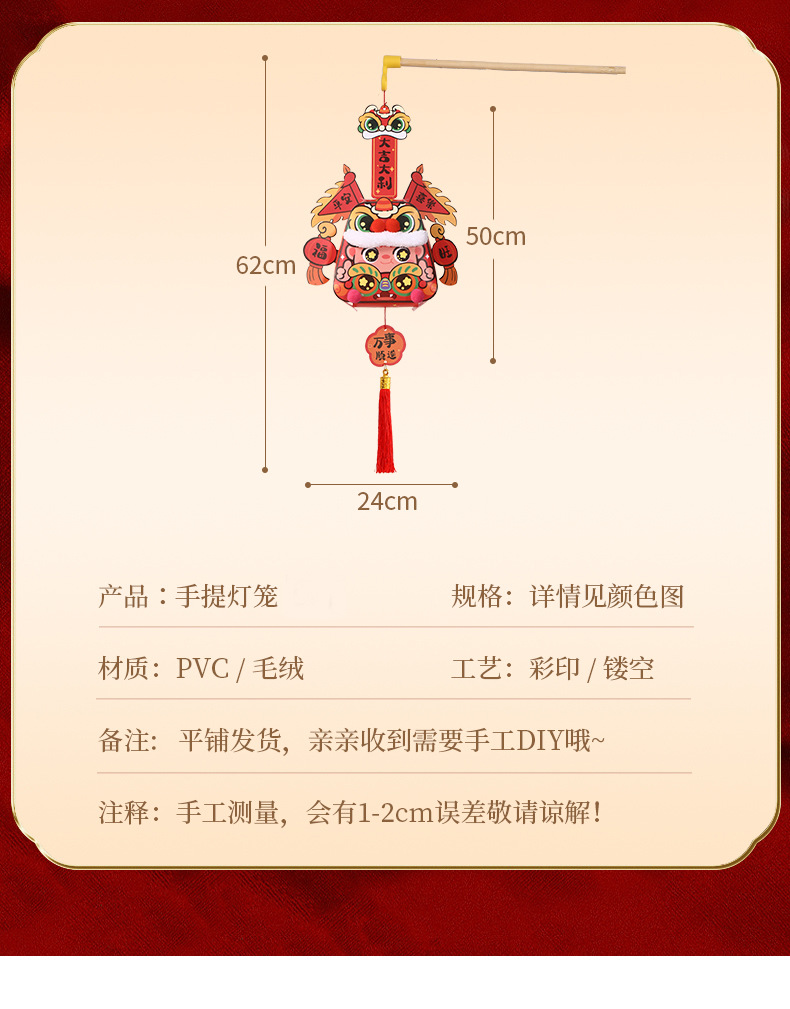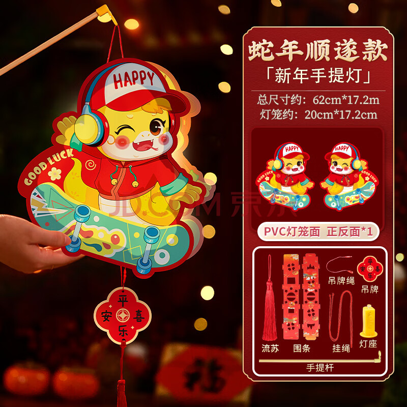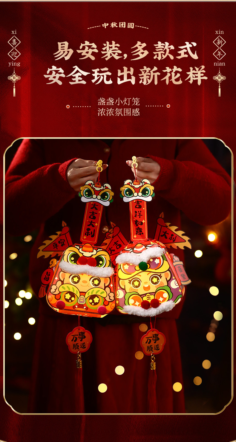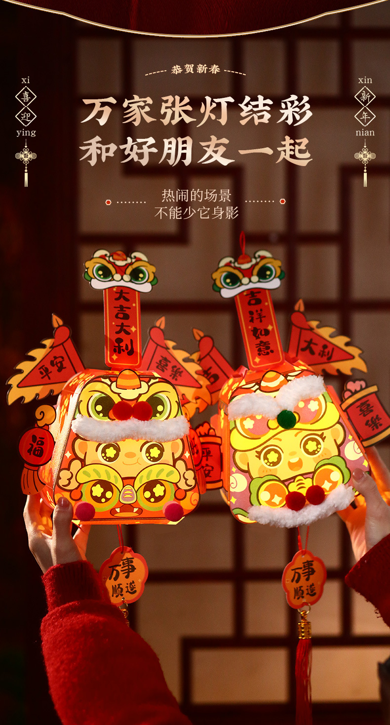新年手提灯笼2026春节花灯幼儿园过年宫灯新款手工diy发光挂件