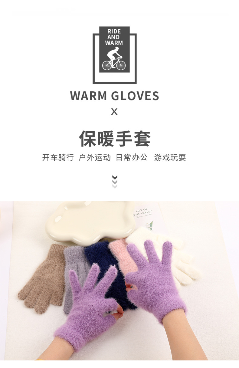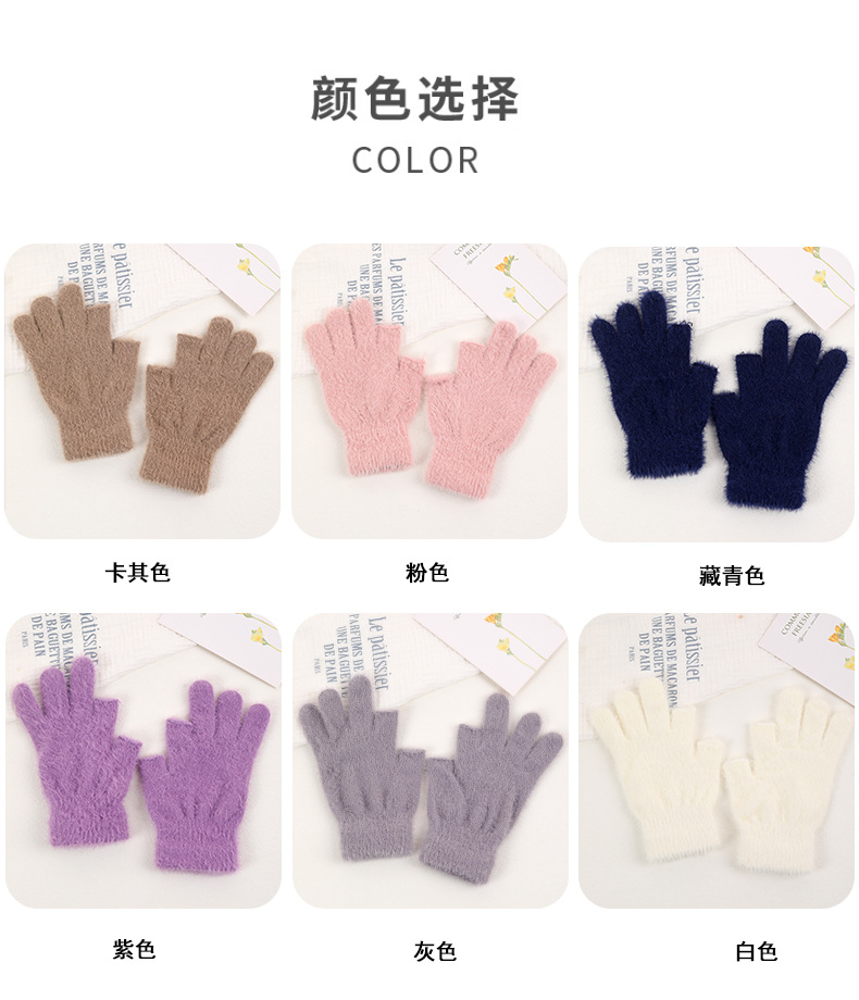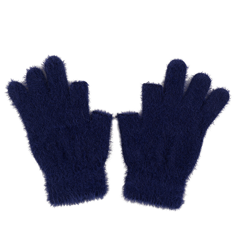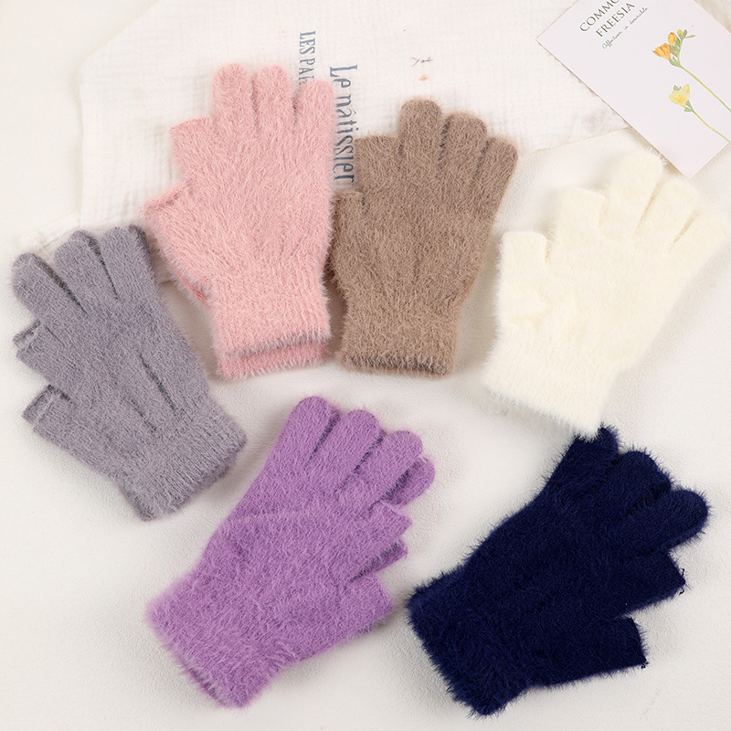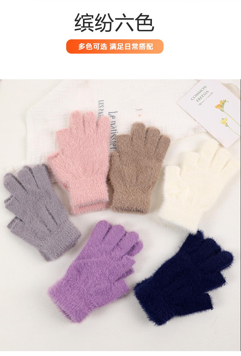 可触屏毛绒手套女冬季保暖学生露指头手套户外俩半指加厚写字手套