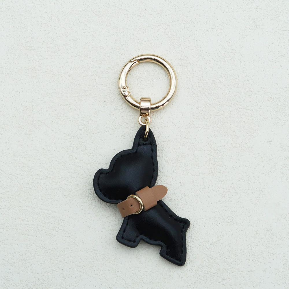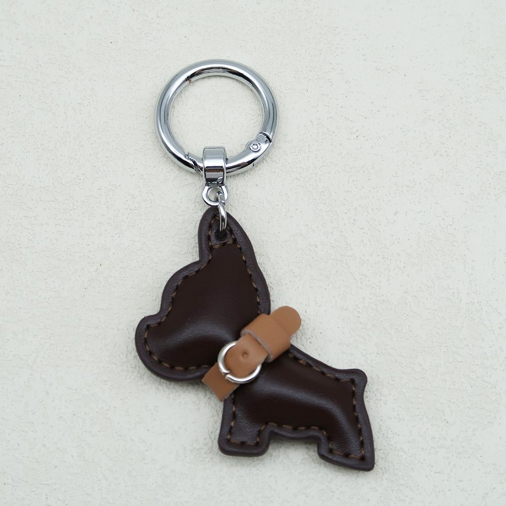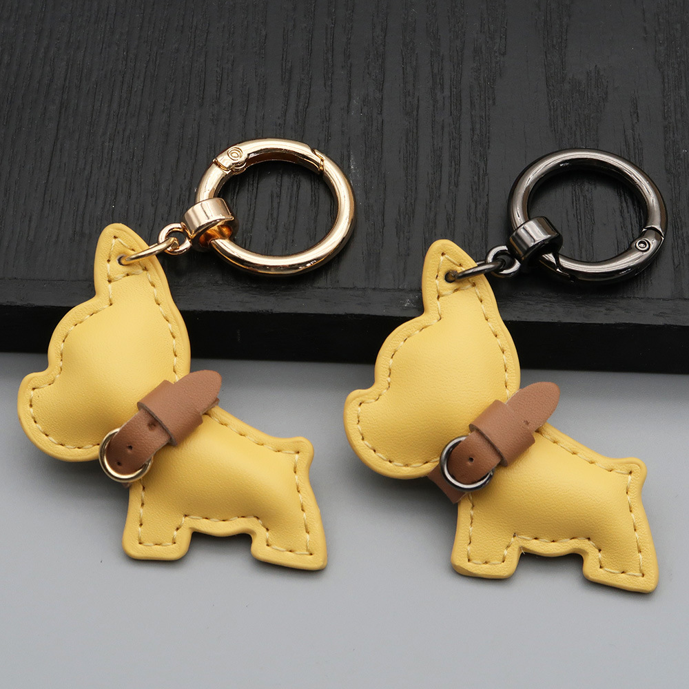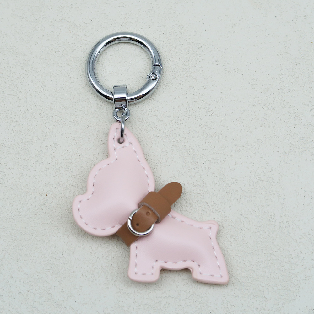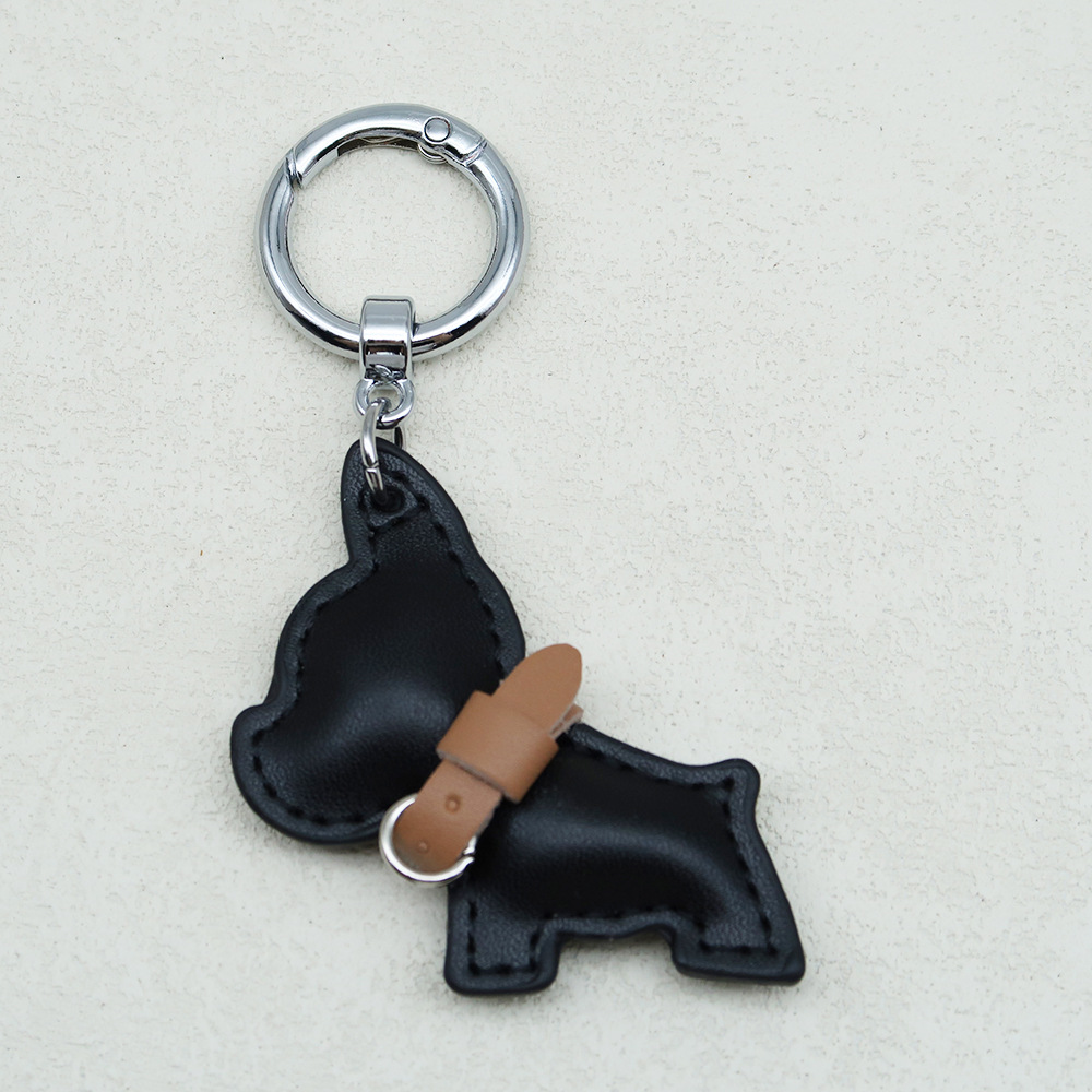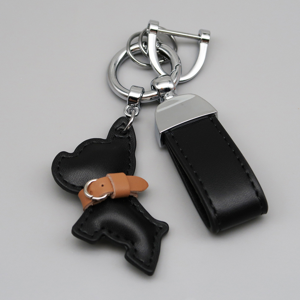 跨境现货迷你法斗狗钥匙扣卡通皮质小狗挂件车钥匙链手机壳配饰