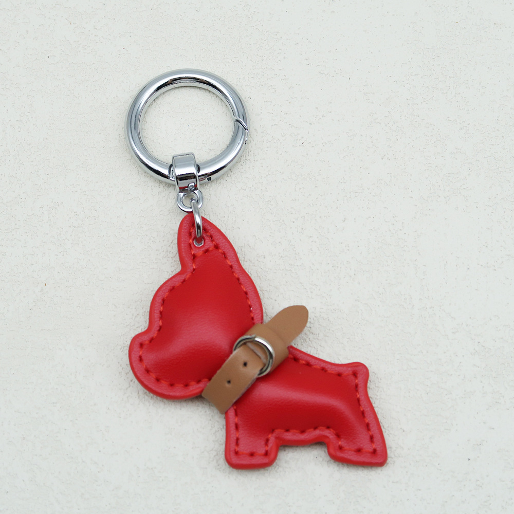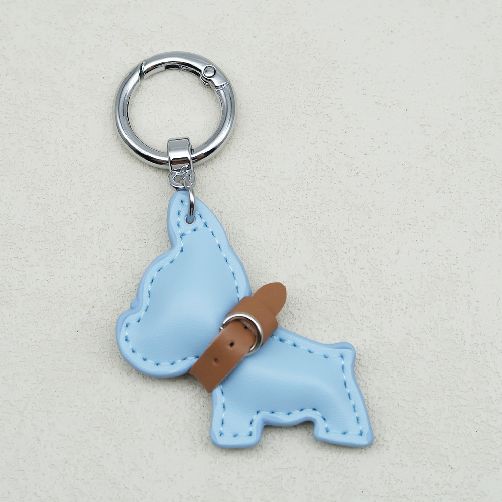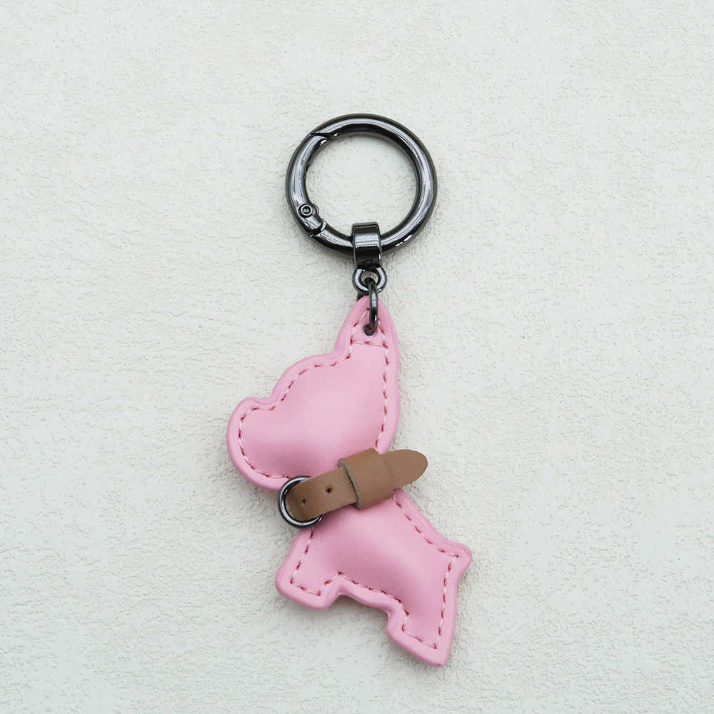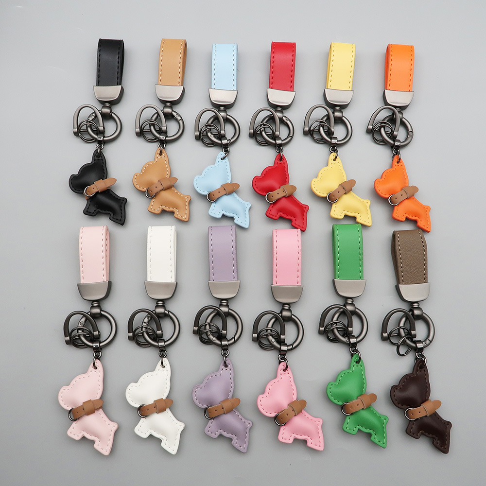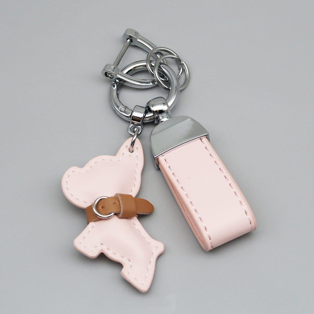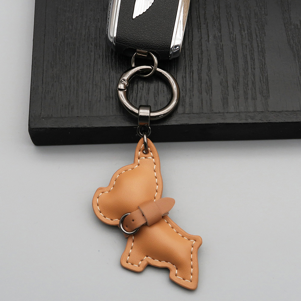 跨境现货迷你法斗狗钥匙扣卡通皮质小狗挂件车钥匙链手机壳配饰