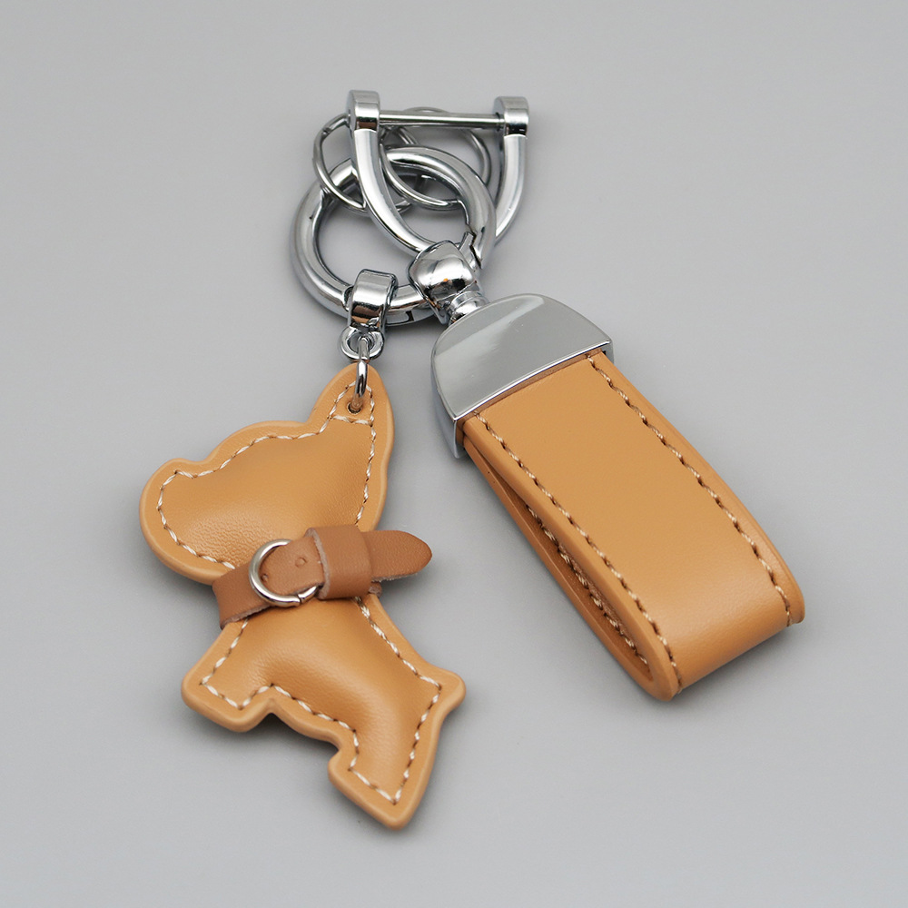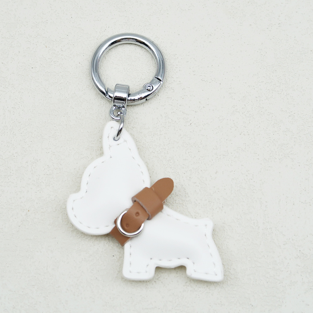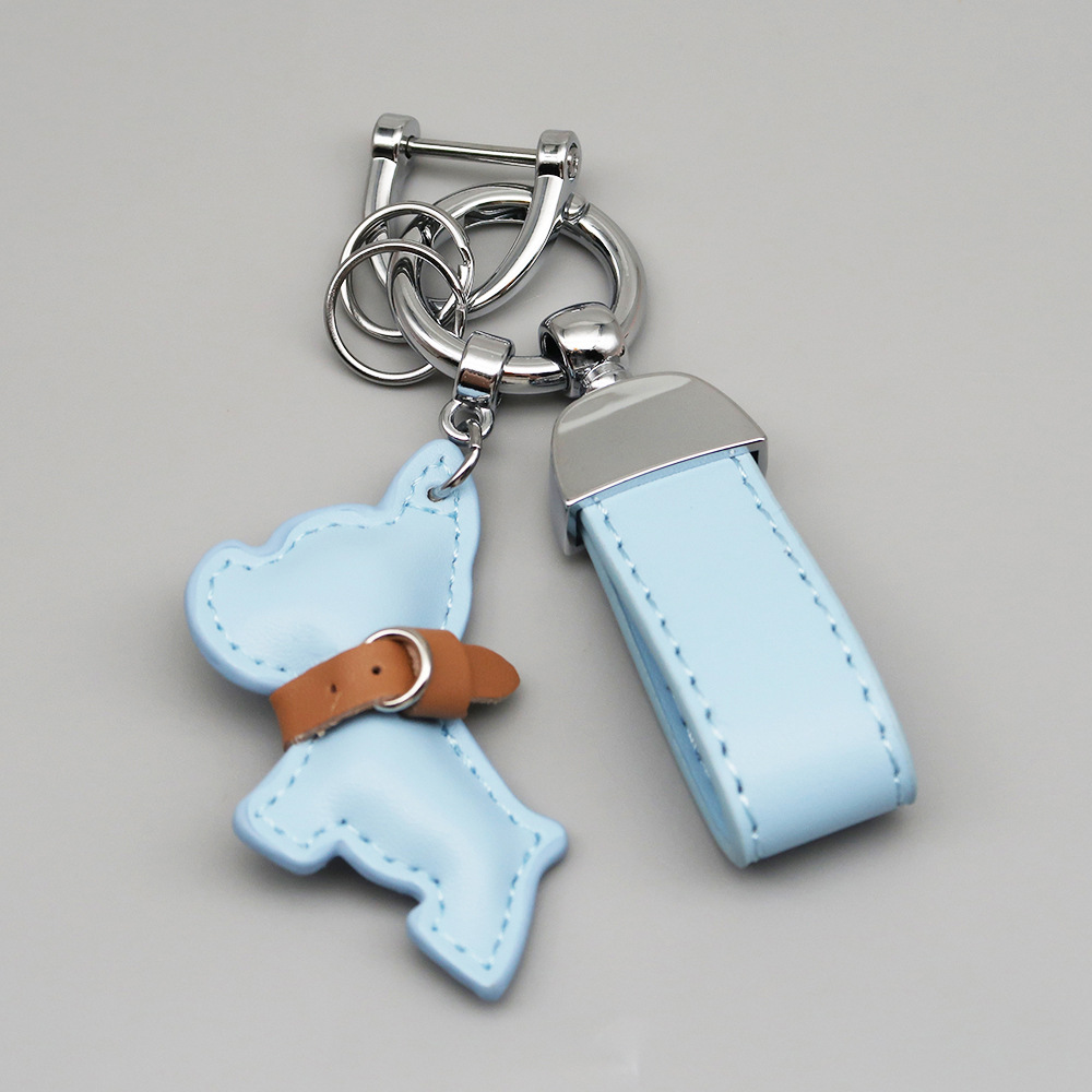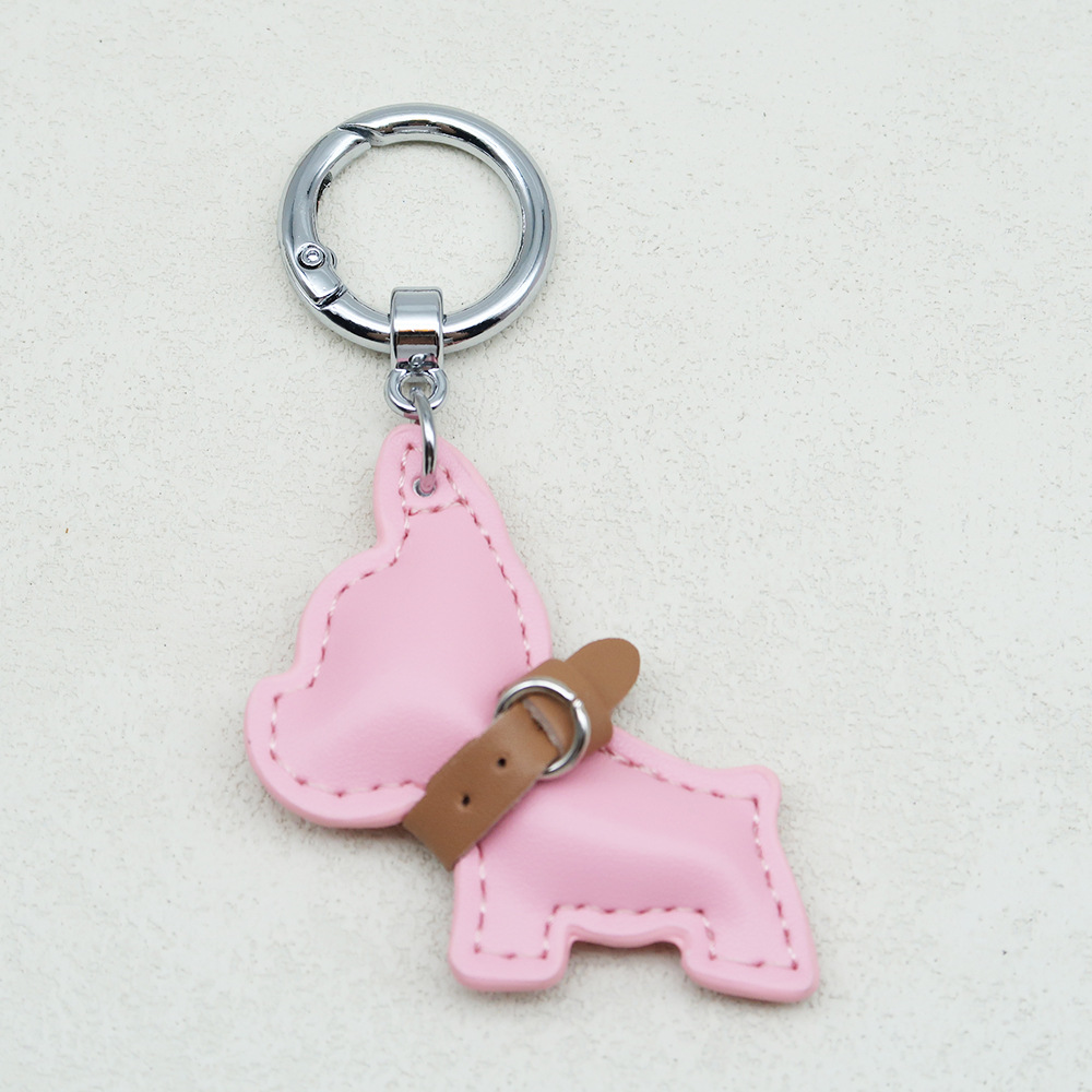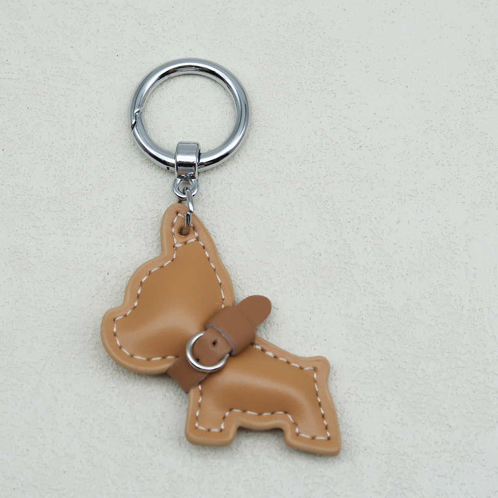 跨境现货迷你法斗狗钥匙扣卡通皮质小狗挂件车钥匙链手机壳配饰