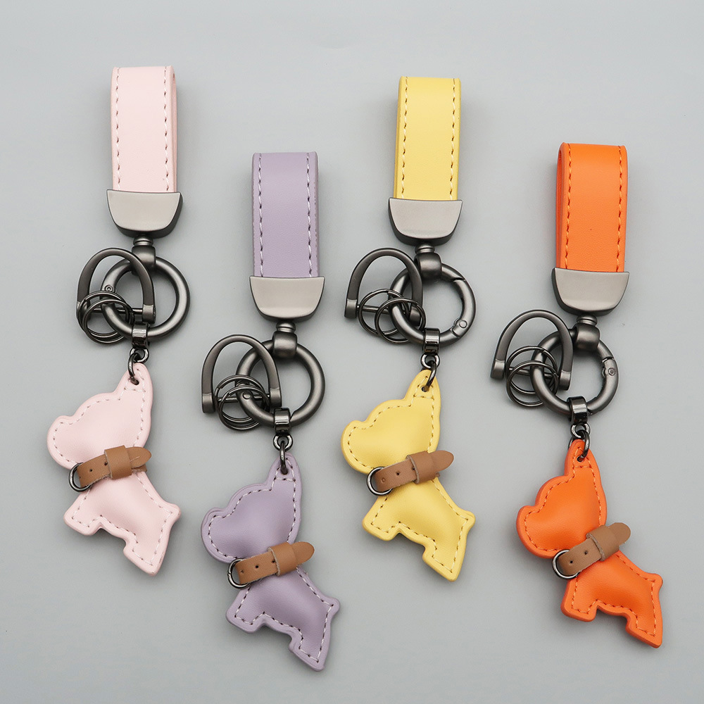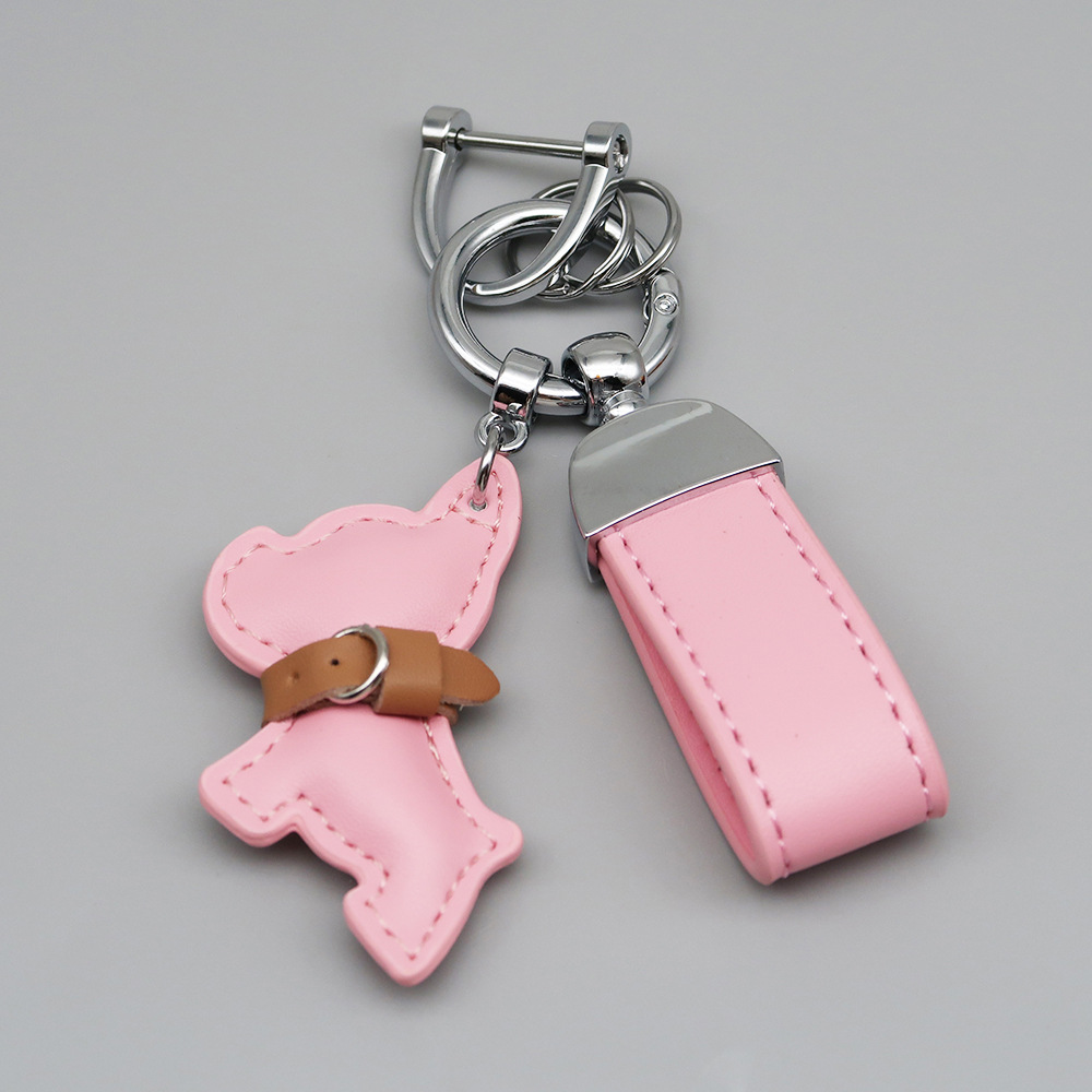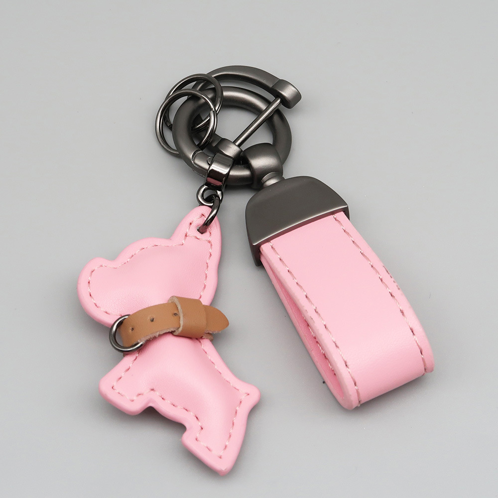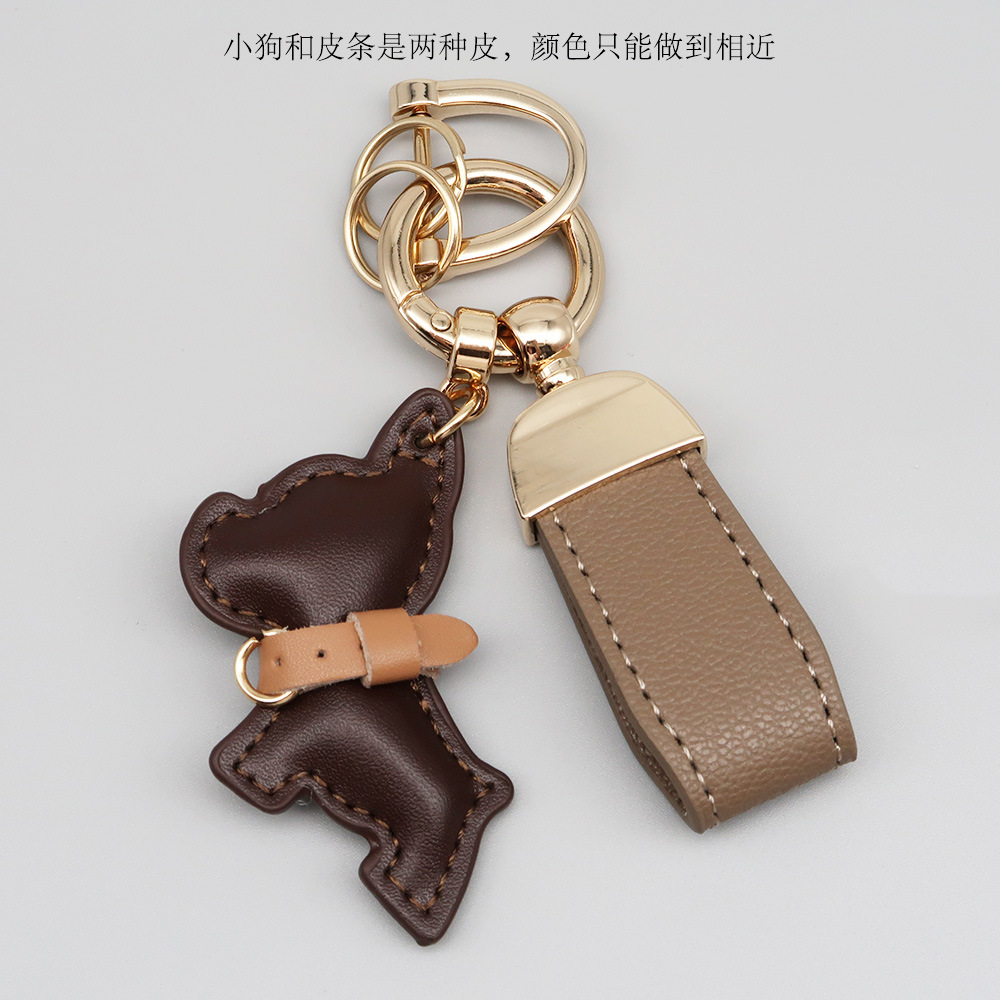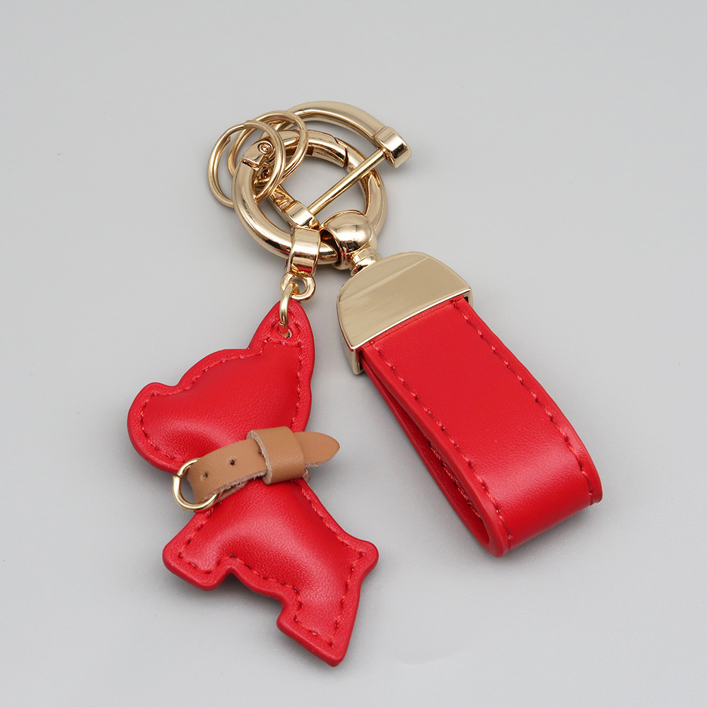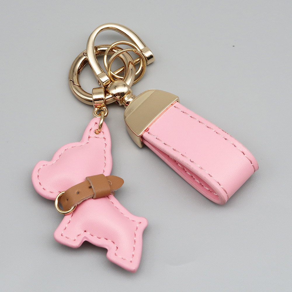 跨境现货迷你法斗狗钥匙扣卡通皮质小狗挂件车钥匙链手机壳配饰