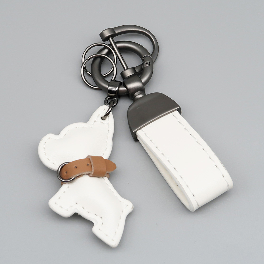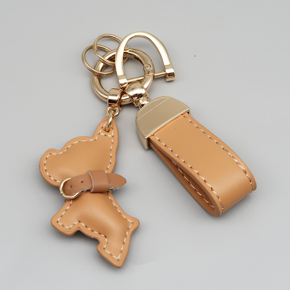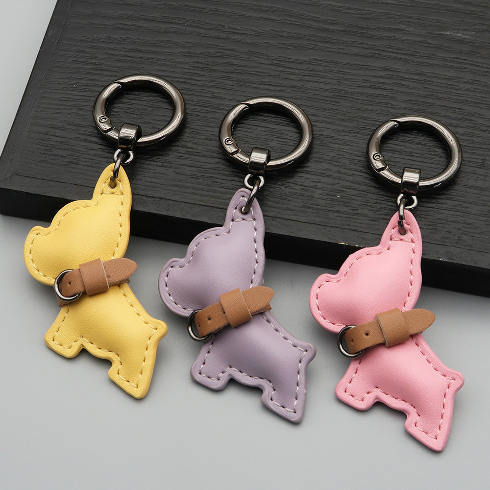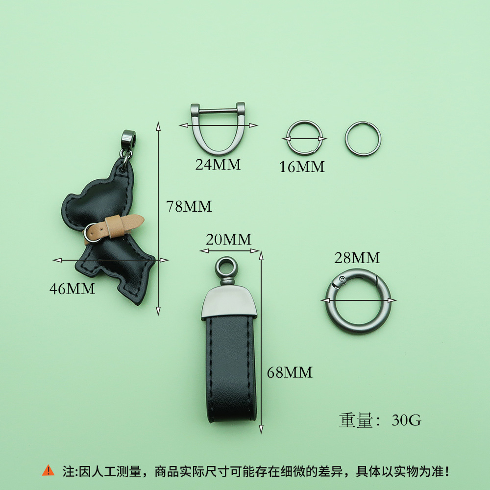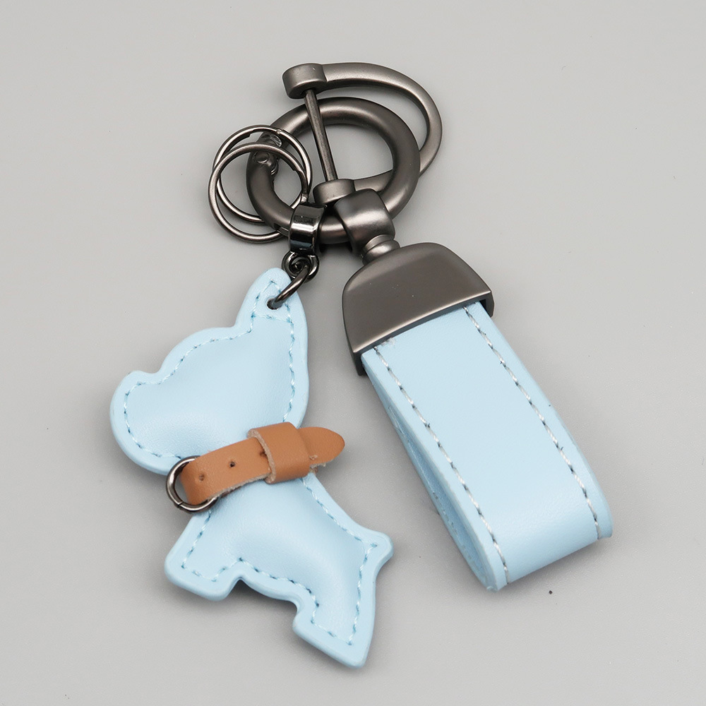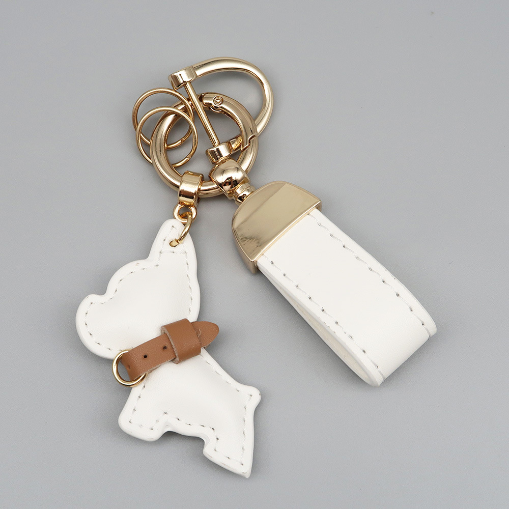 跨境现货迷你法斗狗钥匙扣卡通皮质小狗挂件车钥匙链手机壳配饰