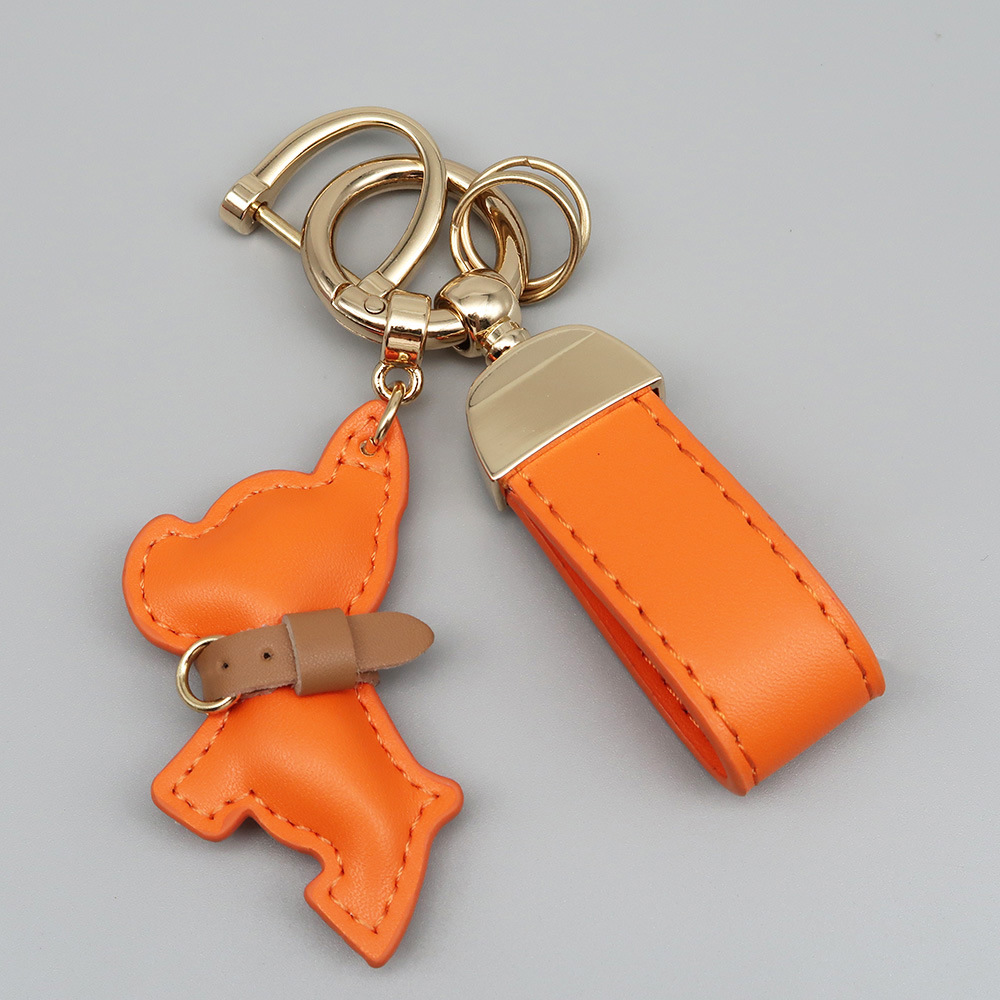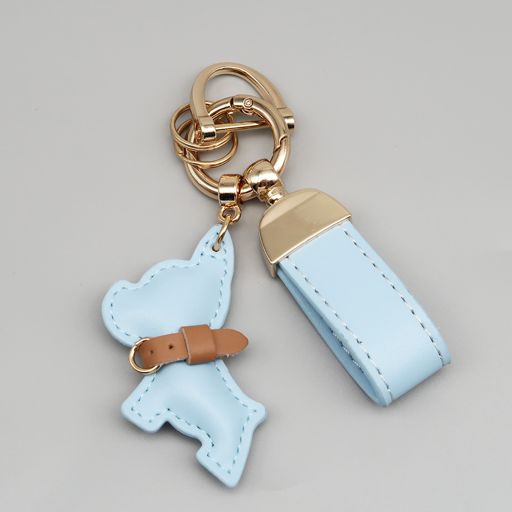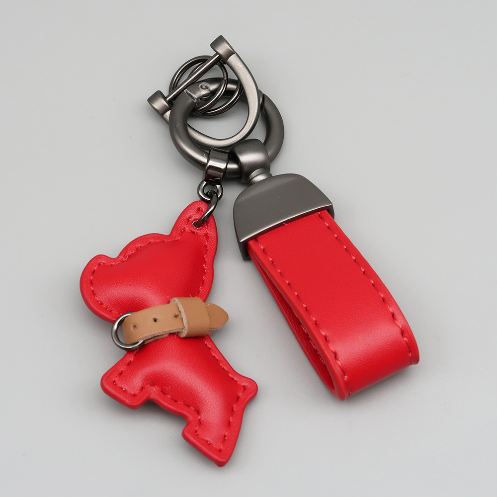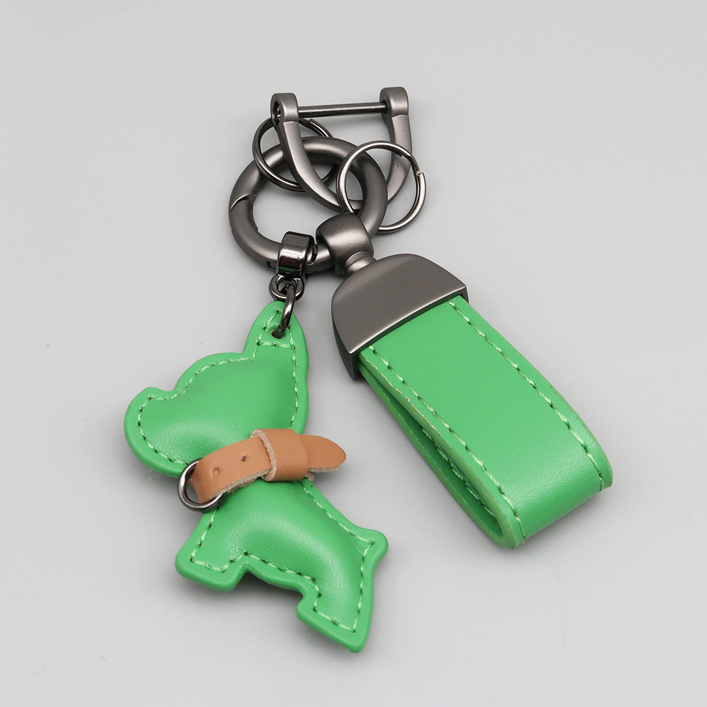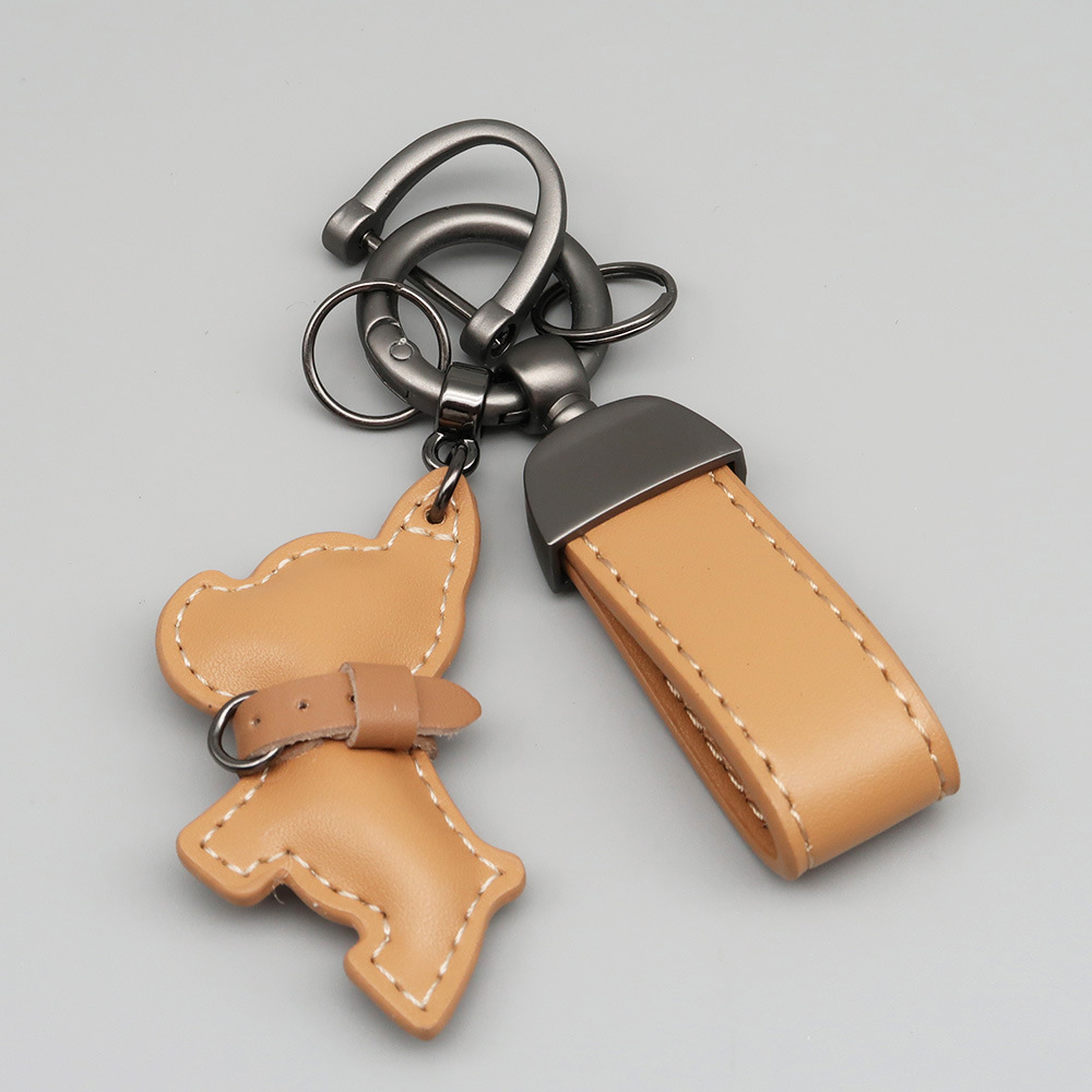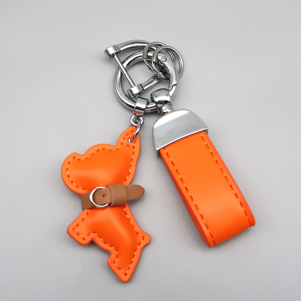跨境现货迷你法斗狗钥匙扣卡通皮质小狗挂件车钥匙链手机壳配饰