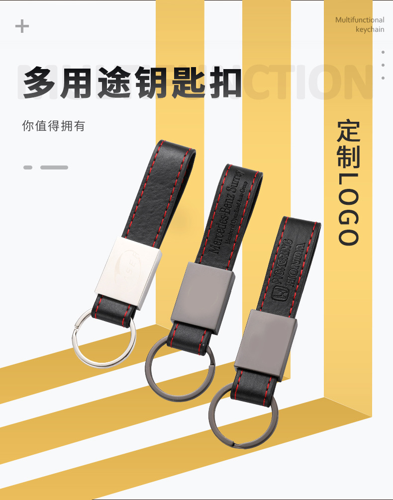汽车钥匙扣挂件创意可刻字图案皮革钥匙扣定制男女士车标钥匙扣