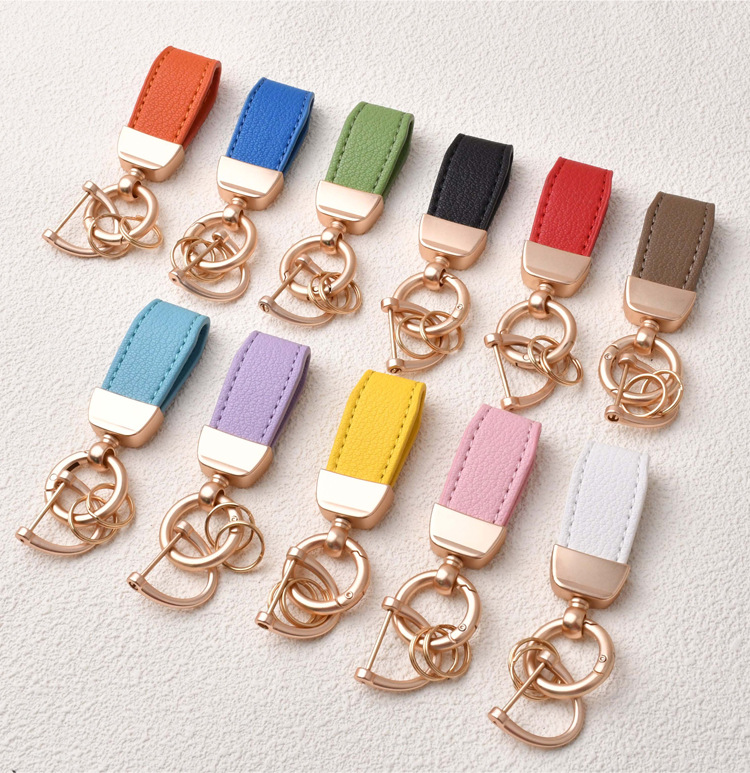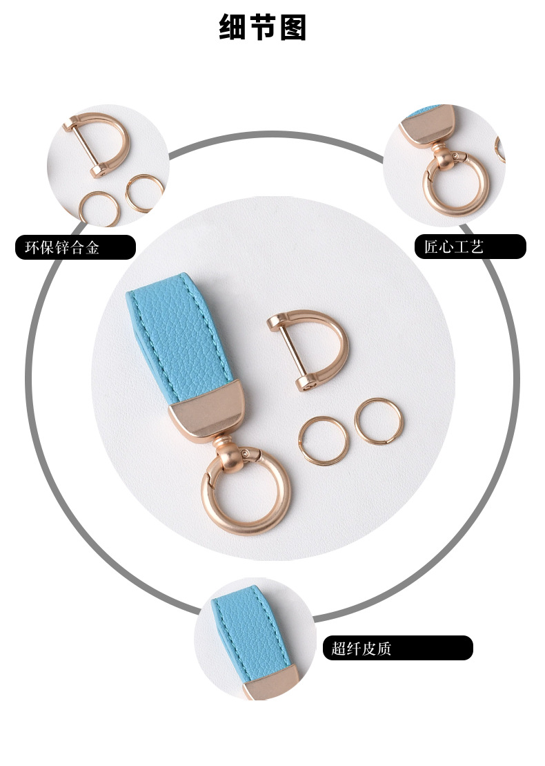 迷你法式小羊皮钥匙扣挂件高档皮革金属钥匙链圈可爱短款饰品批发