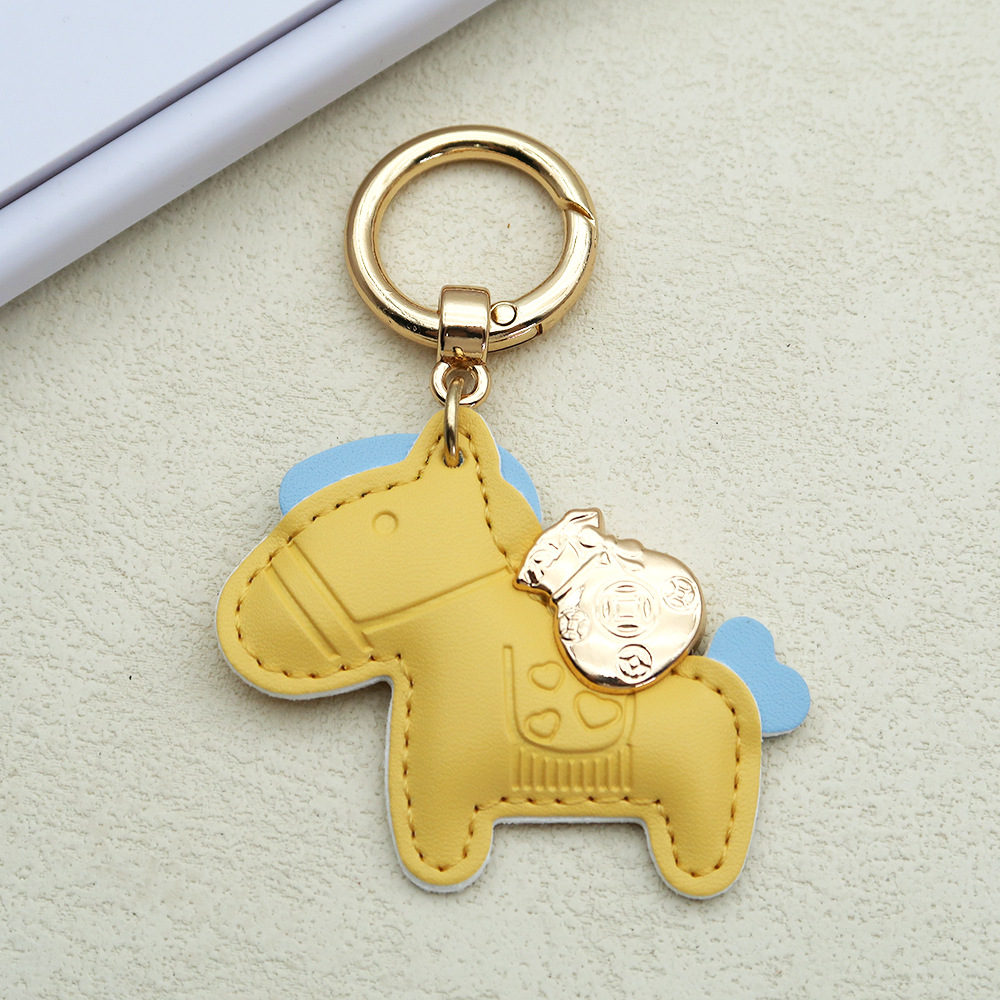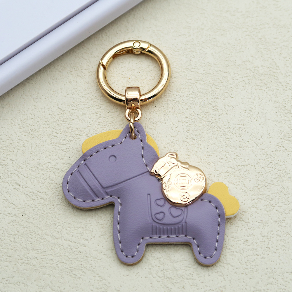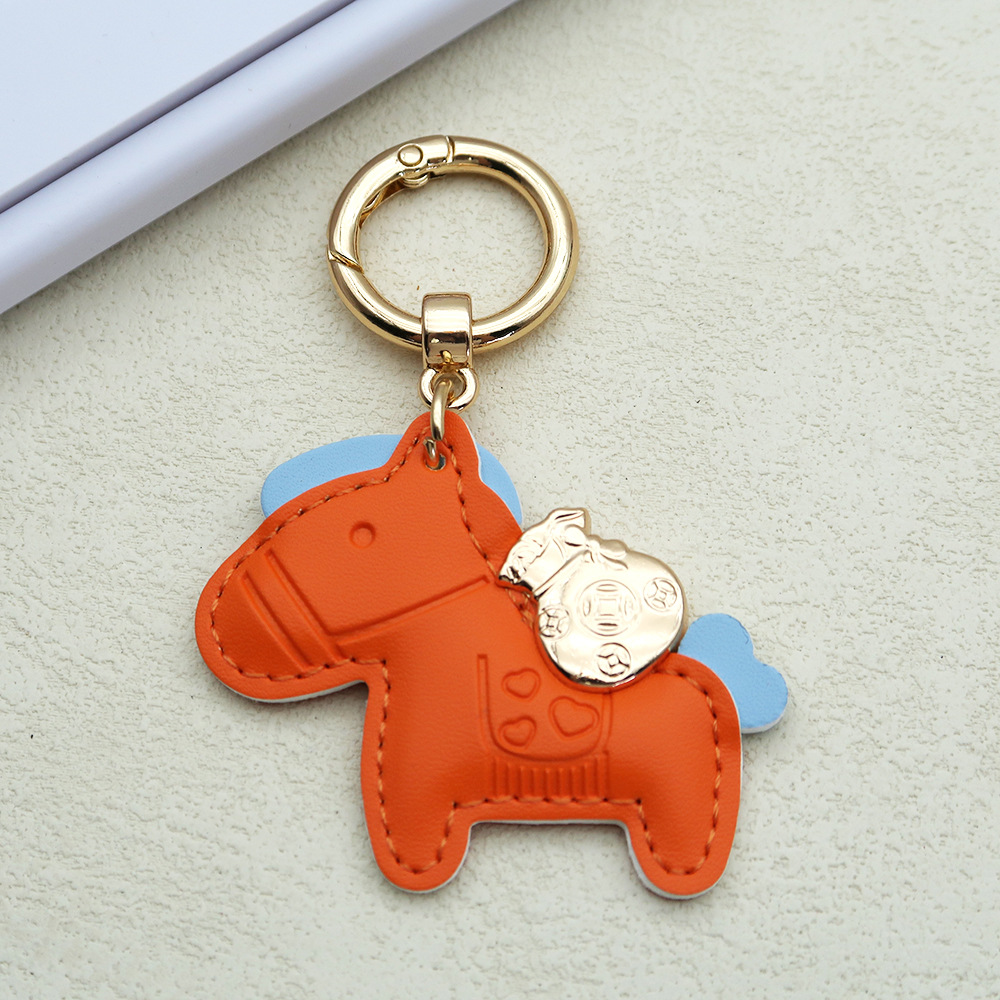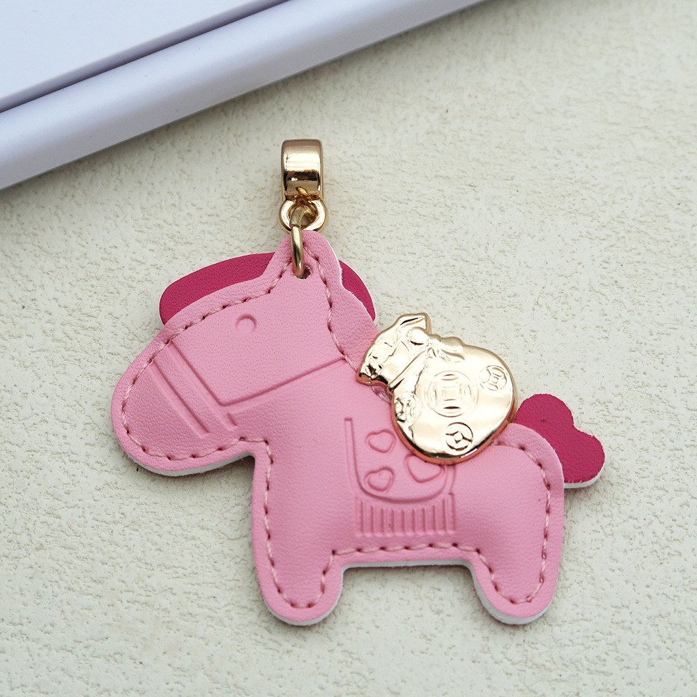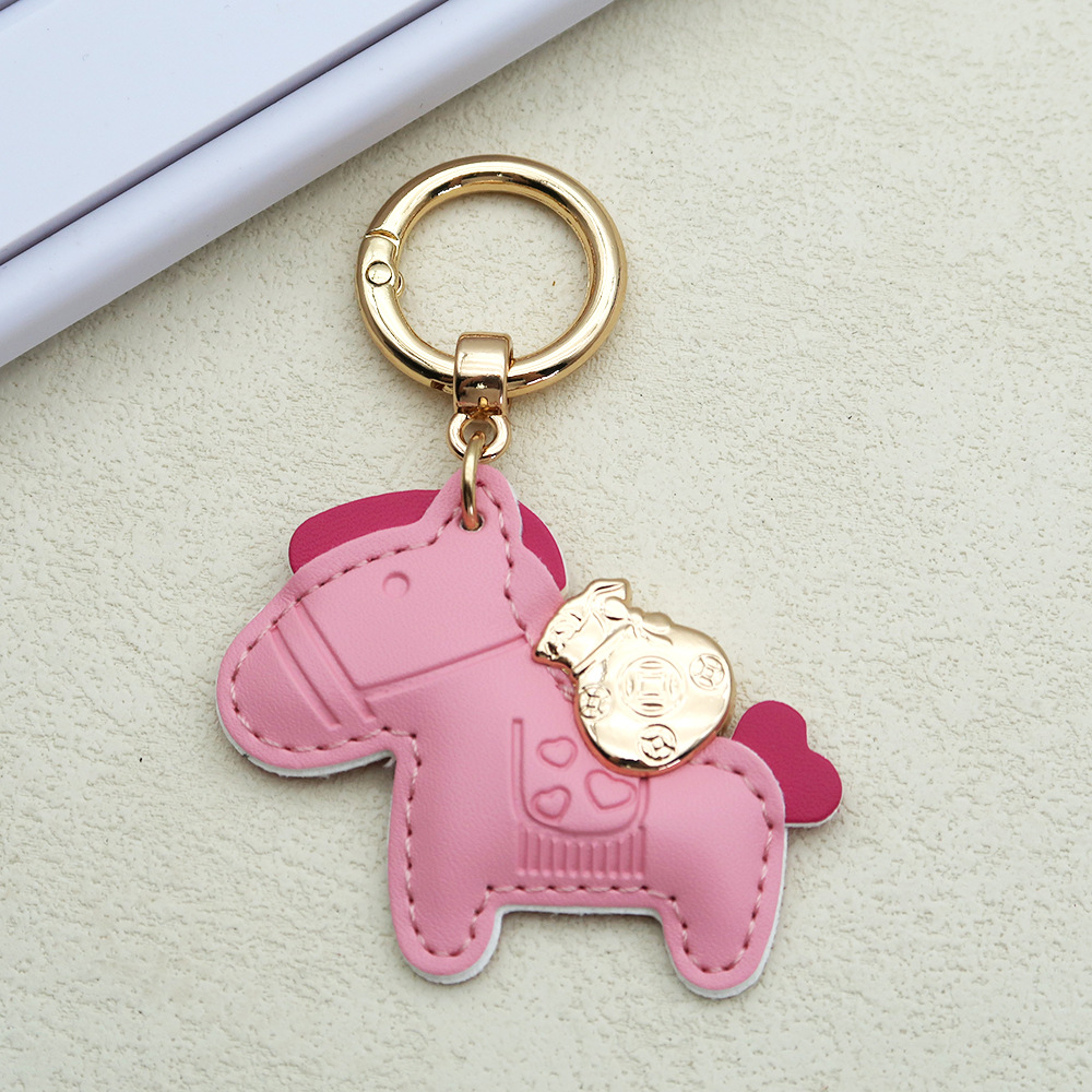 马上有钱钥匙扣创意皮革卡通小马挂件情侣爱心小马汽车钥匙扣包挂