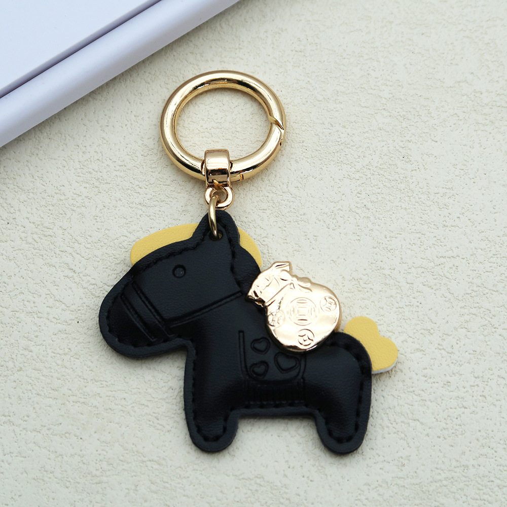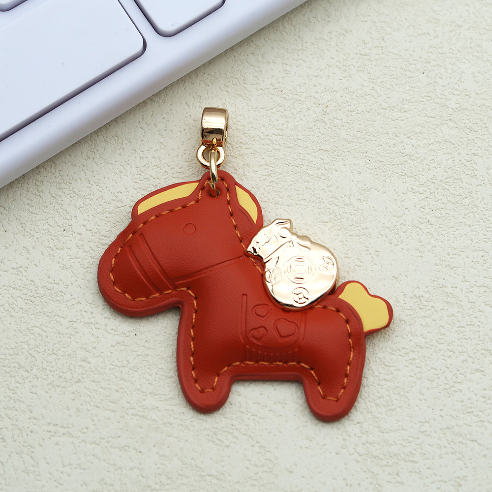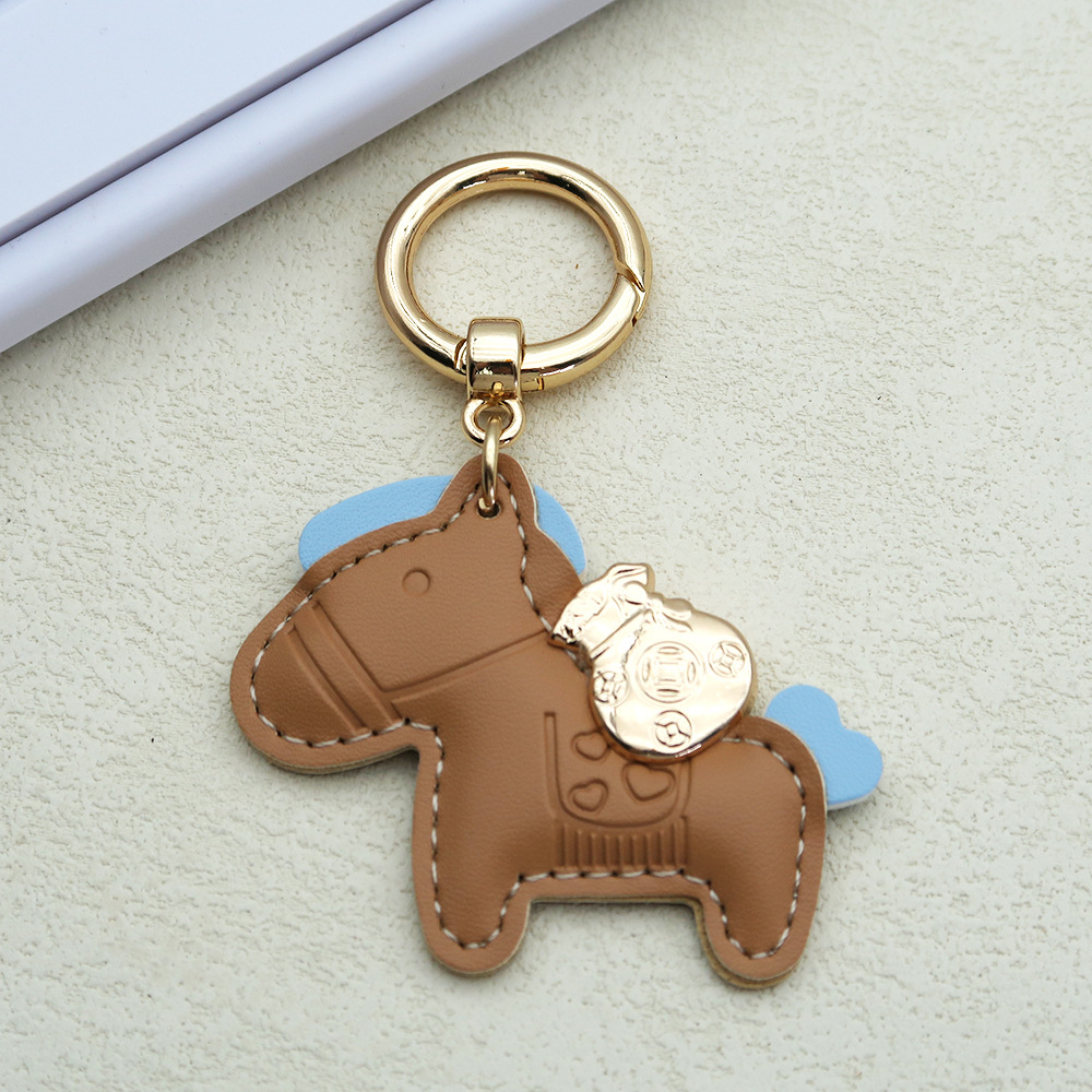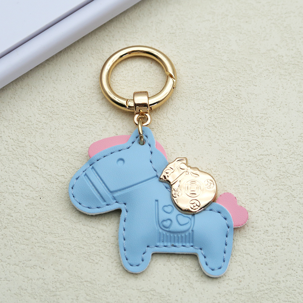 马上有钱钥匙扣创意皮革卡通小马挂件情侣爱心小马汽车钥匙扣包挂