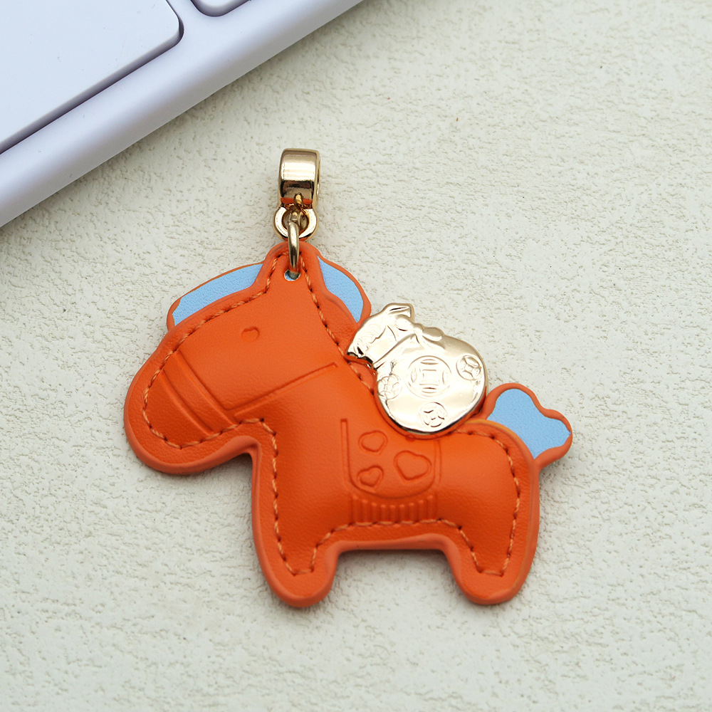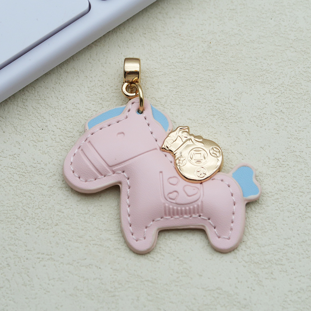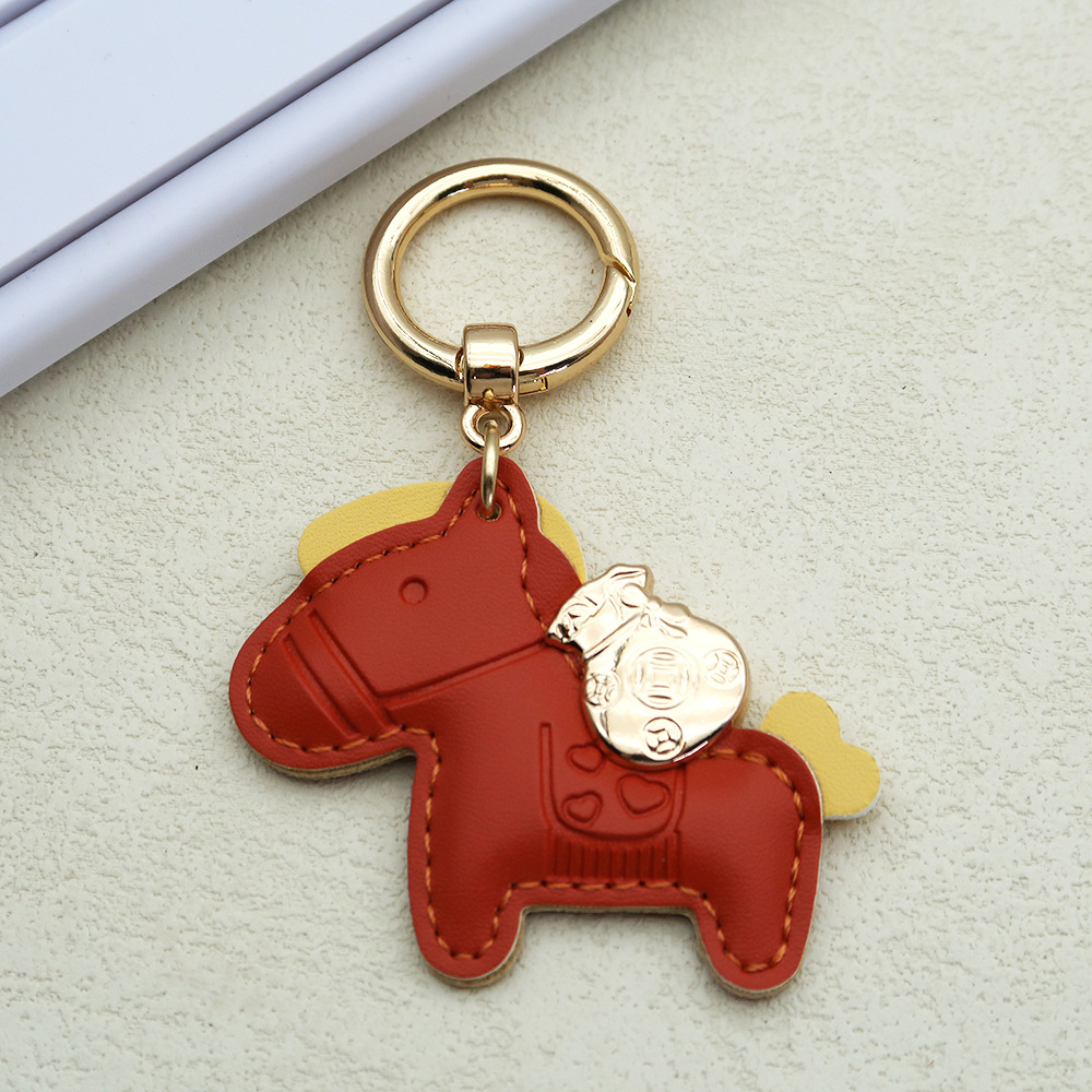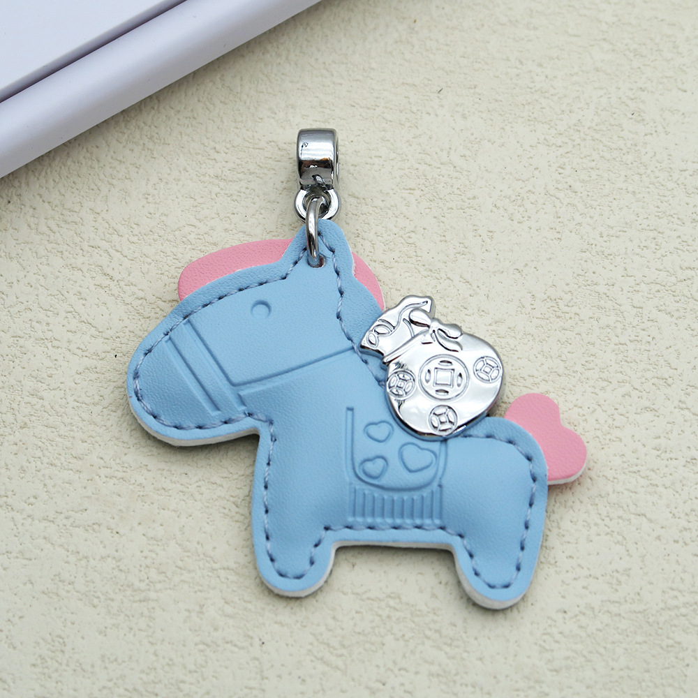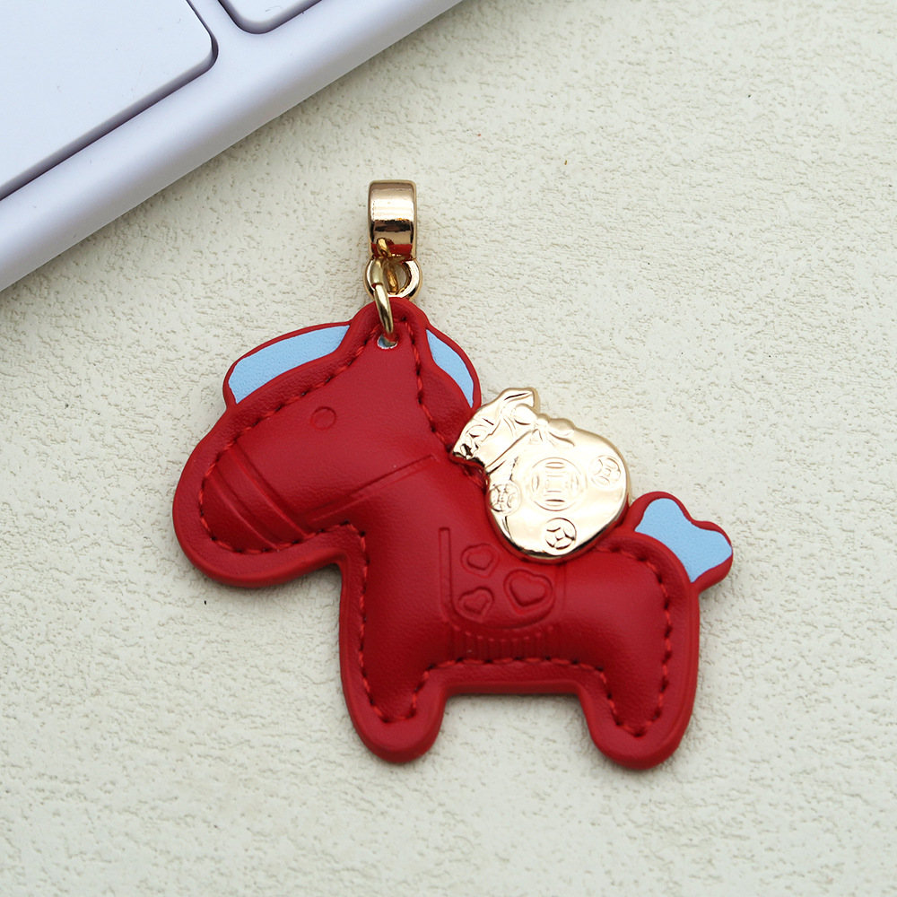 马上有钱钥匙扣创意皮革卡通小马挂件情侣爱心小马汽车钥匙扣包挂