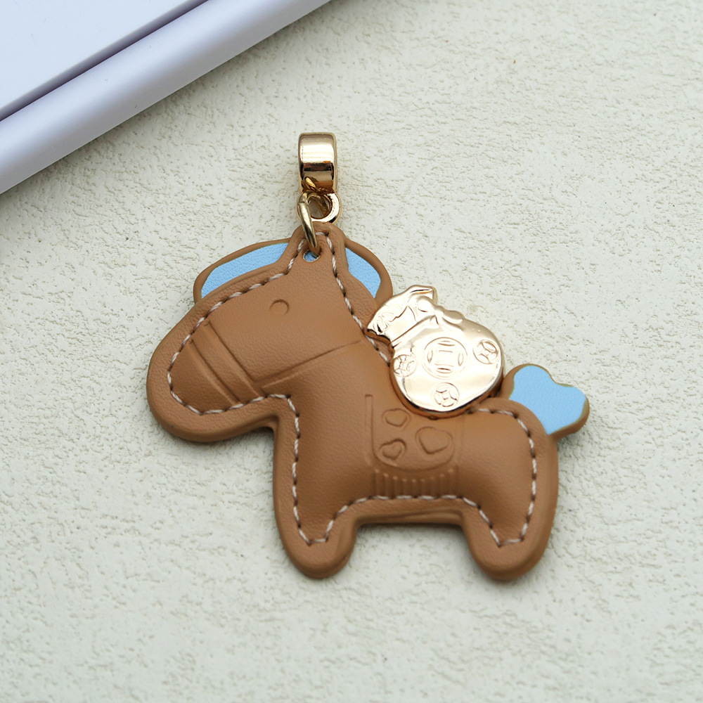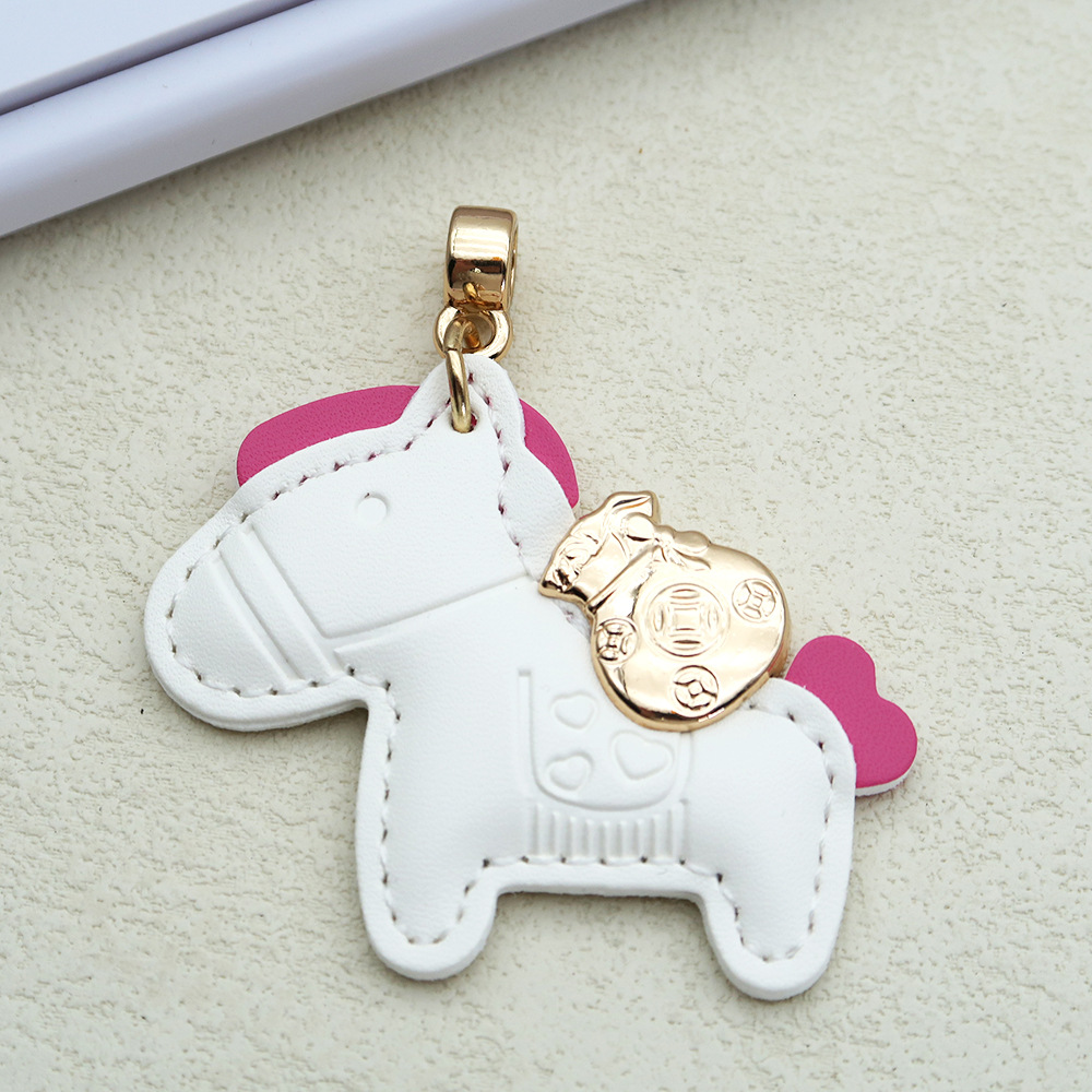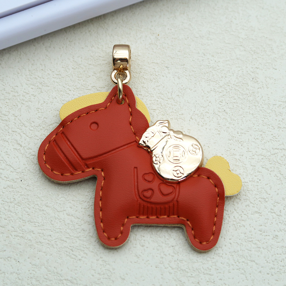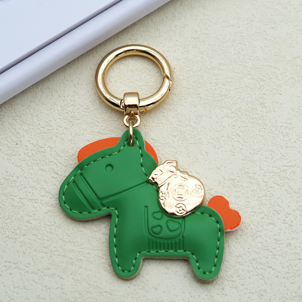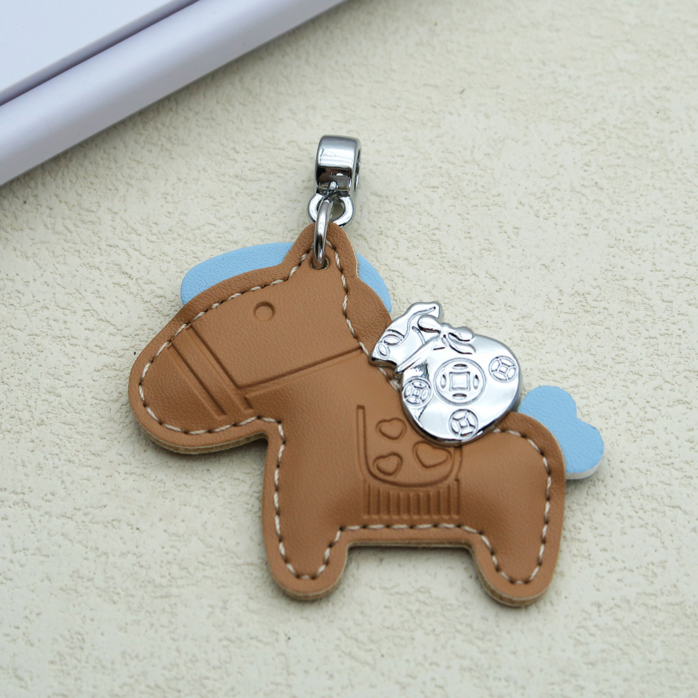 马上有钱钥匙扣创意皮革卡通小马挂件情侣爱心小马汽车钥匙扣包挂
