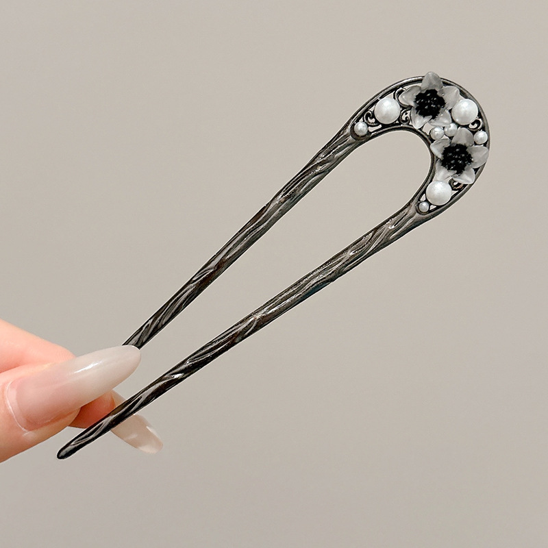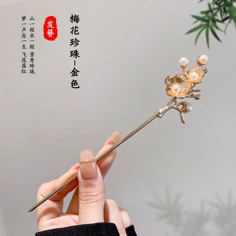 新中式古风花朵发簪现代高级感簪子女头盘发发钗汉服步摇木簪头饰