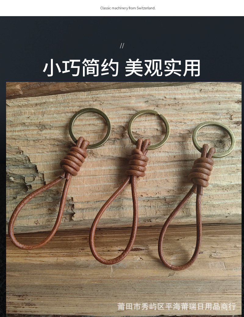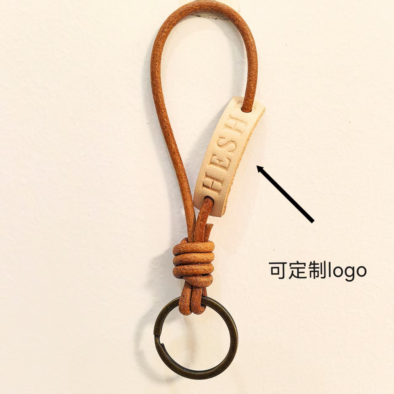 高级感手工皮质钥匙圈复古牛皮绳包包挂件防丢钥匙扣店庆小礼品